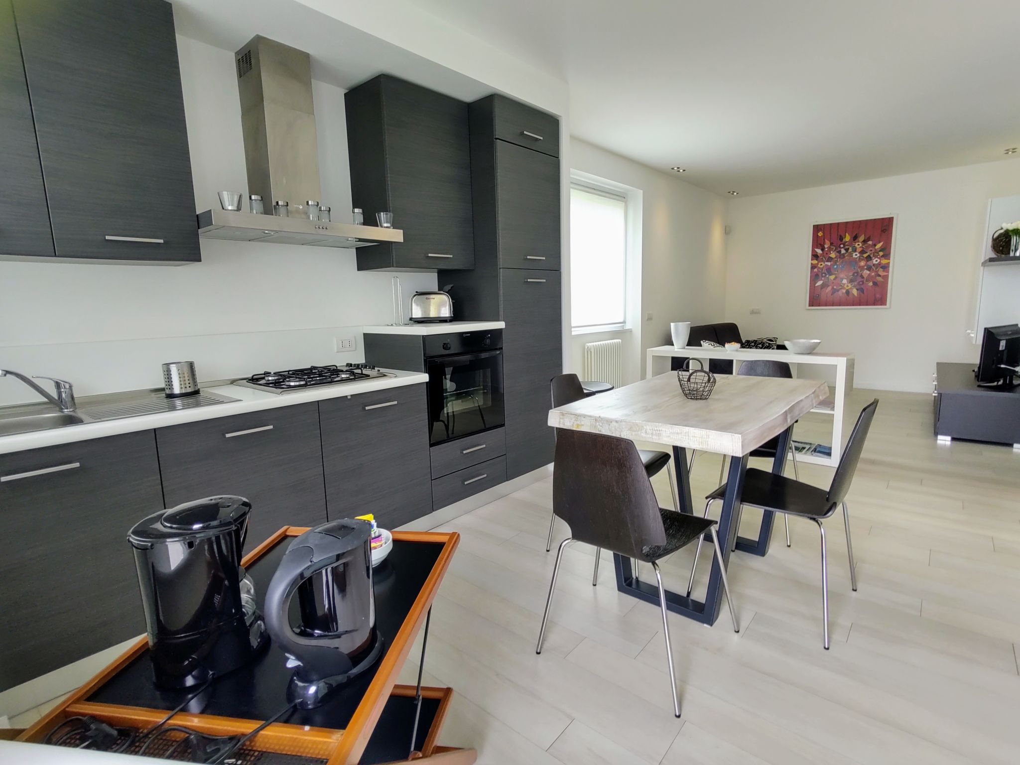 "Titti ", 2-room apartment 65 m2, on the ground floor. Bright, modern and tasteful furnishings: living/sleeping room with 1 double sofabed, dining table and satellite TV. Exit to the terrace. 1 room with 1 french bed (140 cm). Open kitchen (oven, dishwasher, 4 gas rings, toaster, kettle, freezer, electric coffee machine). Shower/WC. Gas heating. Terrace 20 m2. Terrace furniture, deck chairs (1), box-room. Beautiful view of the lake and the mountains. Facilities: washing machine, children's high chair, baby cot for up to 2 year olds, hair dryer. Internet (WiFi, free). Parking (1 car). Please note: non-smokers only. Maximum 1 pet/ dog allowed. Private entrance. IT013239C2NXYQS7TM