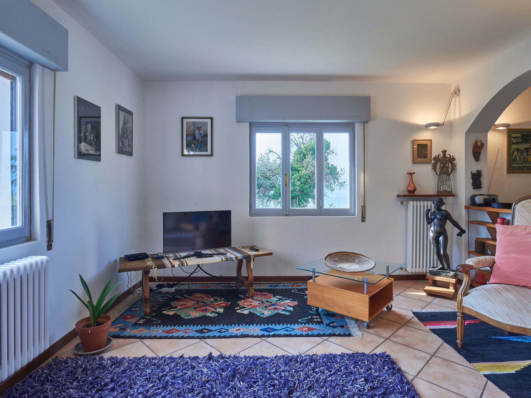 3-room apartment 85 m2, on the ground floor. Bright, beautiful furnishings: living room with TV. 1 room with 1 french bed (160 cm). Exit to the balcony. 1 room with 1 x 2 bunk beds. Open kitchen (oven, dishwasher, 4 gas rings, toaster, kettle, microwave, freezer, electric coffee machine) with dining table. Bath/WC. Gas heating. Natural stone floors. Balcony, terrace partly roofed. Terrace furniture, balcony furniture, barbecue (portable), deck chairs (4). Marvellous panoramic view of the lake and the mountains. Facilities: baby cot for up to 2 year olds. Internet (WiFi, free). Please note: non-smokers only. Maximum 1 pet/ dog allowed. Private entrance. IT013248C2435SDF77
