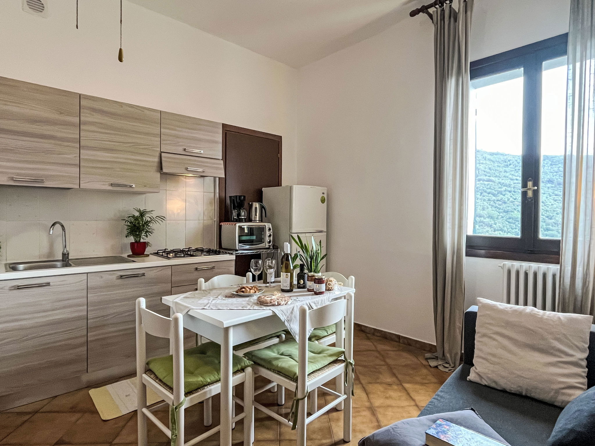"Asplanato ", 2-room apartment 35 m2 on 3rd floor. Partly with sloping ceilings, rustic and cosy furnishings: 1 room with 1 double bed. Kitchen-/living room (mini-oven, 4 gas rings, toaster, kettle, freezer, electric coffee machine) with dining table, 1 bed. Shower/WC. Gas heating. Beautiful view of the countryside. Facilities: Internet (WiFi, free). Please note: maximum 1 pet/ dog allowed. Smoke alarm, fire extinguisher. IT008030B5IIHHVFIS