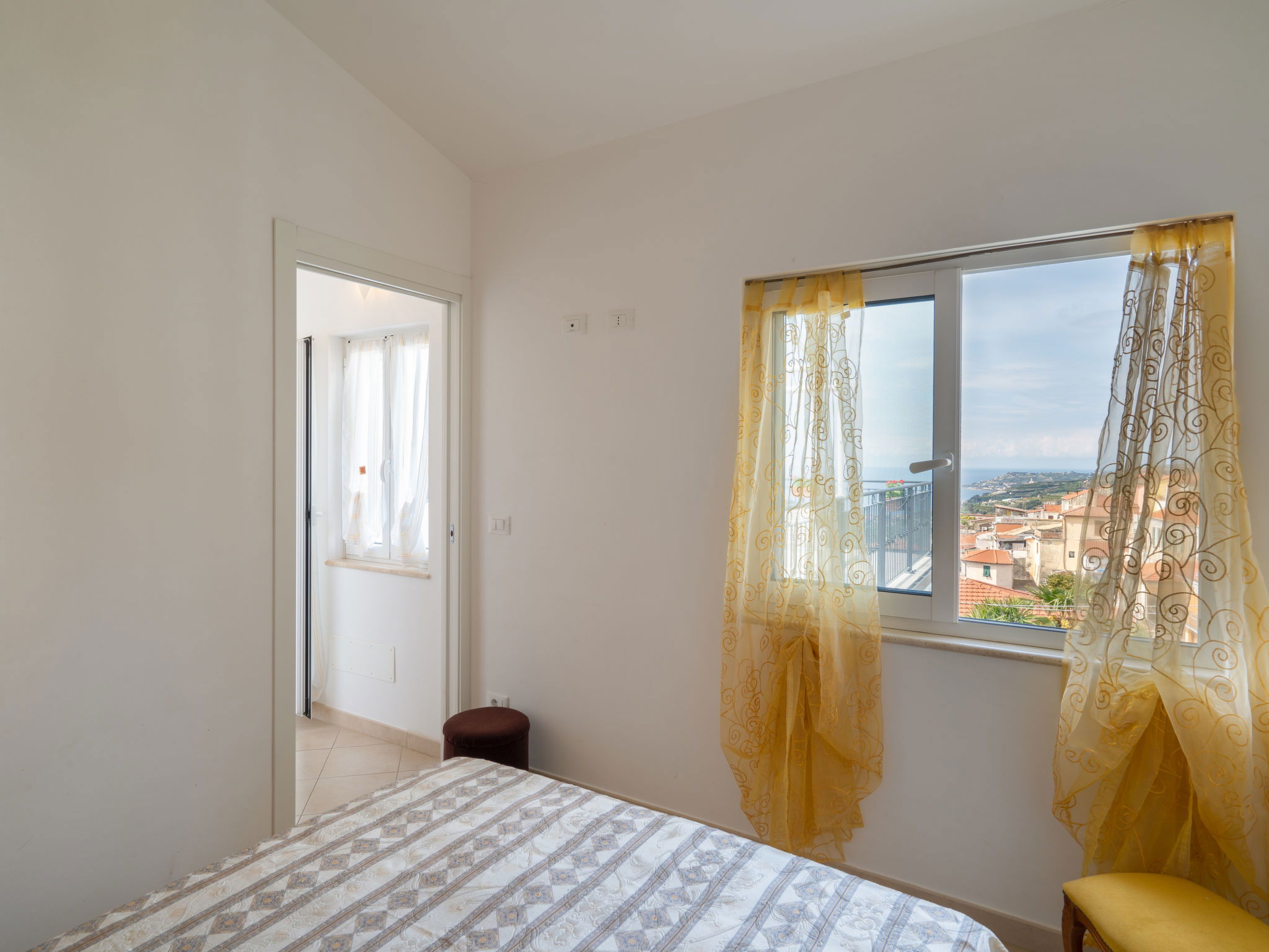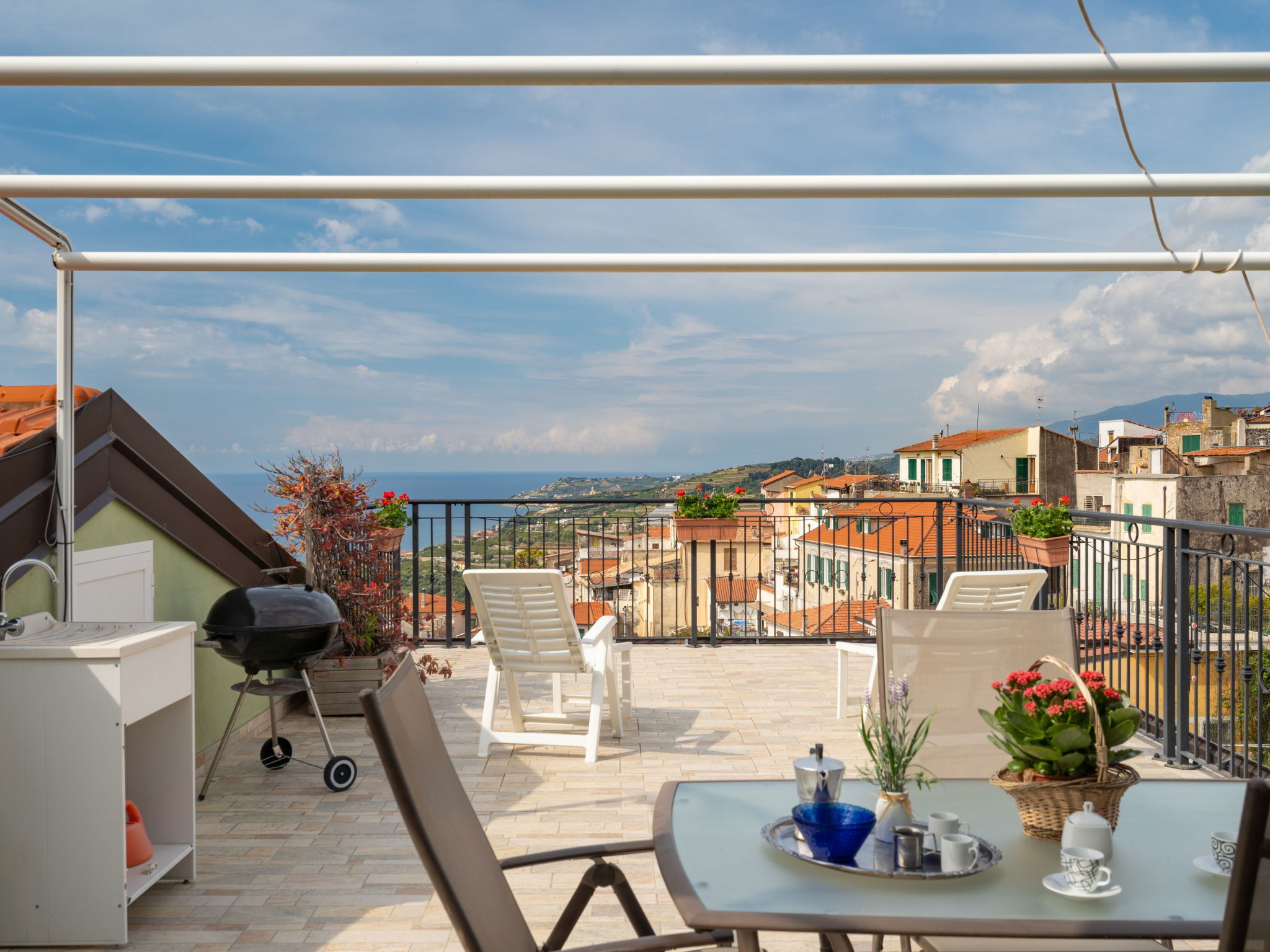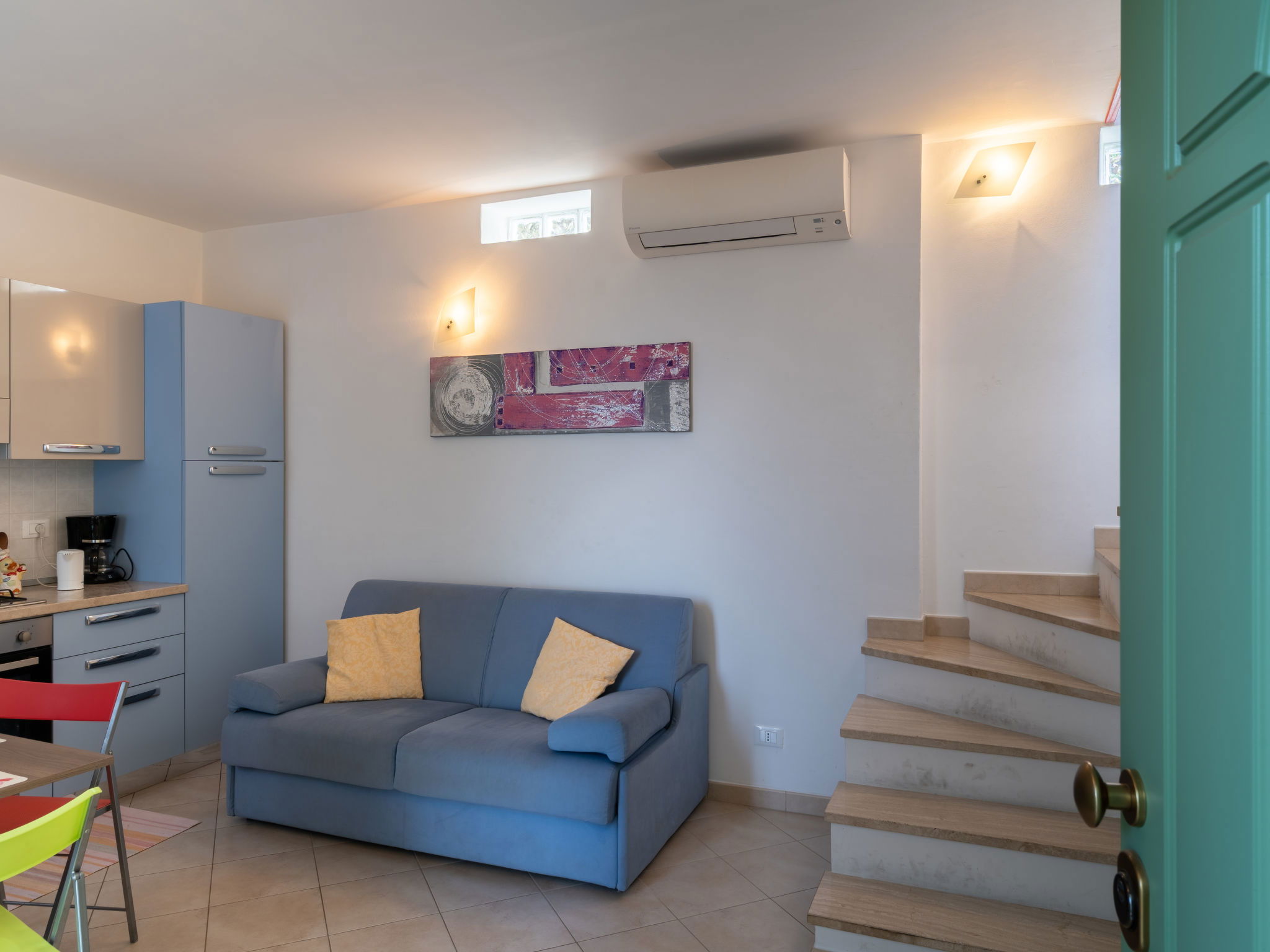 "Toni ", 2-room semi-detached house 45 m2 on 2 levels. Modern furnishings: living/sleeping room with 1 double sofabed (140 cm), satellite TV. Kitchenette (oven, 4 gas rings, toaster, freezer, electric coffee machine). Upper floor: (open staircase), 1 double bedroom. Shower/bidet/WC. Air-conditioning, forced-air heating. Terrace 40 m2, south-west facing position. Terrace furniture, barbecue (portable), deck chairs (2). Marvellous distant view of the sea and the bay. Facilities: washing machine, iron, mosquito net. Internet (WiFi, free). Parking at 20 m. Please note: non-smokers only. Maximum 1 small pet/ dog allowed. Private entrance. IT008060C2FKZY4GWC