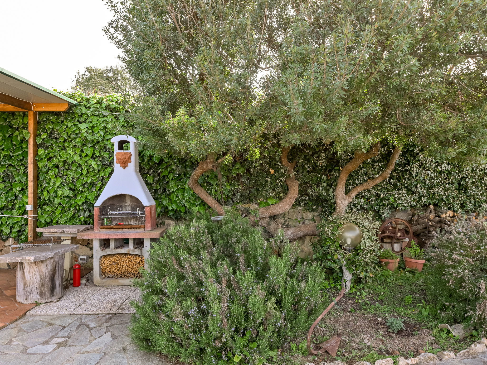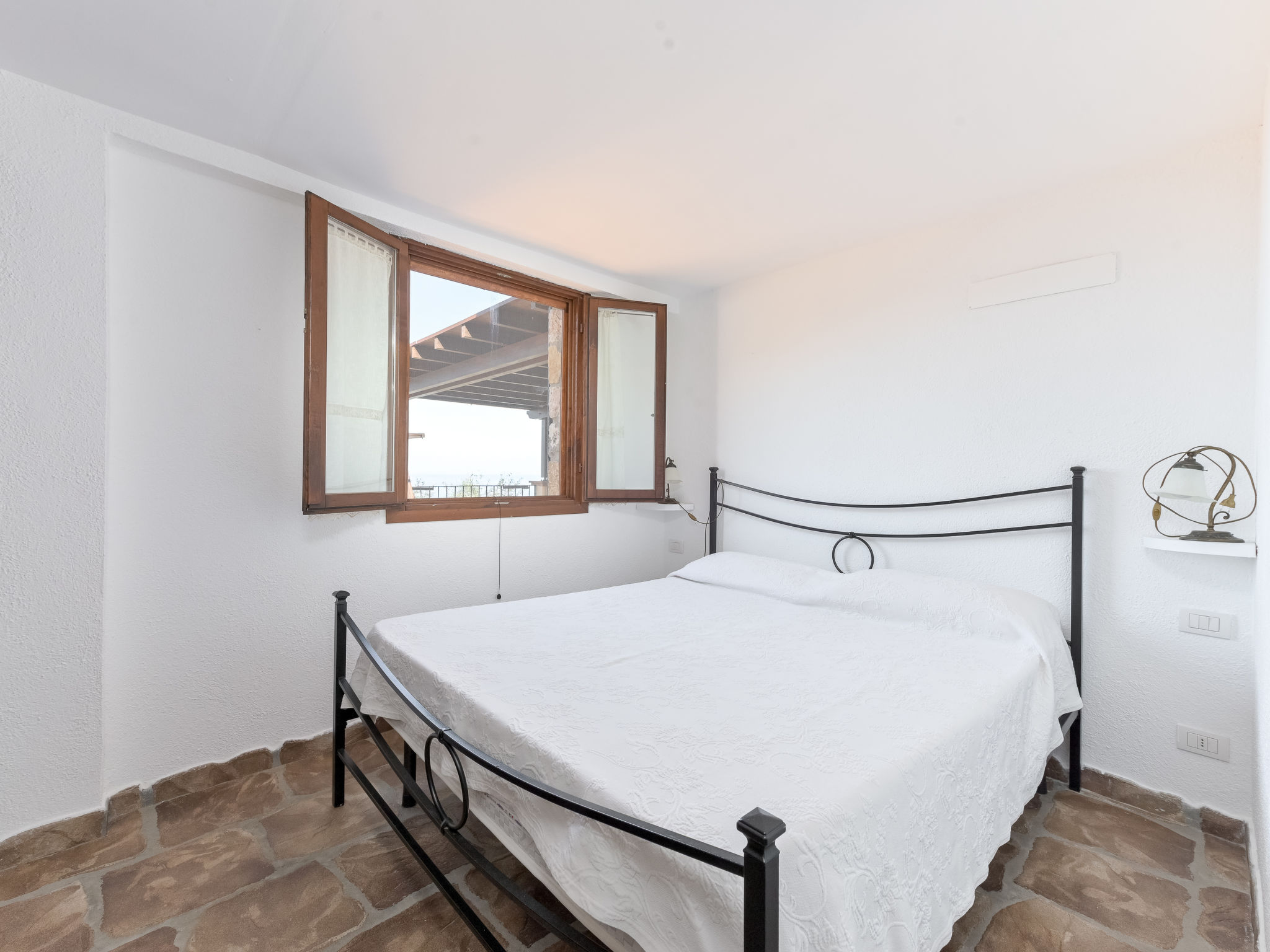 5-room house 100 m2 on 2 levels. Comfortable and cosy furnishings: living/dining room with open-hearth fireplace (only for decoration), dining table, TV and hi-fi system. Exit to the terrace. 1 room with 1 double bed (160 cm). 1 room with 1 double bed (160 cm), shower/WC. 1 room with 1 bed (80 cm), 1 double bed (160 cm), shower/bidet/WC. Exit to the garden. Open kitchen (oven, dishwasher, 4 gas rings, toaster, kettle, microwave, freezer, electric coffee machine). Exit to the terrace. Bath/bidet/WC. Upper floor: 1 open room with sloping ceilings with 1 bed (80 cm), 1 sofabed (80 cm). Oil heating. Natural stone floors. Terrace 50 m2, roofed. Deck chairs. Marvellous view of the sea. Facilities: washing machine, mosquito net, baby cot for up to 2 year olds. Internet (WiFi, free). Please note: one double bedroom is outside the apartment. Non-smokers only. No internal connecting door between the separated properties. Bedlinen, towels, final cleaning and all energy costs are included. IT053016B4G7NID8ED