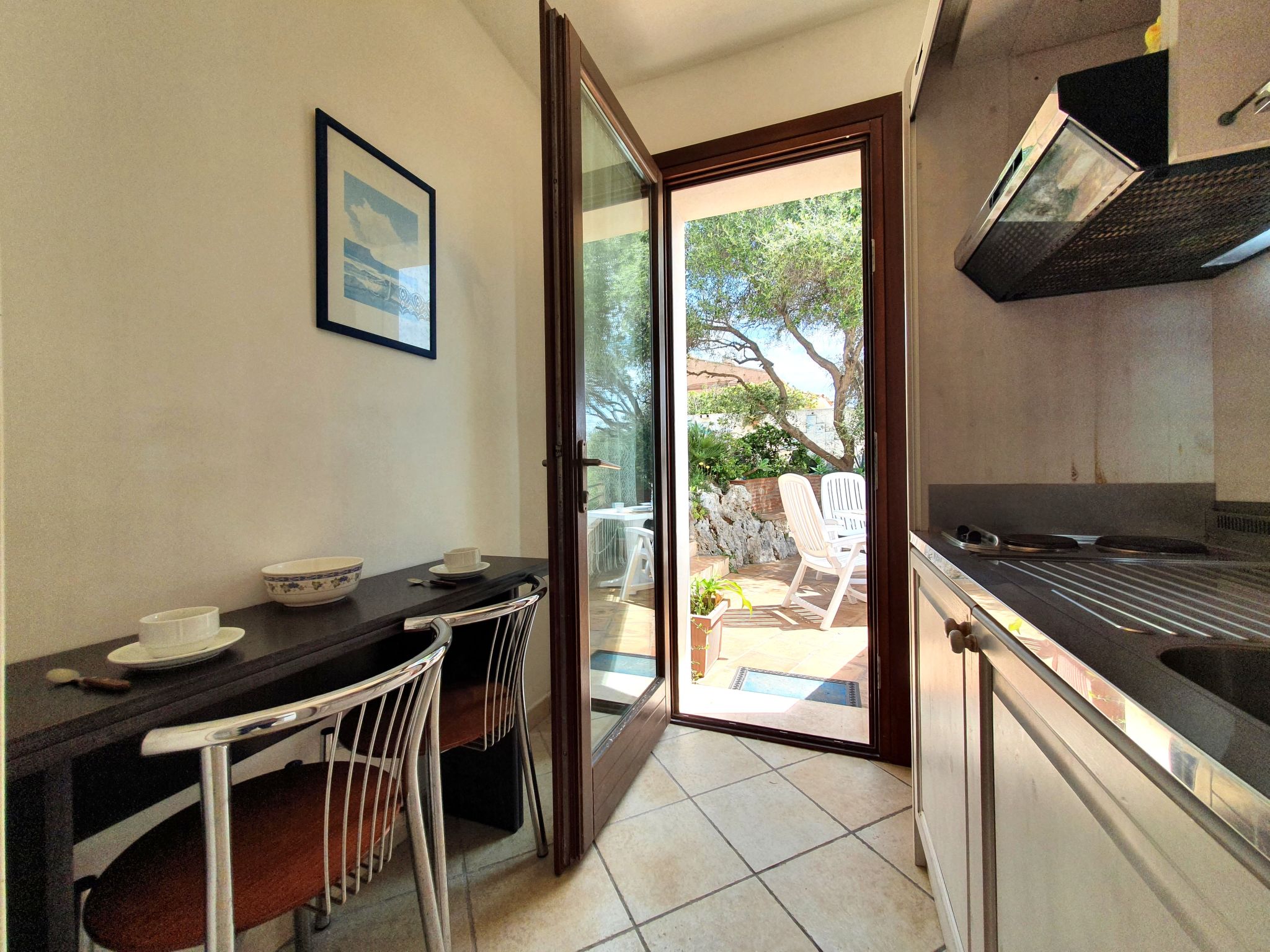 1-room studio 30 m2. Comfortable furnishings: 1 double bedroom with satellite TV (flat screen). Kitchenette (2 hot plates, kettle) with small dining table. Shower/bidet/WC. Heating, air-conditioning, forced-air heating. Heating available only from 01.12. to 31.03. Small terrace. Terrace furniture. View of the sea. Facilities: safe, baby cot for up to 2 year olds (extra), hair dryer. Internet (WiFi, free). Parking (1 car). Please note: fridge without freezer. Maximum 1 pet/ dog allowed. Smoke alarm, fire extinguisher. IT089017A1TXHPQR9J