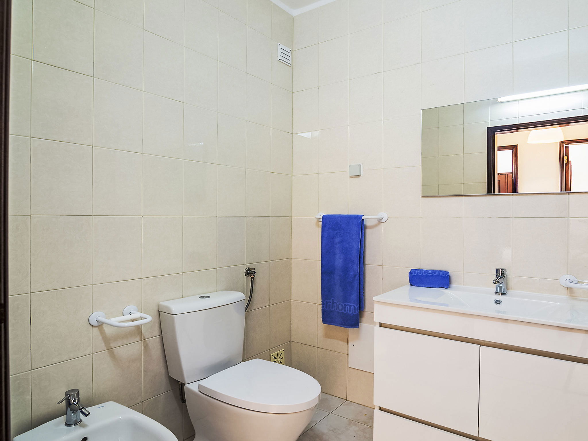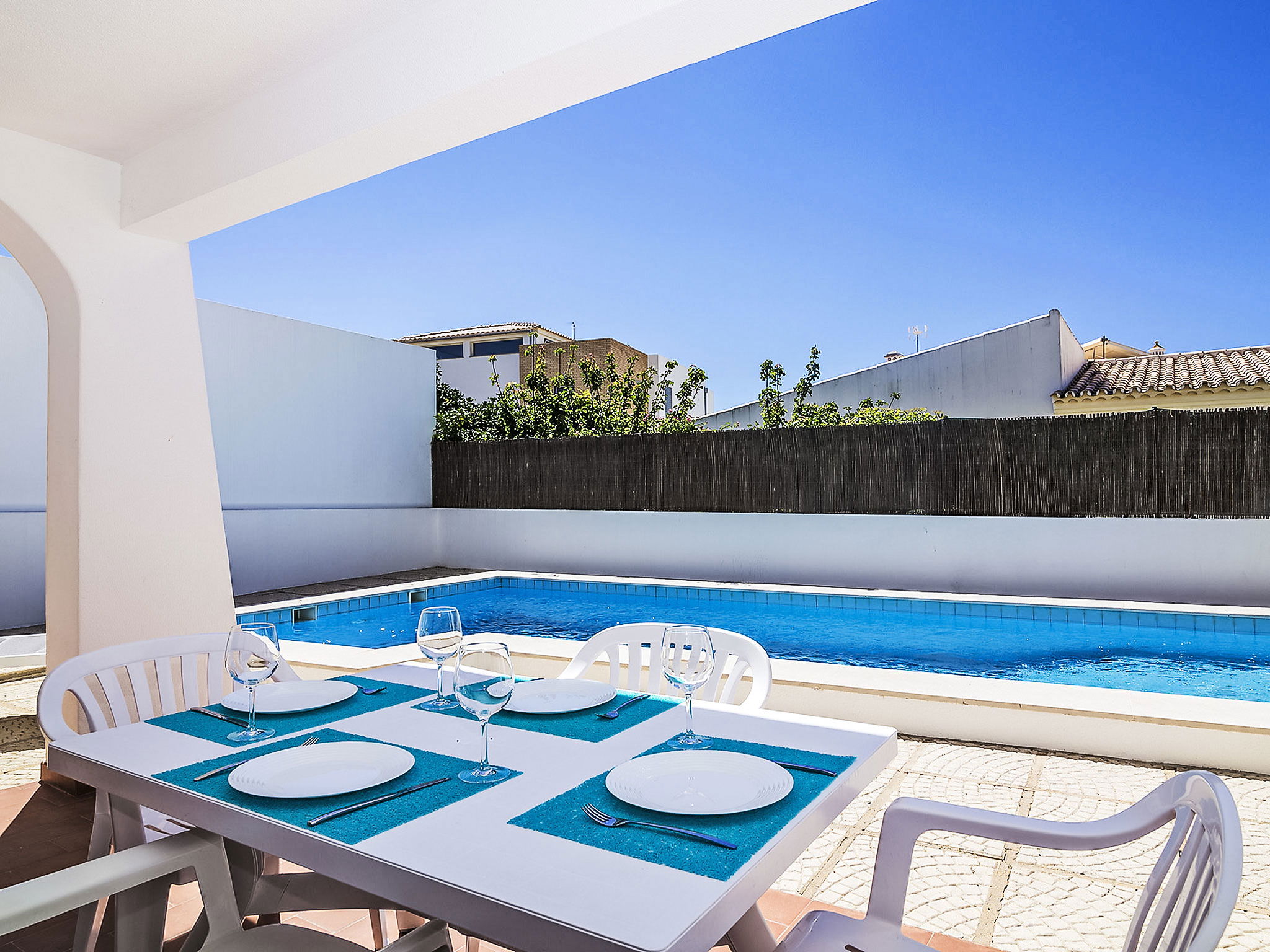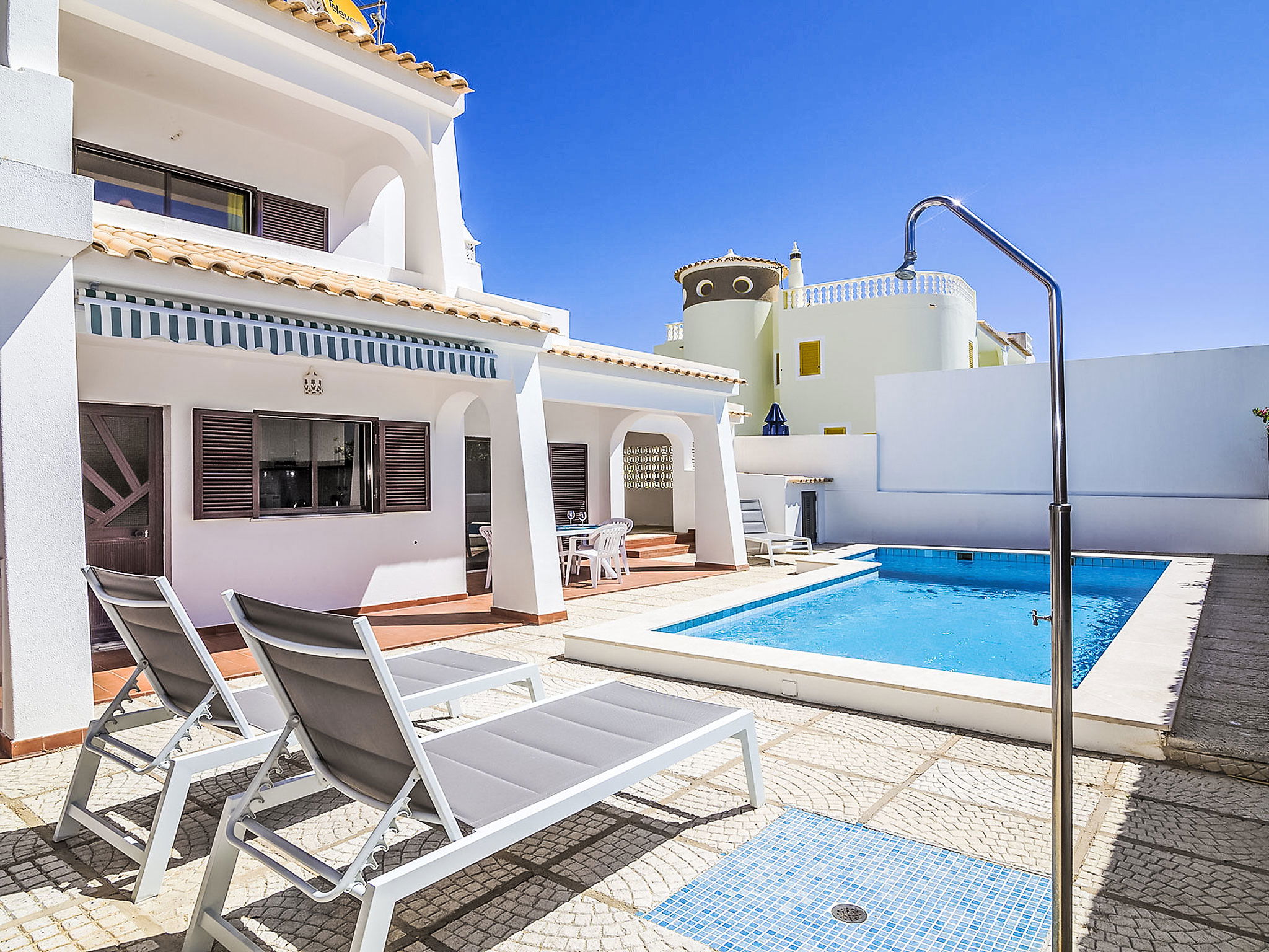 Zona Galé 8 km from Albufeira: Cosy, comfortable villa "Casa Galé 600m from the beach", 2 storeys, detached, built in 1992, renovated in 2016. In the resort da Galé, in the district Albufeira, in a sunny position residential area (villas), 550 m from the sea, in a cul-de-sac. Private: property 300 m2 (fenced), garden 20 m2, swimming pool angular (8 x 4 m, depth 80 - 190 cm, seasonal availability: 01.Jan. - 31.Dec.). Outdoor shower, garden furniture, barbecue. In the house: air conditioning, washing machine. Parking at the house. Grocery, supermarket 400 m, restaurant 300 m, bar, bakery, pub garden, bus stop 400 m, railway station "Estação de Tunes" 13.4 km, sandy beach "São Lourenço" 550 m. Sports harbour 4.5 km, marina 8.5 km, golf course (18 hole) 2.6 km, surf school 650 m, minigolf 6.1 km, riding stable 8.7 km. Nearby attractions: Zoomarine 9.1 km, Algarve Shopping 7.8 km, Slide e Splash Parque Aquático 24.8 km, Marina de Albufeira 4.5 km, Castelo de Silves 22.2 km, Praia da Galé 1 km. Please note: suitable for families. Groups of teenagers on request only. Loading and unloading of baggage is possible at the holiday house.