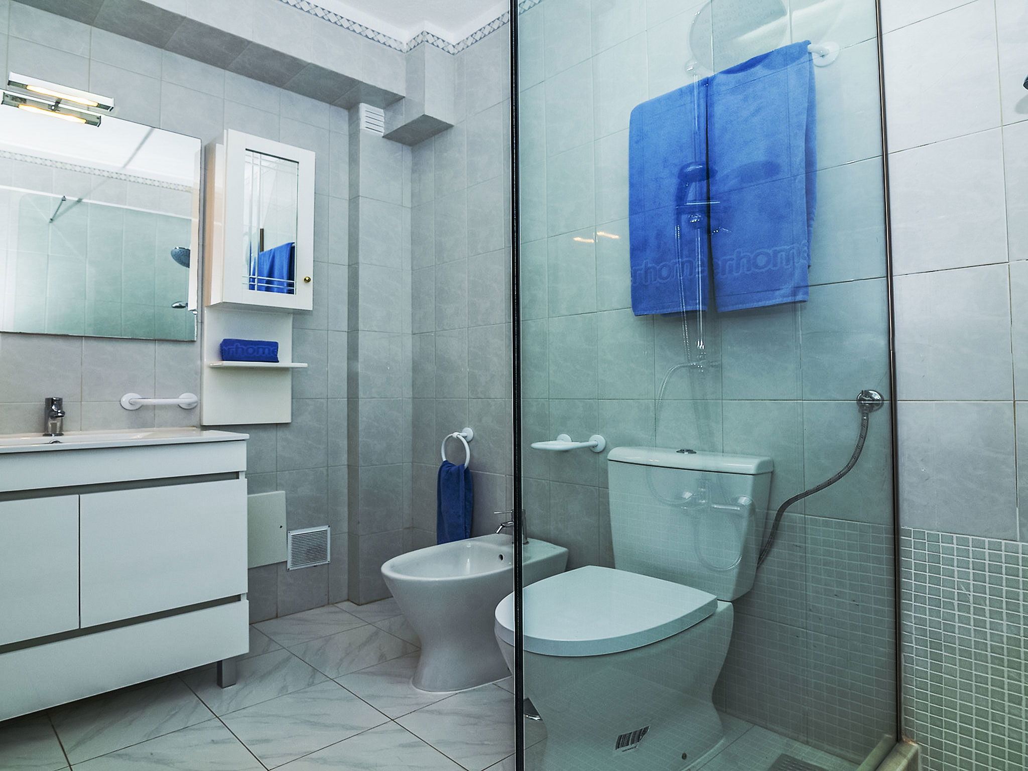 "Galé 600m from the beach", 5-room villa 198 m2 on 2 levels. Bright, fully renovated in 2016, comfortable and modern furnishings: living/dining room with 1 sofabed (135 cm, length 196 cm), dining table, TV, international TV channels, flat screen, air conditioning and forced-air heating. Exit to the swimming pool. 1 room with 1 french bed (140 cm, length 190 cm), air conditioning and forced-air heating. Kitchen (oven, dishwasher, 4 ceramic glass hob hotplates, microwave, freezer, electric coffee machine). Exit to the terrace. Shower/bidet/WC. Upper floor: 2 rooms, each room with 2 beds (90 cm, length 200 cm), air conditioning and forced-air heating. 1 room with 1 french bed (160 cm, length 200 cm), air conditioning and forced-air heating. Shower/bidet/WC. Balcony, terrace. Terrace furniture, barbecue, deck chairs (8). View of the sea. Facilities: washing machine, iron, children's high chair, baby cot for up to 3 year olds, hair dryer. Internet (WiFi, free). Please note: suitable for families. Non-smoking house. Fire extinguisher. 63241/AL