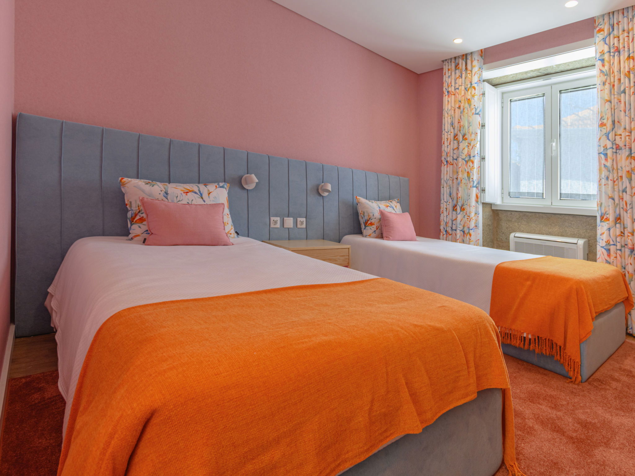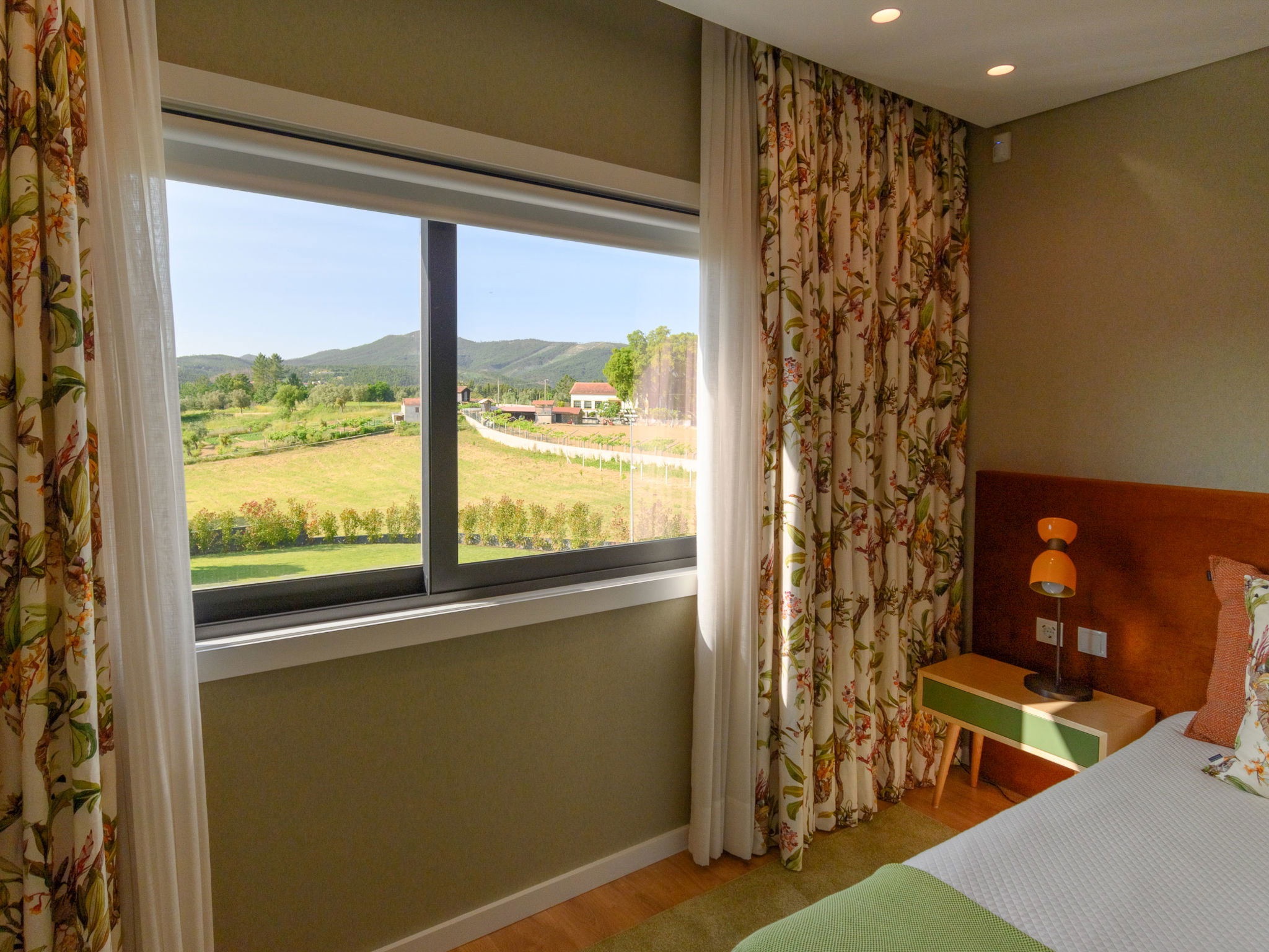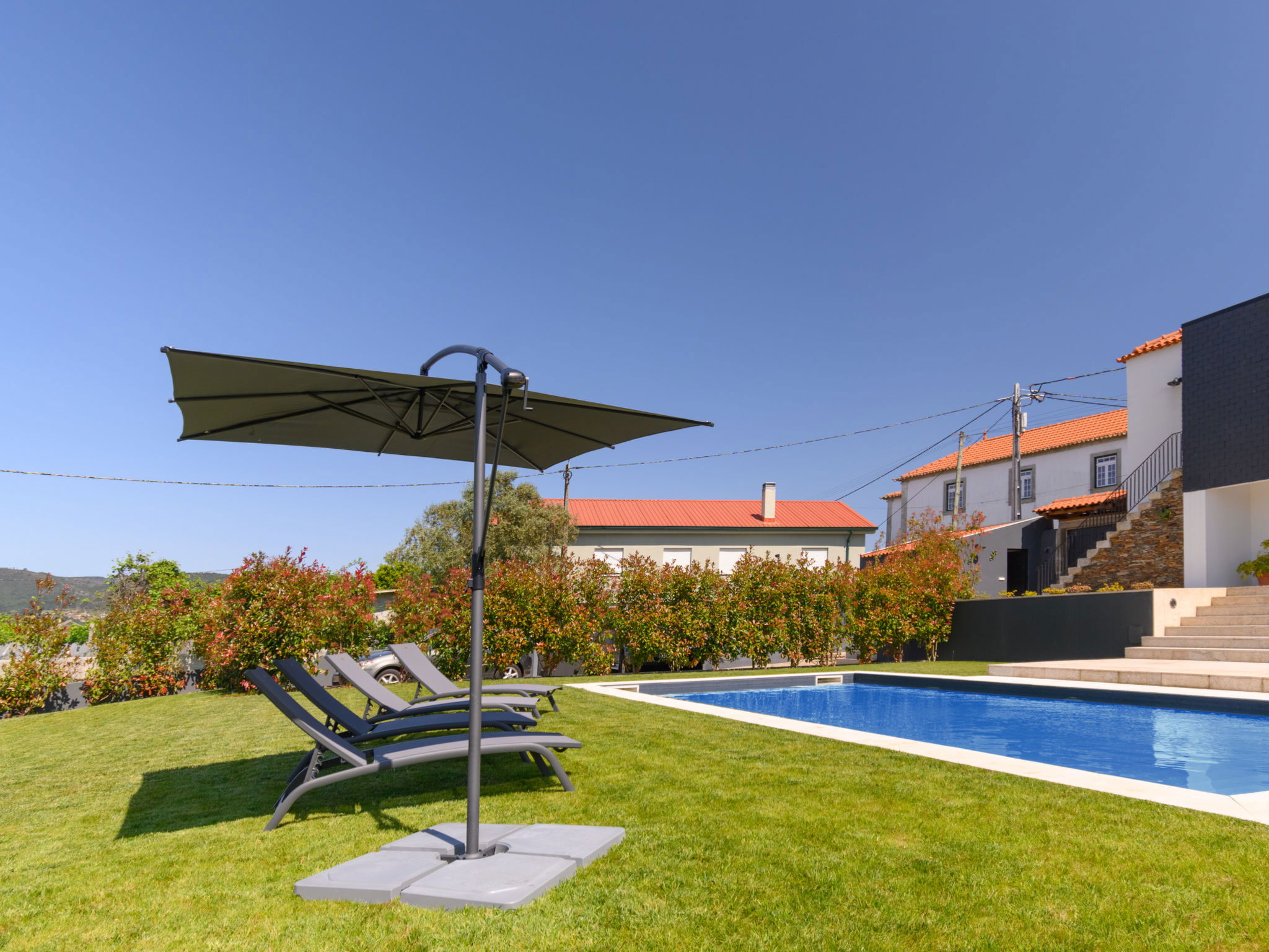 "Douro Escape", 6-room house 106 m2 on 2 levels. Spacious, fully renovated in 2021, beautiful and modern furnishings: large living/dining room with panoramic window with dining table, bar, cable TV, air conditioning and forced-air heating. Exit to the garden, to the terrace, to the swimming pool. Kitchen (oven, dishwasher, 4 ceramic glass hob hotplates, toaster, kettle, microwave, electric coffee machine, Capsules for coffee machine (Nespresso (not inc))) with air conditioning and forced-air heating. Sep. WC, double hand-basin. Upper floor: 1 room with 1 french bed (160 cm, length 200 cm), shower/WC, air conditioning and forced-air heating. 1 room with 2 beds (90 cm, length 200 cm), shower/WC, air conditioning and forced-air heating. 1 room with 2 beds (90 cm, length 200 cm), shower/WC. 1 room with 1 french bed (160 cm, length 200 cm), shower/WC, air conditioning and forced-air heating. 1 large room with 1 french bed (160 cm, length 200 cm), shower/bidet/WC, air conditioning and forced-air heating. Terrace furniture, barbecue, deck chairs (8). Very beautiful view of the swimming pool and the countryside. Facilities: washing machine, iron, children's high chair, baby cot for up to 2 year olds, hair dryer. Internet (WiFi, free). Please note: non-smokers only. No lift. 132474/AL