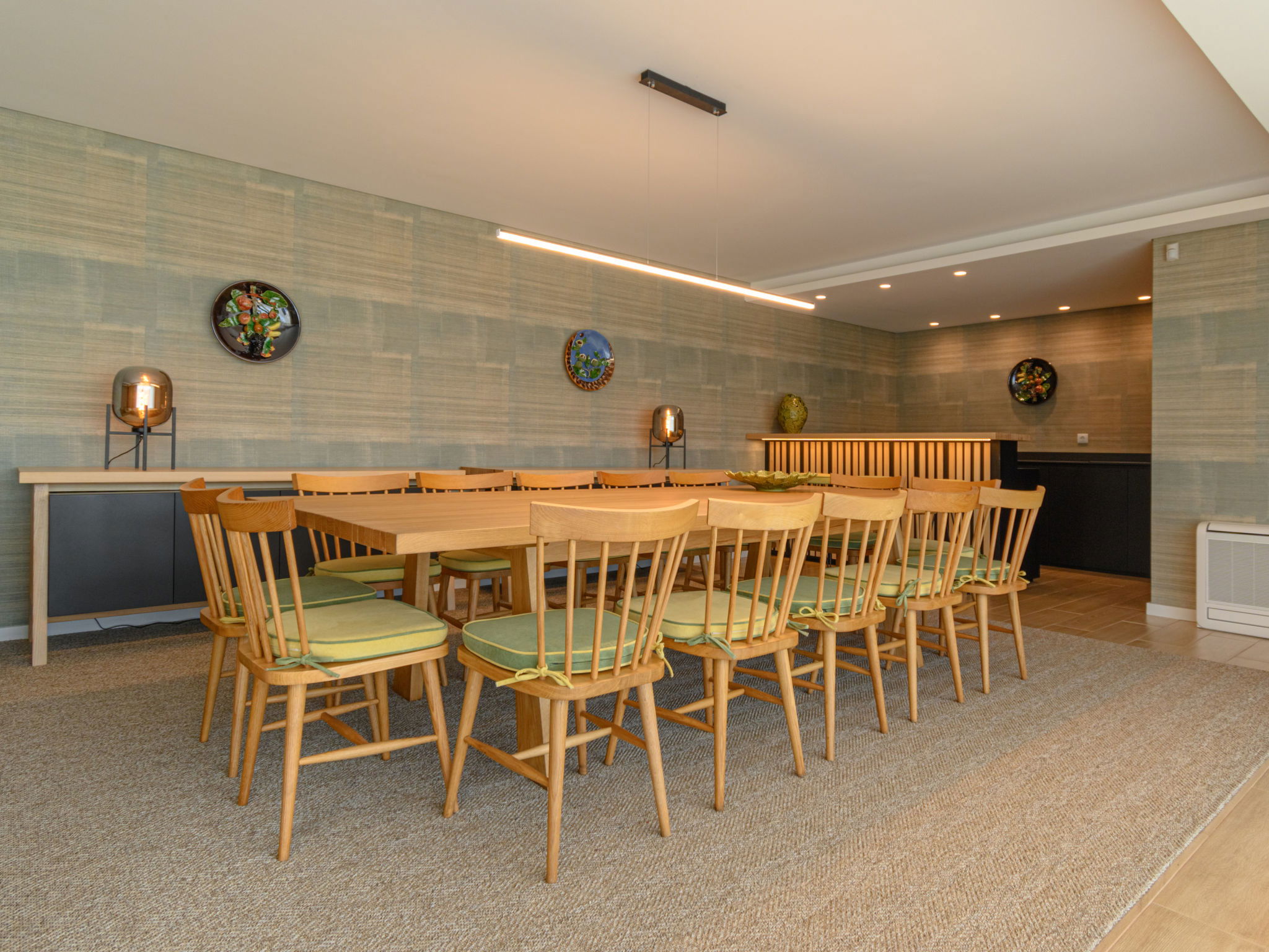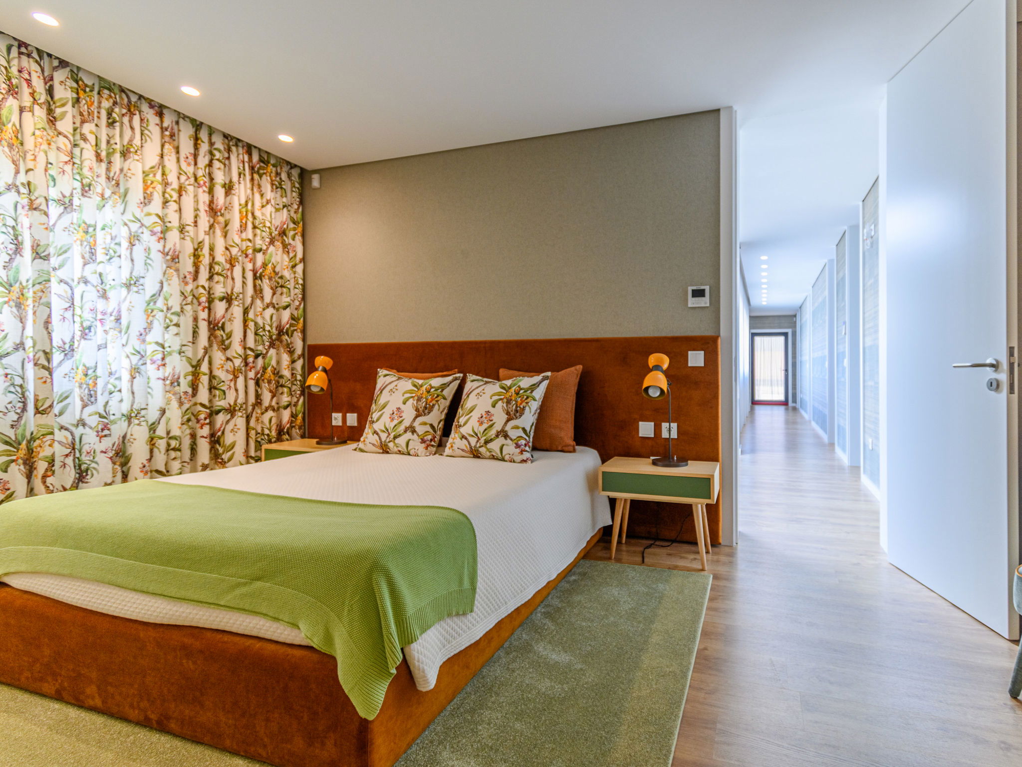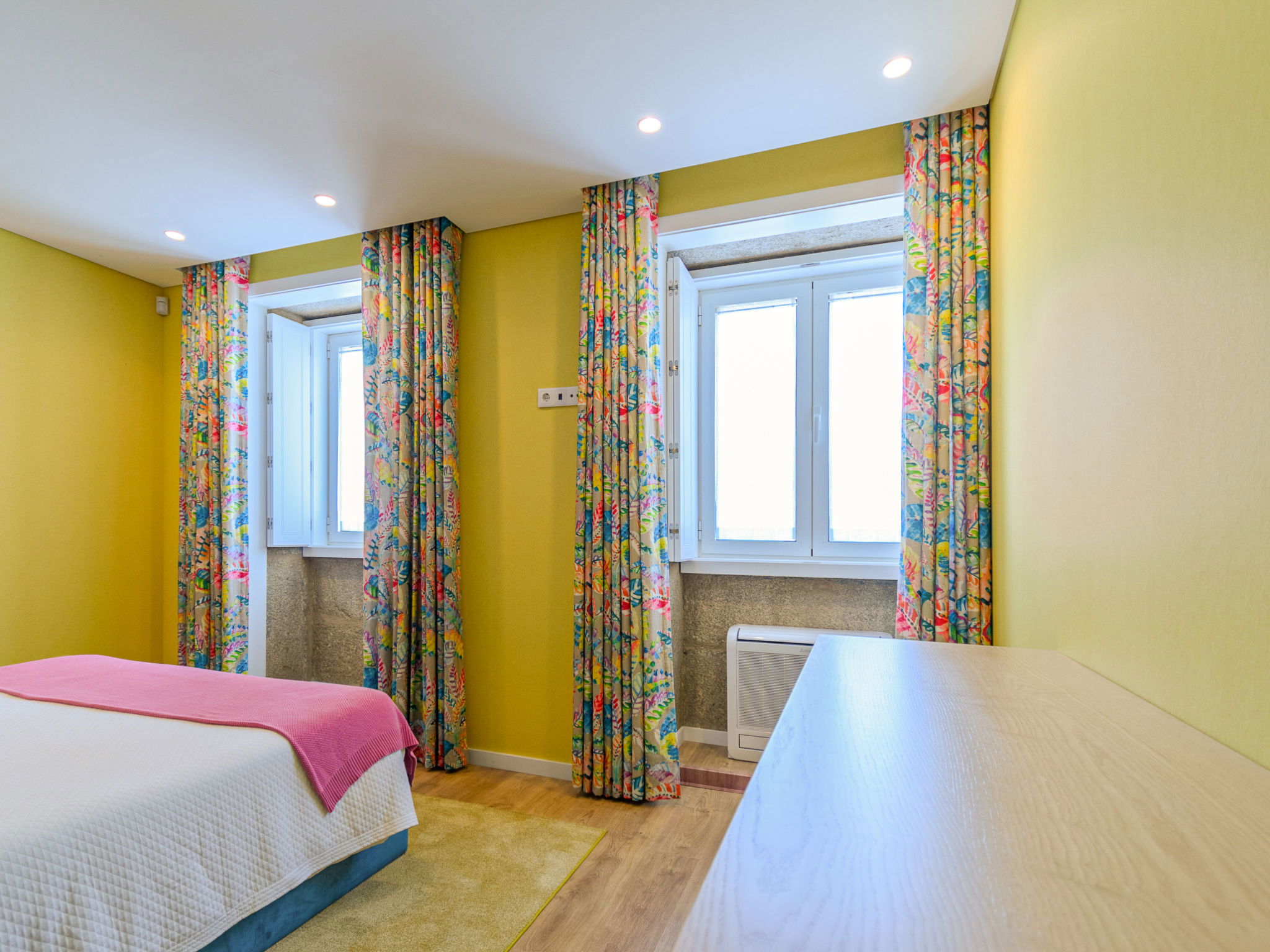 "Douro Escape", 6-room house 106 m2 on 2 levels. Spacious, fully renovated in 2021, beautiful and modern furnishings: large living/dining room with panoramic window with dining table, bar, cable TV, air conditioning and forced-air heating. Exit to the garden, to the terrace, to the swimming pool. Kitchen (oven, dishwasher, 4 ceramic glass hob hotplates, toaster, kettle, microwave, electric coffee machine, Capsules for coffee machine (Nespresso (not inc))) with air conditioning and forced-air heating. Sep. WC, double hand-basin. Upper floor: 1 room with 1 french bed (160 cm, length 200 cm), shower/WC, air conditioning and forced-air heating. 1 room with 2 beds (90 cm, length 200 cm), shower/WC, air conditioning and forced-air heating. 1 room with 2 beds (90 cm, length 200 cm), shower/WC. 1 room with 1 french bed (160 cm, length 200 cm), shower/WC, air conditioning and forced-air heating. 1 large room with 1 french bed (160 cm, length 200 cm), shower/bidet/WC, air conditioning and forced-air heating. Terrace furniture, barbecue, deck chairs (8). Very beautiful view of the swimming pool and the countryside. Facilities: washing machine, iron, children's high chair, baby cot for up to 2 year olds, hair dryer. Internet (WiFi, free). Please note: non-smokers only. No lift. 132474/AL