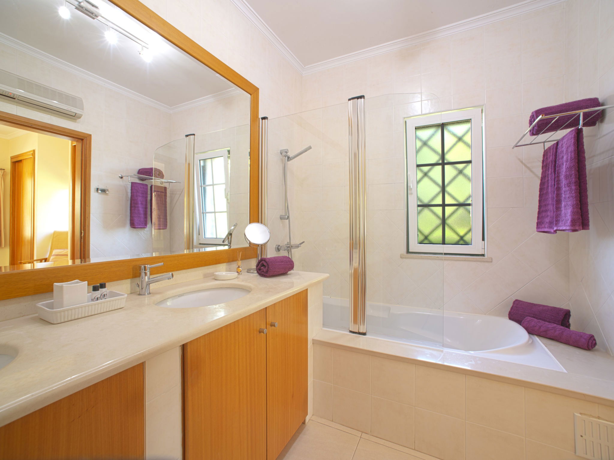 House "Montinho", built in 2007, surrounded by meadows and fields. 2.5 km from the centre of Loulé, on a slope, residential area (villas), 12 km from the sea, in the countryside. Private: property 2'500 m2 (fenced) with lawn and trees, swimming pool (10 x 5 m, seasonal availability: 01.Jan. - 31.Dec.) with salt-electrolysis pool-cleaning system. Outdoor shower, table tennis, pergola. In the house: burglar alarm system. Parking on the premises, single garage. Shop 2.2 km, restaurant 650 m, bus stop "Betunes" 650 m, railway station "Loulé" 8.9 km, sandy beach 12 km, indoor swimming pool 3.4 km. Marina 17.5 km, golf course (27 hole) 14 km, tennis 2.5 km. Nearby attractions: Aquapark 11 km, Zoomarine 29 km.