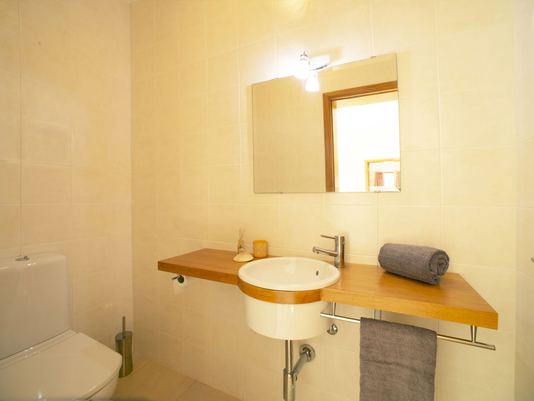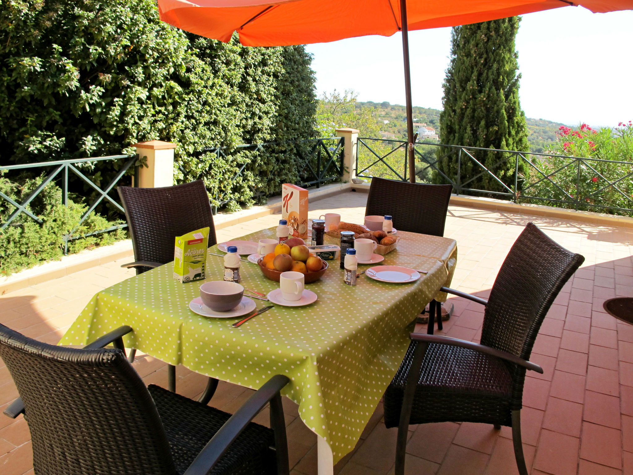 "Montinho", 5-room house 130 m2. Bright, beautiful and tasteful furnishings: living/dining room with open-hearth fireplace, dining table, satellite TV, hi-fi system and electric heater. Exit to the terrace. 2 rooms, each room with 2 beds, shower/WC and air conditioning. 1 room with 1 double bed, bath/WC, double hand-basin and air conditioning. Kitchen (4 hot plates, oven, dishwasher, toaster, kettle, microwave, freezer, electric coffee machine) with dining table. Exit to the terrace. Sep. WC. Electric heating, air-conditioning. Heating not available in all rooms. Terrace roofed terrace, east facing position. Terrace furniture, electric barbecue, deck chairs (6). Panoramic view of the sea. Facilities: washing machine, iron, children's high chair, baby cot. Internet (WiFi, free). Please note: non-smokers only. Fire extinguisher. 37808/AL