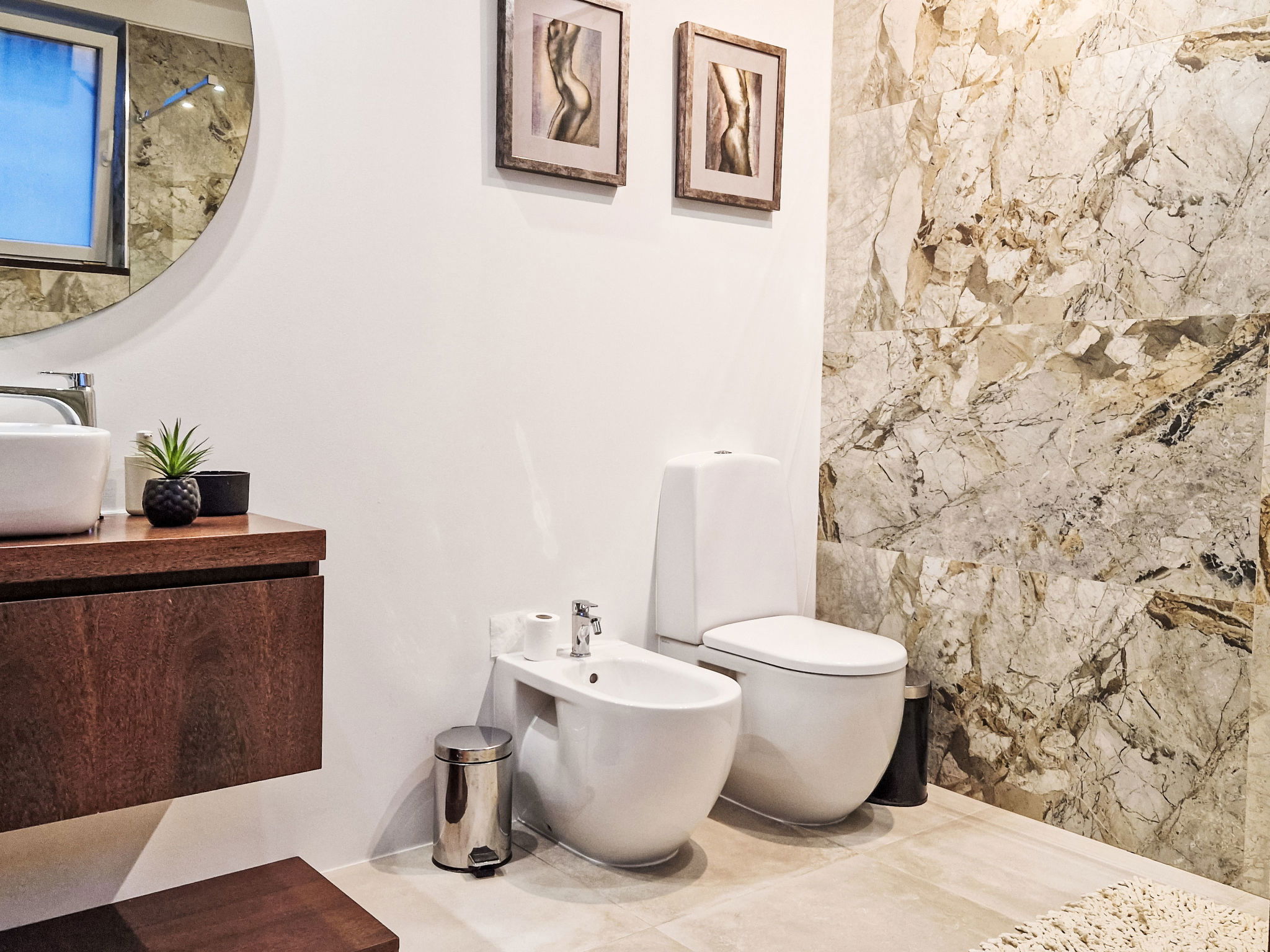 "da Maria", 6-room house 280 m2 on 3 levels. Bright, very modern and stylish furnishings: living/dining room with open-hearth fireplace, dining table, cable TV, radio and hi-fi system. Exit to the terrace. Kitchen (oven, dishwasher, 4 ceramic glass hob hotplates, toaster, kettle, microwave, electric coffee machine) with dining table. Exit to the terrace. Sep. WC. Solar energy heating. Upper floor: (open staircase), 1 room with Dressing room with 1 french bed (180 cm, length 200 cm). Exit to the balcony. 1 room with 1 french bed (160 cm, length 190 cm), cable TV. Exit to the balcony. 2 rooms, each room with 1 french bed (160 cm, length 190 cm). Exit to the balcony. Bath/shower, shower, shower/WC. 2 balconies 12 m2, terrace 20 m2 partly roofed terrace 15 m2. Terrace furniture, barbecue, deck chairs (4), box-room. View of the mountains. Facilities: washing machine, iron, children's high chair, baby cot. Internet (WiFi, free). Please note: suitable for families. Non-smoking house. Fire extinguisher. When there are less than the maximum number of guests staying at the property, not all of the bedrooms will be available for use. 117584/AL