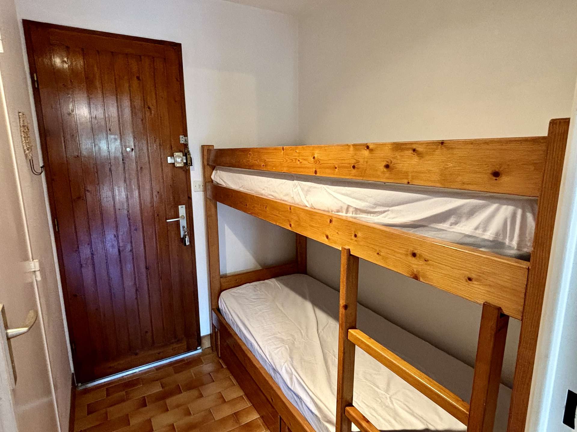 This holiday studio, ideal for a stay with family or friends, is located on the 2nd floor and consists of a living room with 1 double sofa bed, an equipped kitchen, a cabin with 2 single bunk beds and a bathroom with WC.