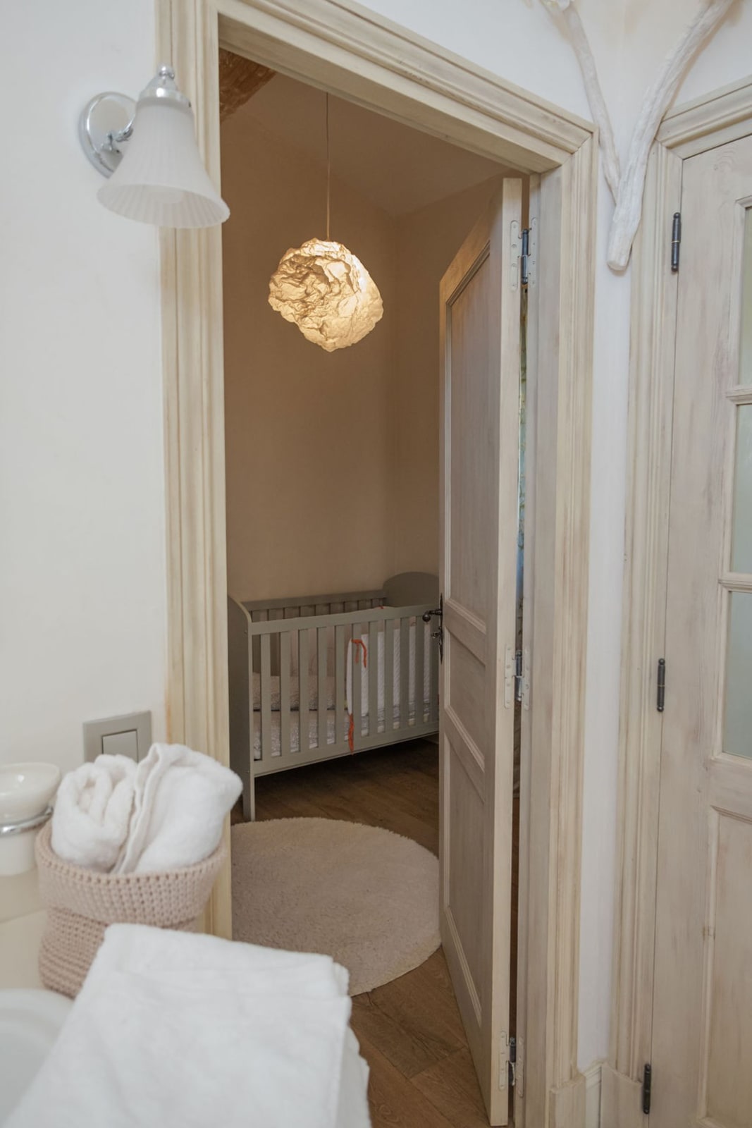 - A nursery with a cot. This room shares its bathroom with a double bedroom, which opens onto the terrace and also has a private balcony with an outdoor bathtub.