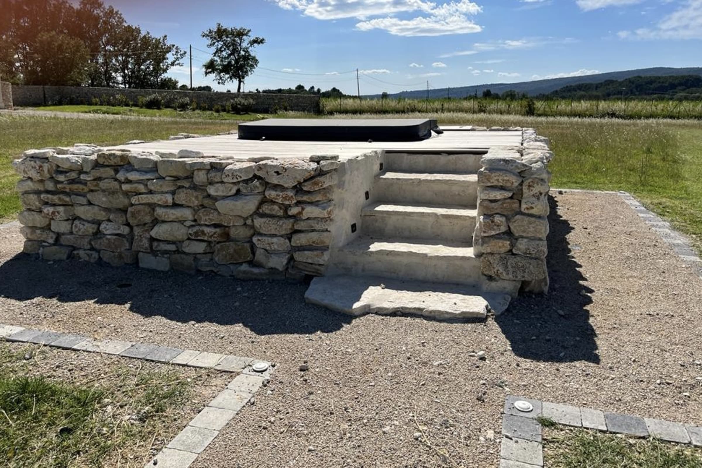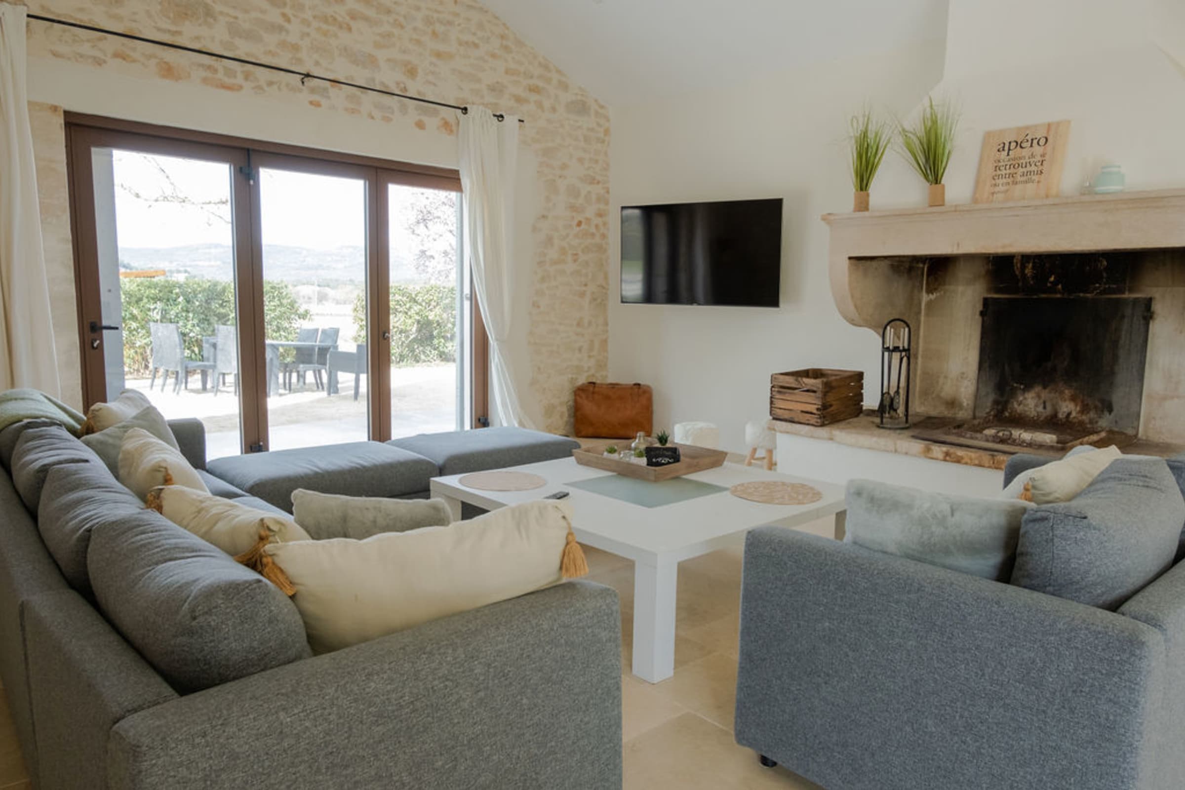 Outside, guests can unwind by the shimmering pool on its double sunbeds or in the relaxation area with comfortable seating under the shade of the pergola, before engaging in a friendly game of pétanque on the boules court. A dedicated playground ensures the little ones are entertained. A hot tub awaits for a soak under the stars. The property offers views of the countryside and of the famous village of Gordes, providing a truly serene and picturesque ambience.