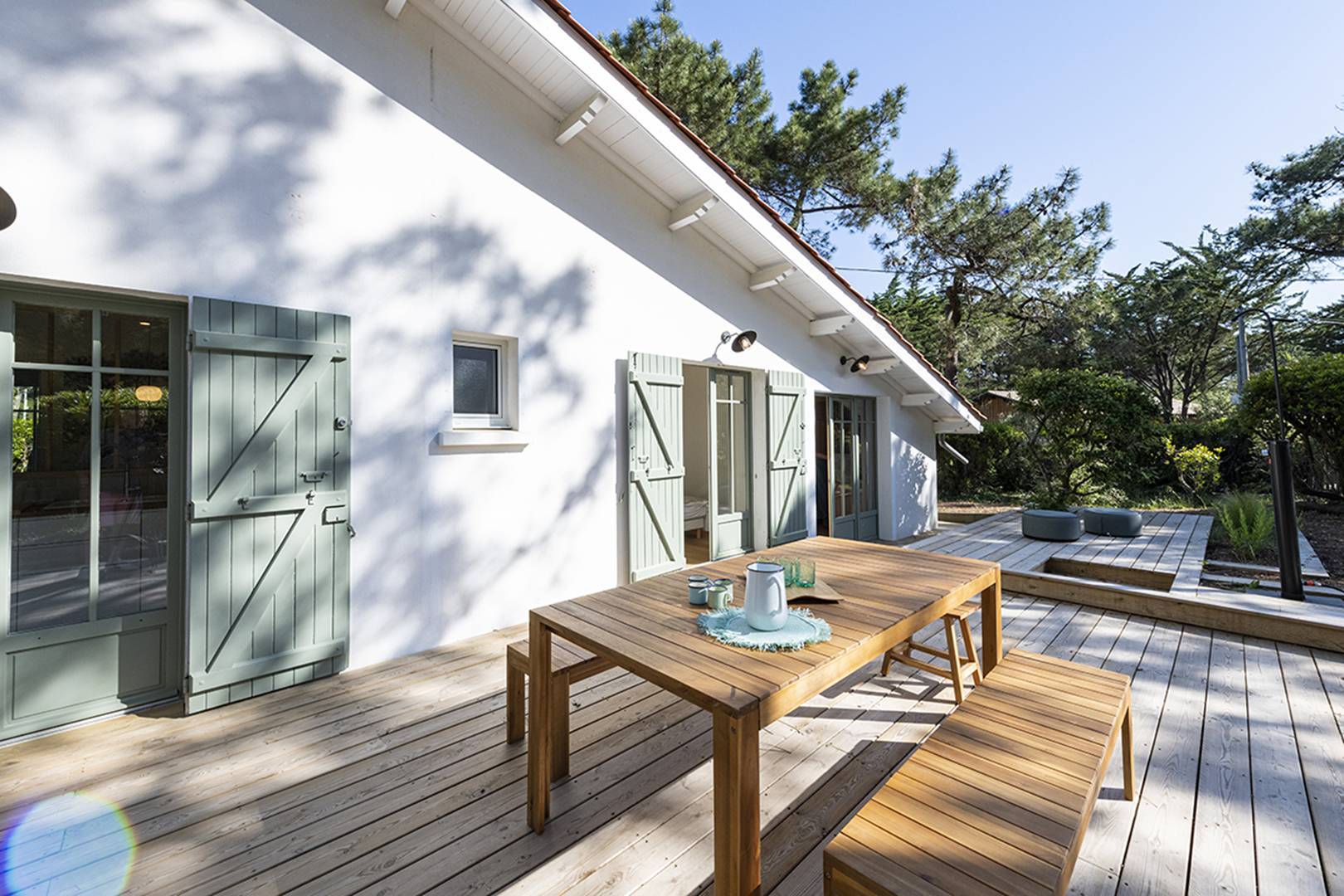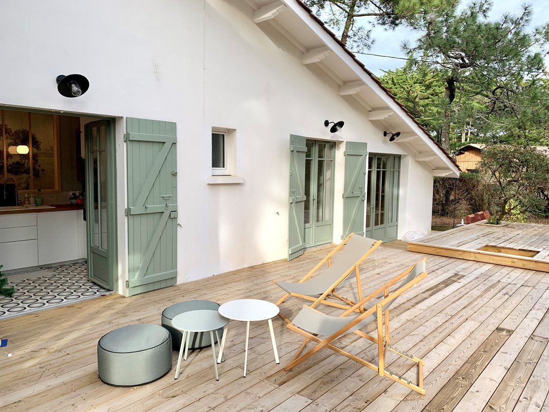 Superb luxury house at the tip of Cap-Ferret, in the heart of the popular 44h district, very well located in a quiet environment, close to the ocean (5 minutes walk) and the beaches of the basin 50 meters accessible by the garden (1 minute on foot).
