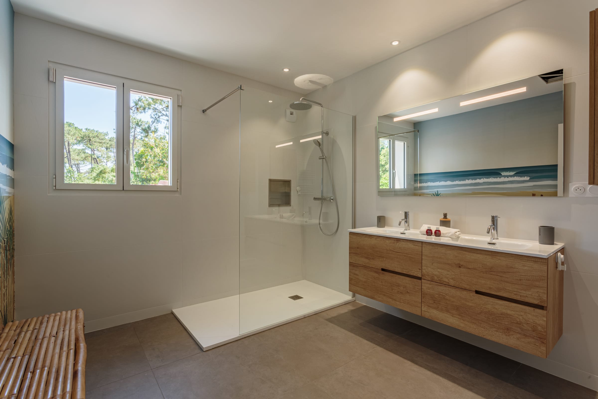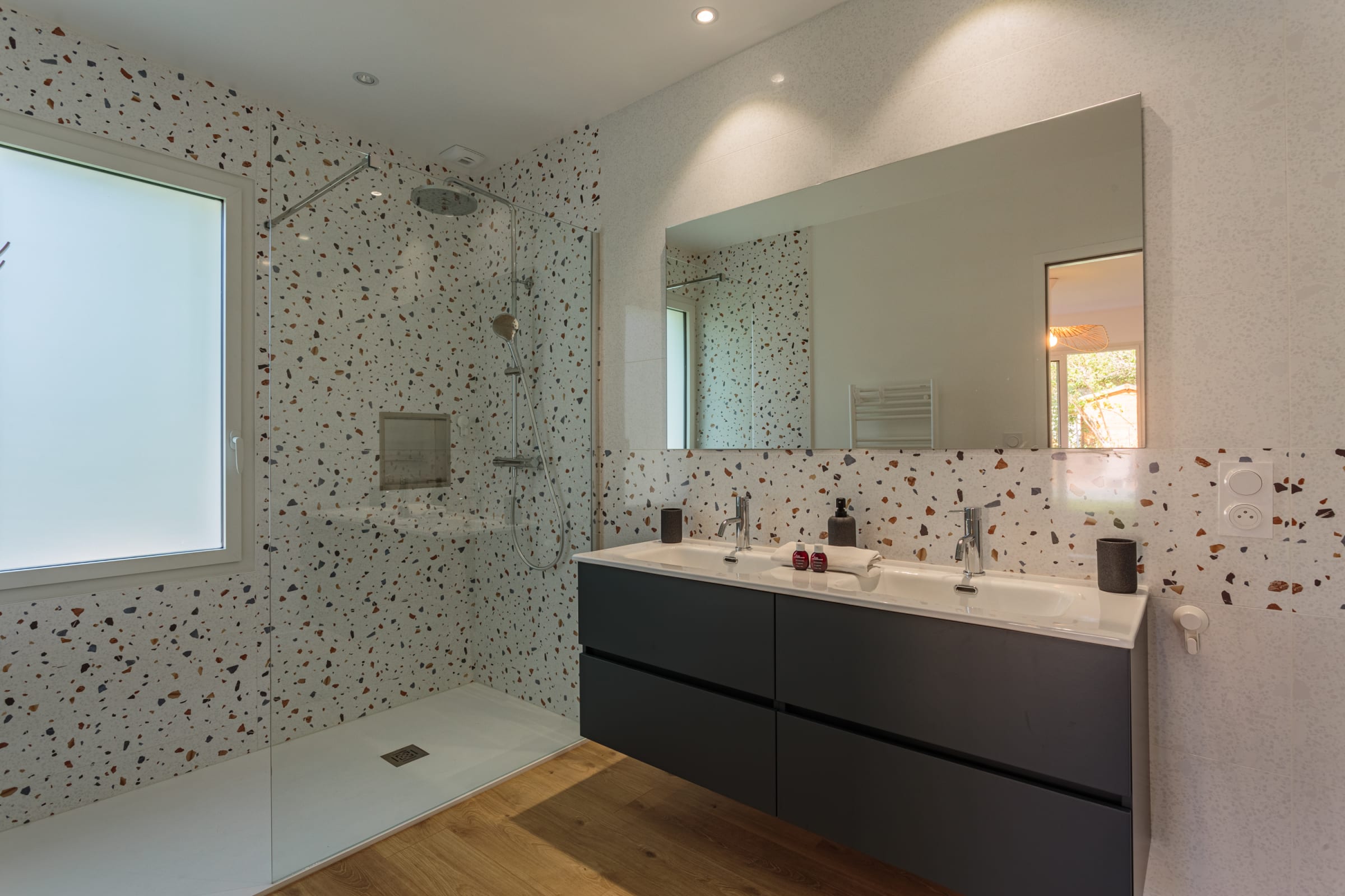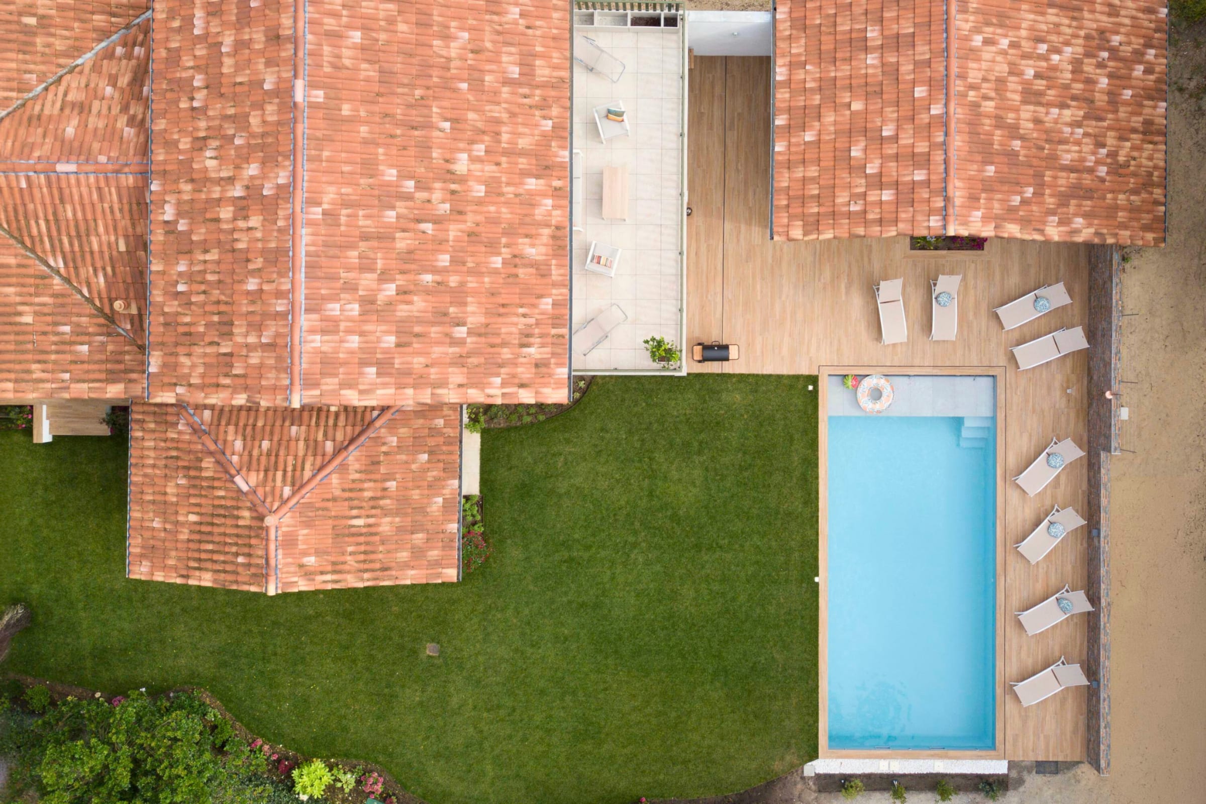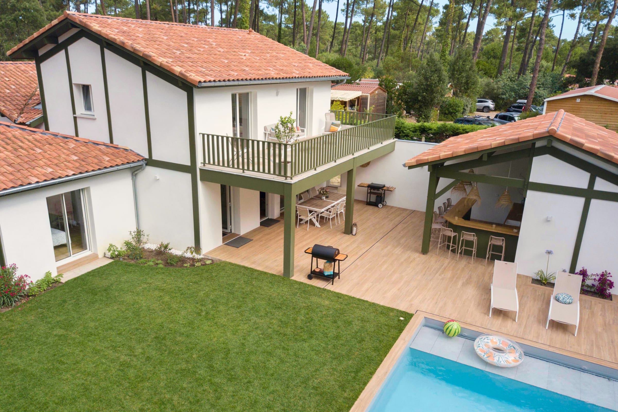 - a 120m² terrace with a large dining table, outdoor bar, barbecue and plancha,
