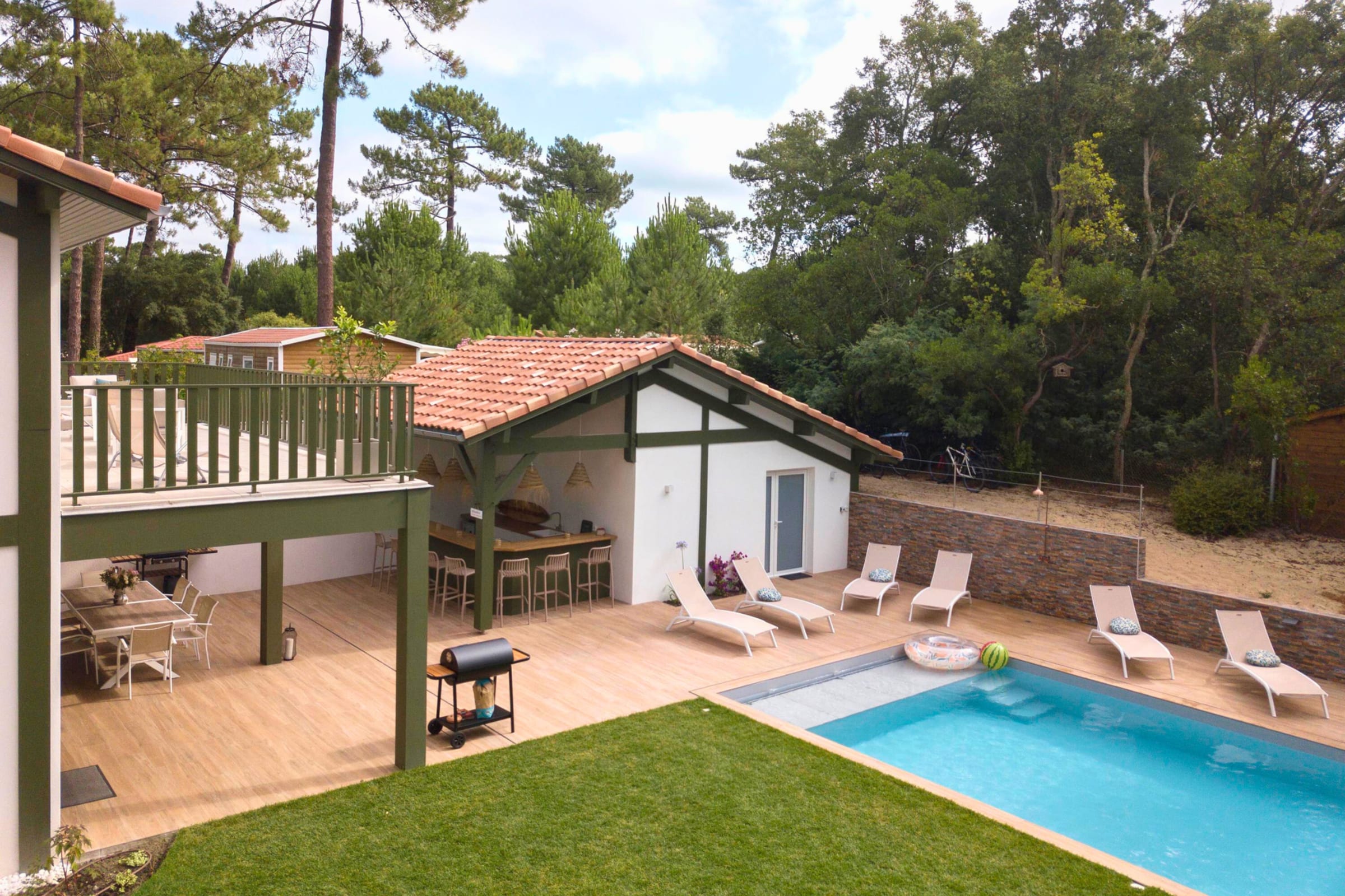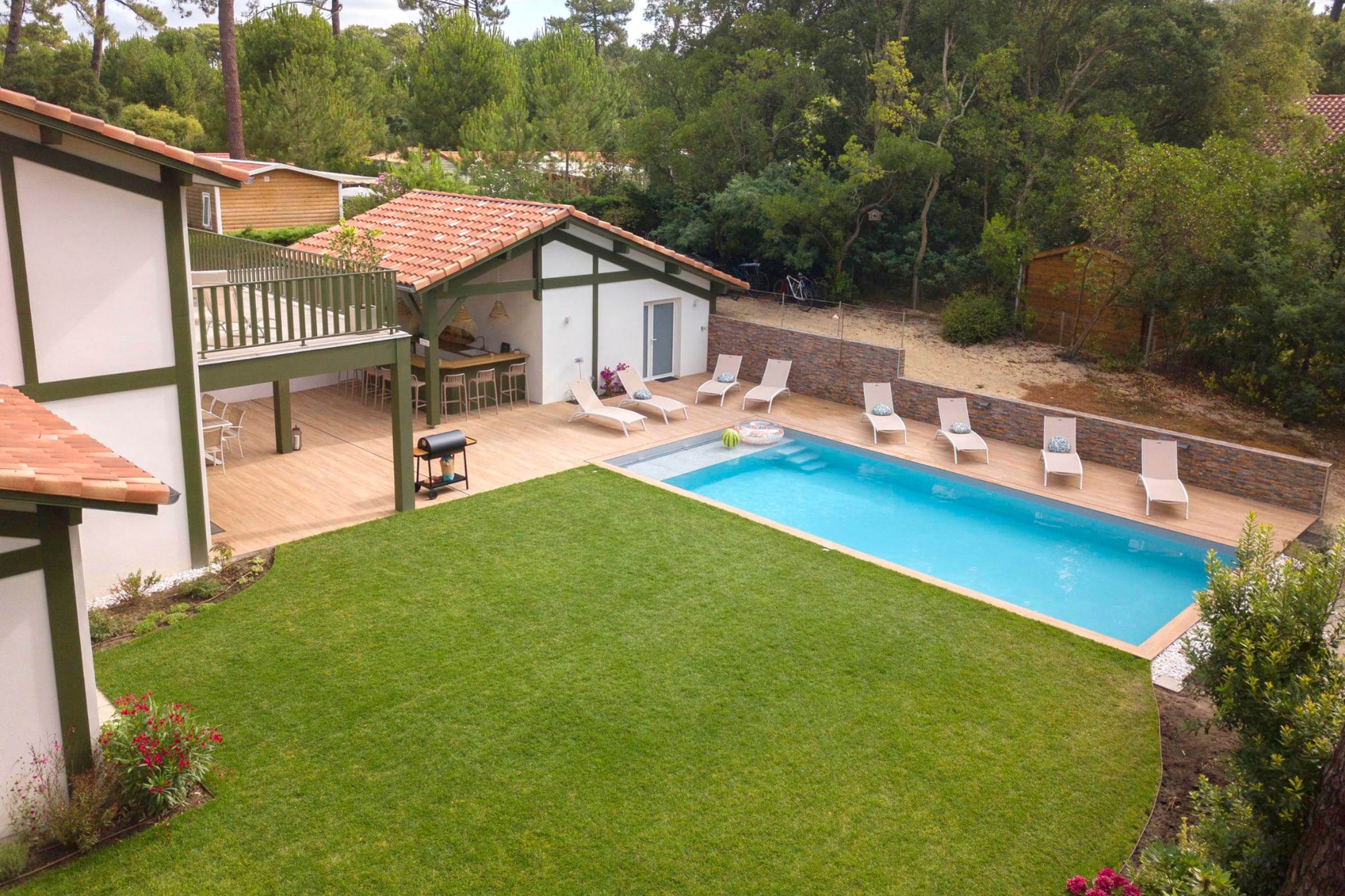 - a 10m x 4.5m heated private swimming pool with sun loungers and outdoor shower,