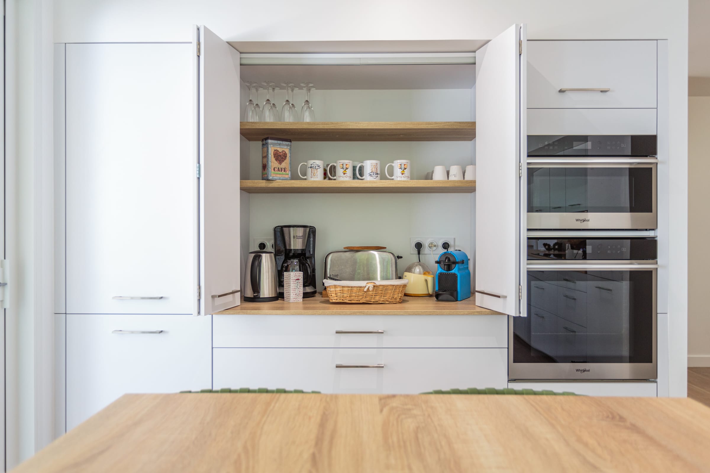 - a fully-equipped open kitchen (coffee machine, ice maker, kettle, oven, microwave, hob, dishwasher, fridge, freezer),