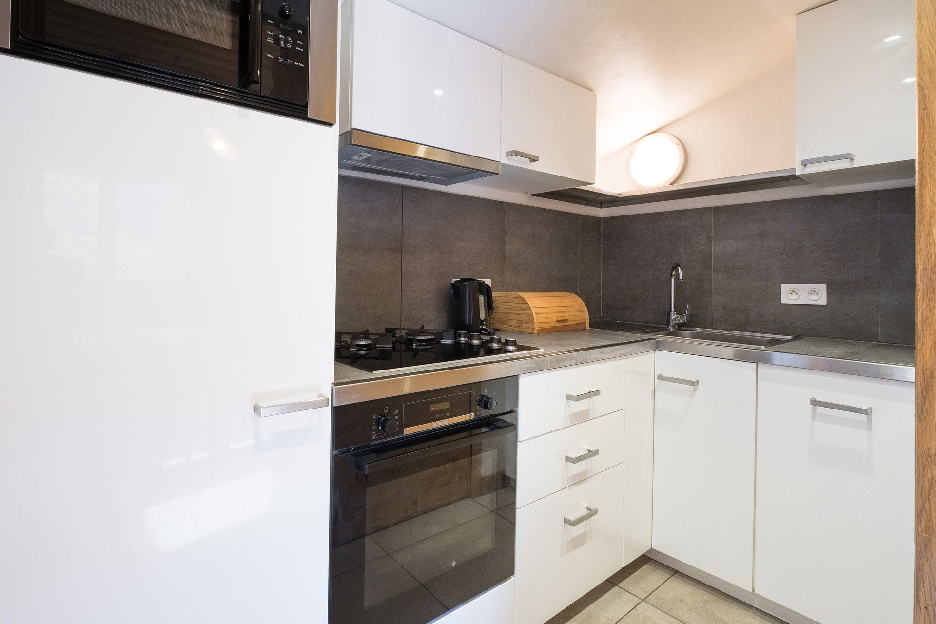 - Fully equipped kitchen: gas and electric hob, oven, microwave, dishwasher,