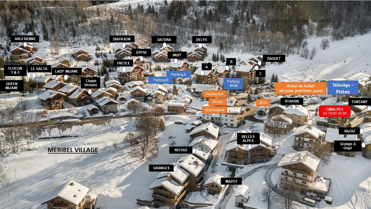 79m² chalet equipped for 8 people with 4 bedrooms, located in Méribel Village. South facing.