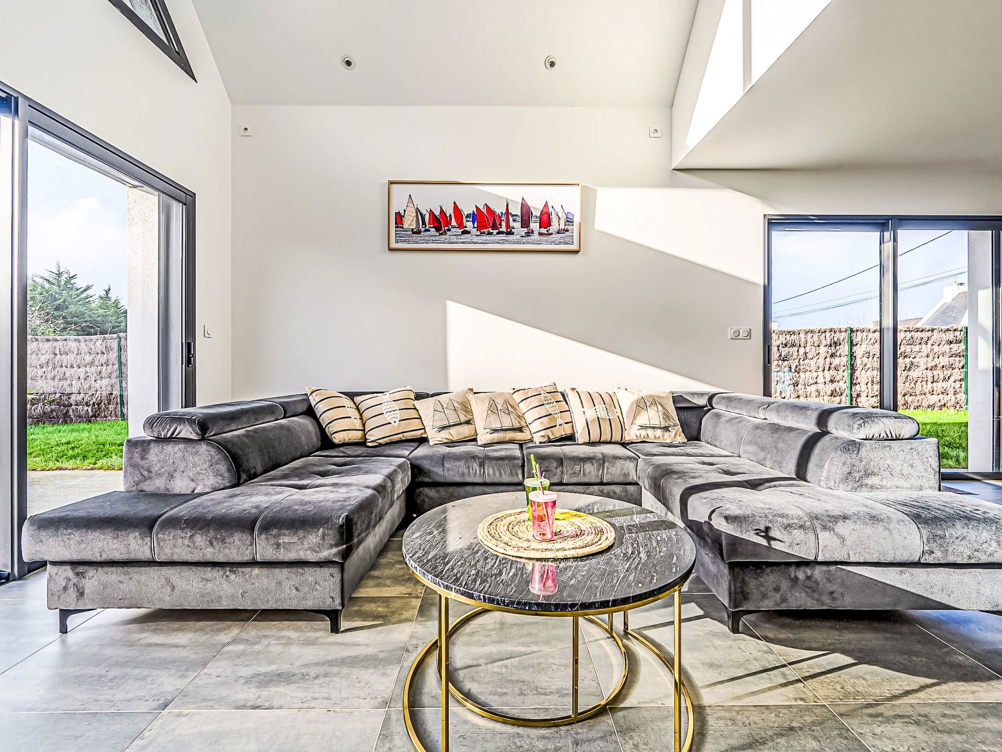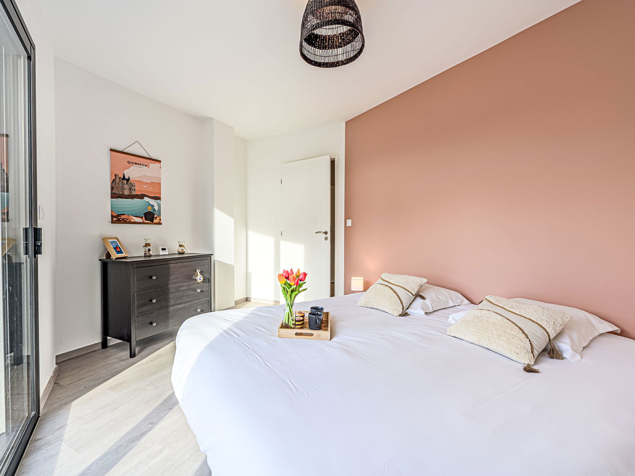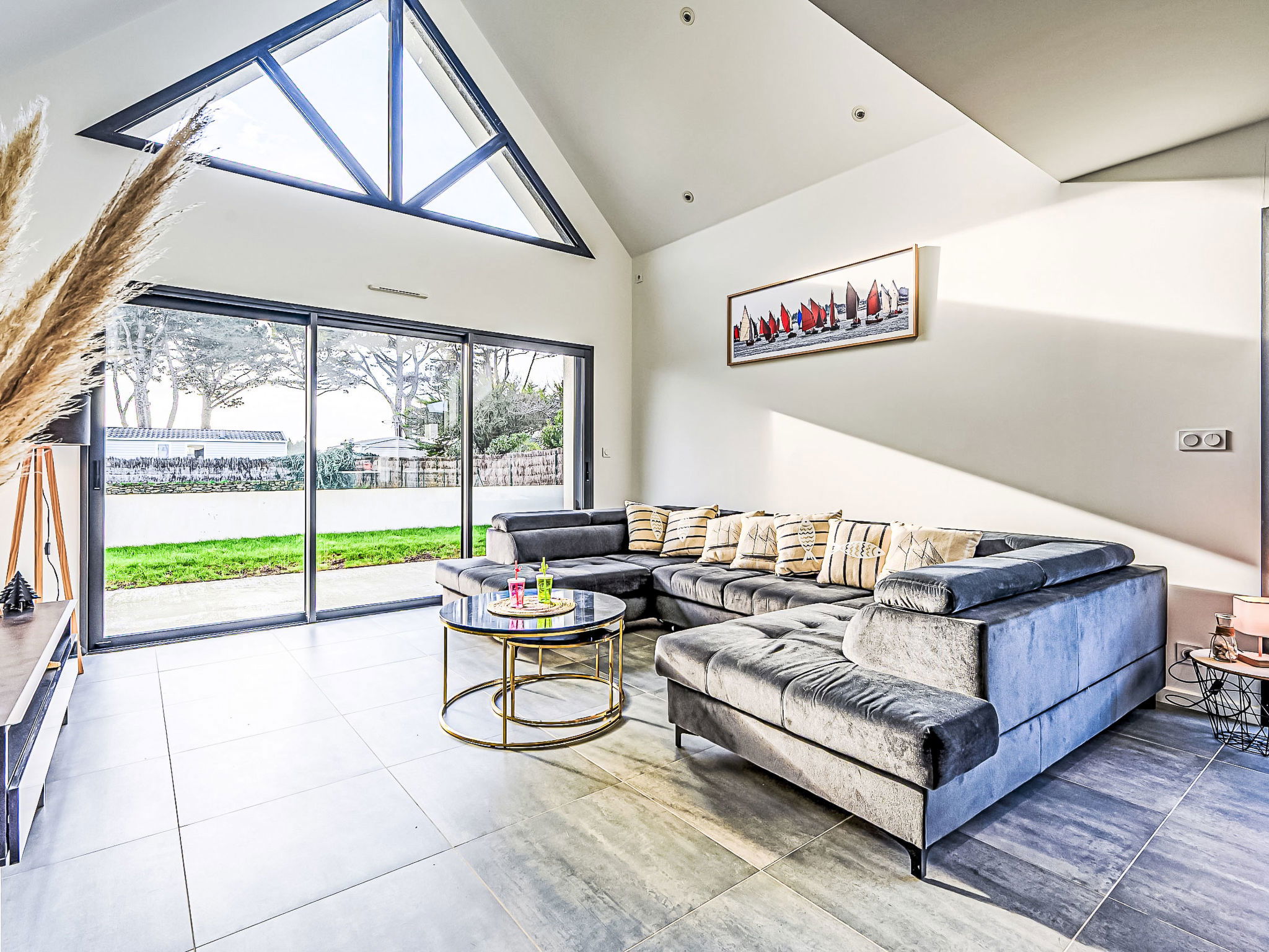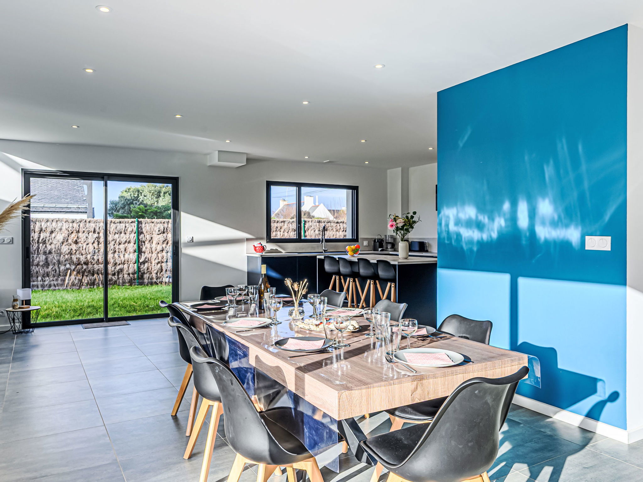 St Pierre Quiberon 4 km from Quiberon: Beautiful single-family house "Les Voiles", built in 2023. In the resort 1 km from the centre of Saint Pierre de Quiberon, 600 m from the sea, 600 m from the beach. Private: well-kept garden 300 m2 (not fenced) lawn, parking on the premises. Shop 2 km, supermarket 3 km, restaurant 2 km, bus stop 2.5 km, sandy beach "Le Rohu" 600 m, outdoor swimming pool 3 km. Golf course (18 hole) 18 km, surf school 6 km, sailing school 200 m, tennis 2 km, riding stable 2 km. Nearby attractions: Presqu'ile de Quiberon, Belle ile en Mer, Houat, Hoedic, Carnac et les Alignments 12 km, La Trinité sur Mer 16 km, Vannes 35 km, Lorient 55 km. The keys‘ handover takes place by the agency in Quiberon, 3 km.