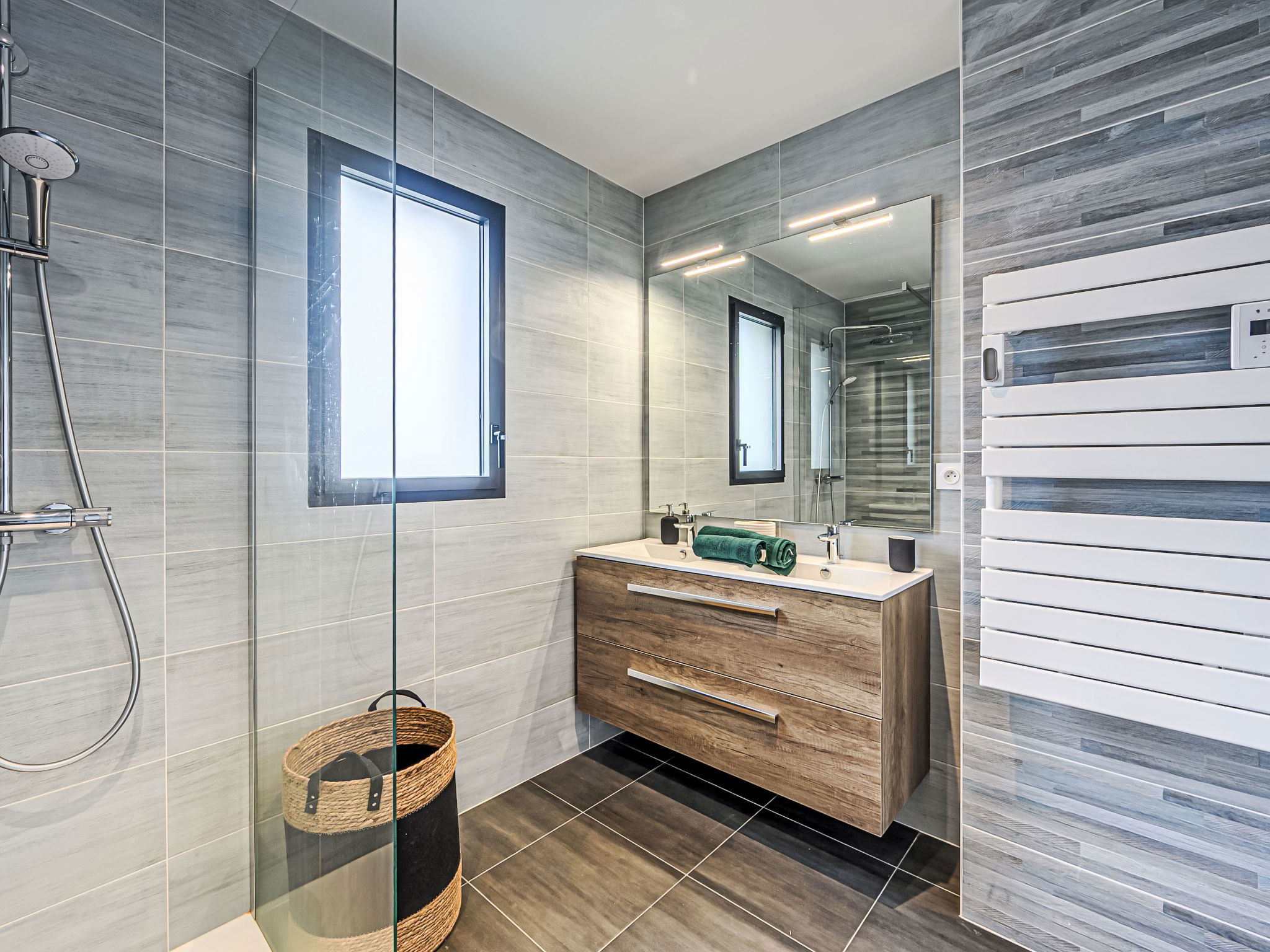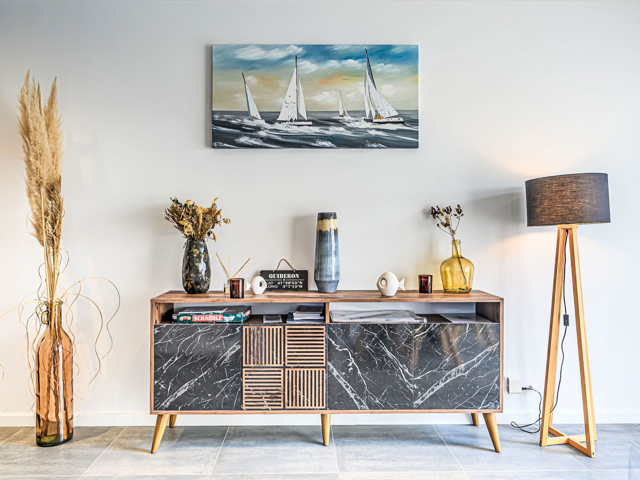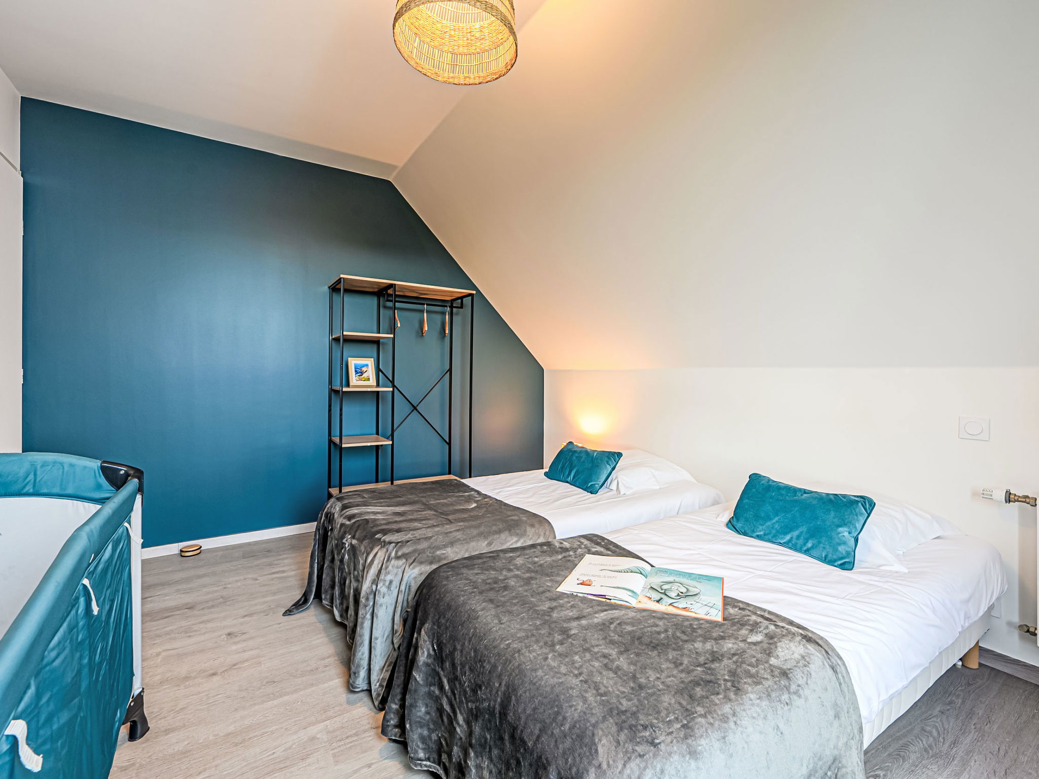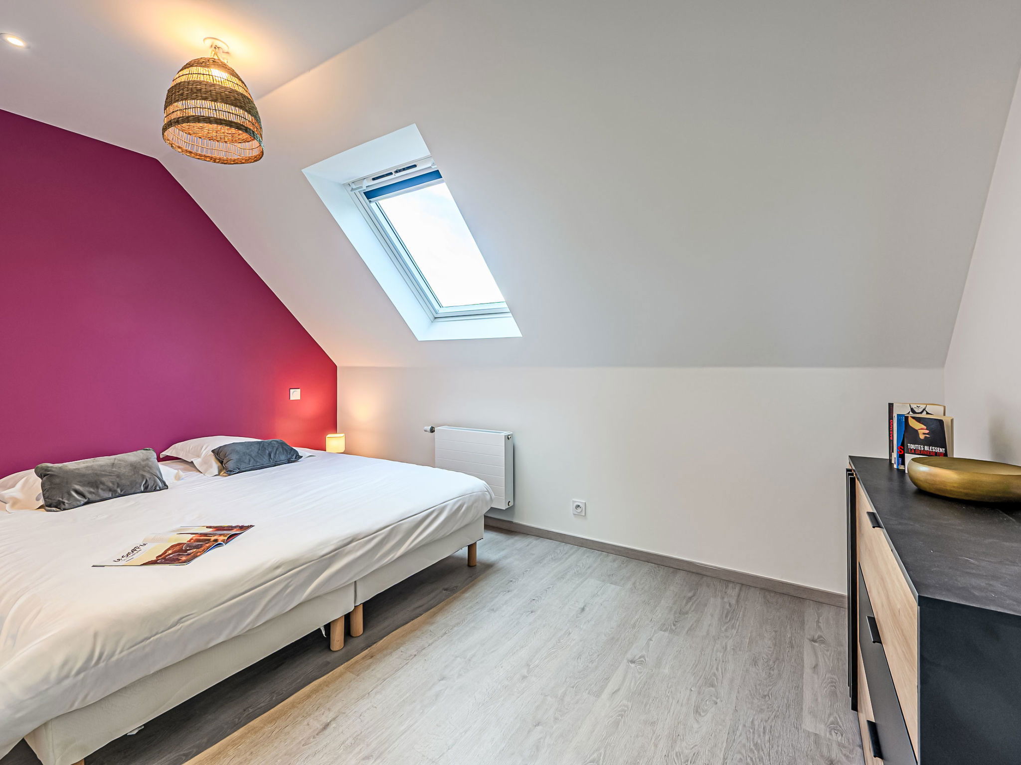 St Pierre Quiberon 4 km from Quiberon: Beautiful single-family house "Les Voiles", built in 2023. In the resort 1 km from the centre of Saint Pierre de Quiberon, 600 m from the sea, 600 m from the beach. Private: well-kept garden 300 m2 (not fenced) lawn, parking on the premises. Shop 2 km, supermarket 3 km, restaurant 2 km, bus stop 2.5 km, sandy beach "Le Rohu" 600 m, outdoor swimming pool 3 km. Golf course (18 hole) 18 km, surf school 6 km, sailing school 200 m, tennis 2 km, riding stable 2 km. Nearby attractions: Presqu'ile de Quiberon, Belle ile en Mer, Houat, Hoedic, Carnac et les Alignments 12 km, La Trinité sur Mer 16 km, Vannes 35 km, Lorient 55 km. The keys‘ handover takes place by the agency in Quiberon, 3 km.