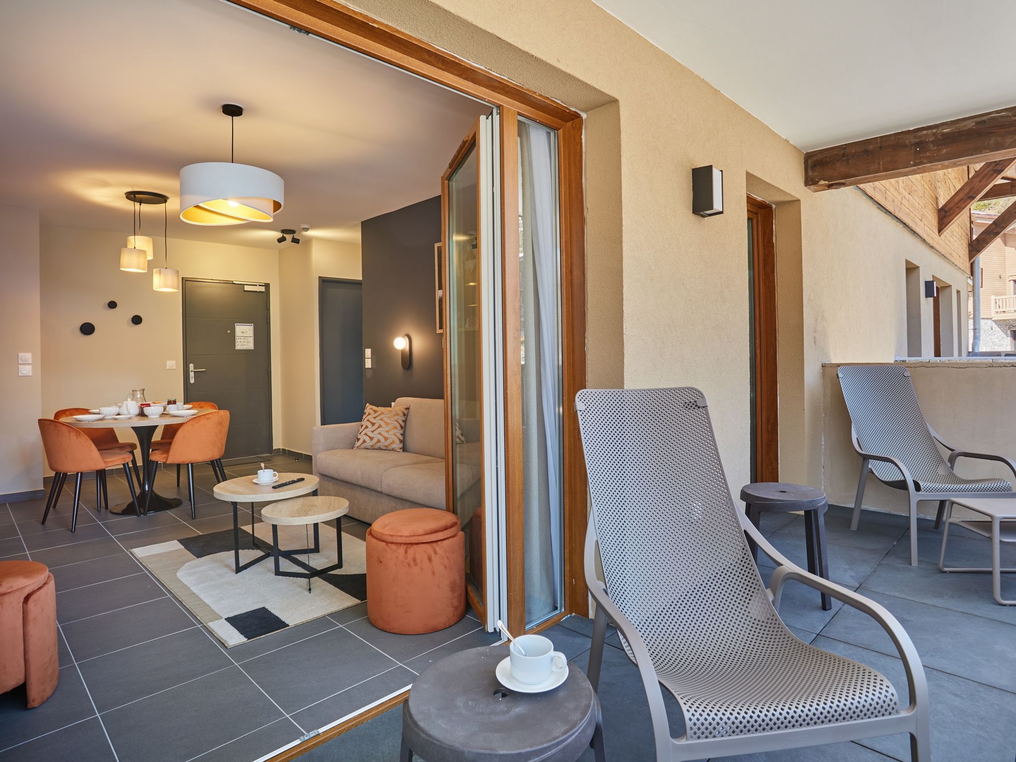 "Odalys Collection Le Mont d'Auron", 2-room apartment 31 m2. Modern and tasteful furnishings: living/sleeping room with 1 pull-out bed (2 pers.), dining table and TV (flat screen). 1 room with 2 sleeping facilities. Small, open kitchen (dishwasher, 4 ceramic glass hob hotplates, toaster, kettle, microwave, electric coffee machine). Sep. WC, bath or shower. Electric heating. Balcony or terrace. Beautiful view of the mountains. Facilities: children's high chair, baby cot, hair dryer. Internet (WiFi, free). Please note: maximum 1 pet/ dog allowed. Smoke alarm.