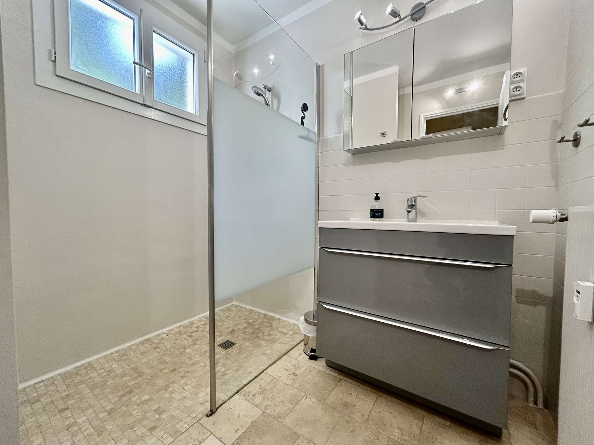 This three-room rental is arranged as follows: a bedroom with two single beds (which can make a 160 cm double bed) and opening onto a south-facing balcony, a bathroom, separate toilets and a double living room with balcony facing south. Part of the living room can be closed by a sliding door and offers a sleeping area equipped with a 140 rapido sofa for two people and bunk beds. The second part includes a living room with a sofa, a television, a dining area and a wood-burning stove.