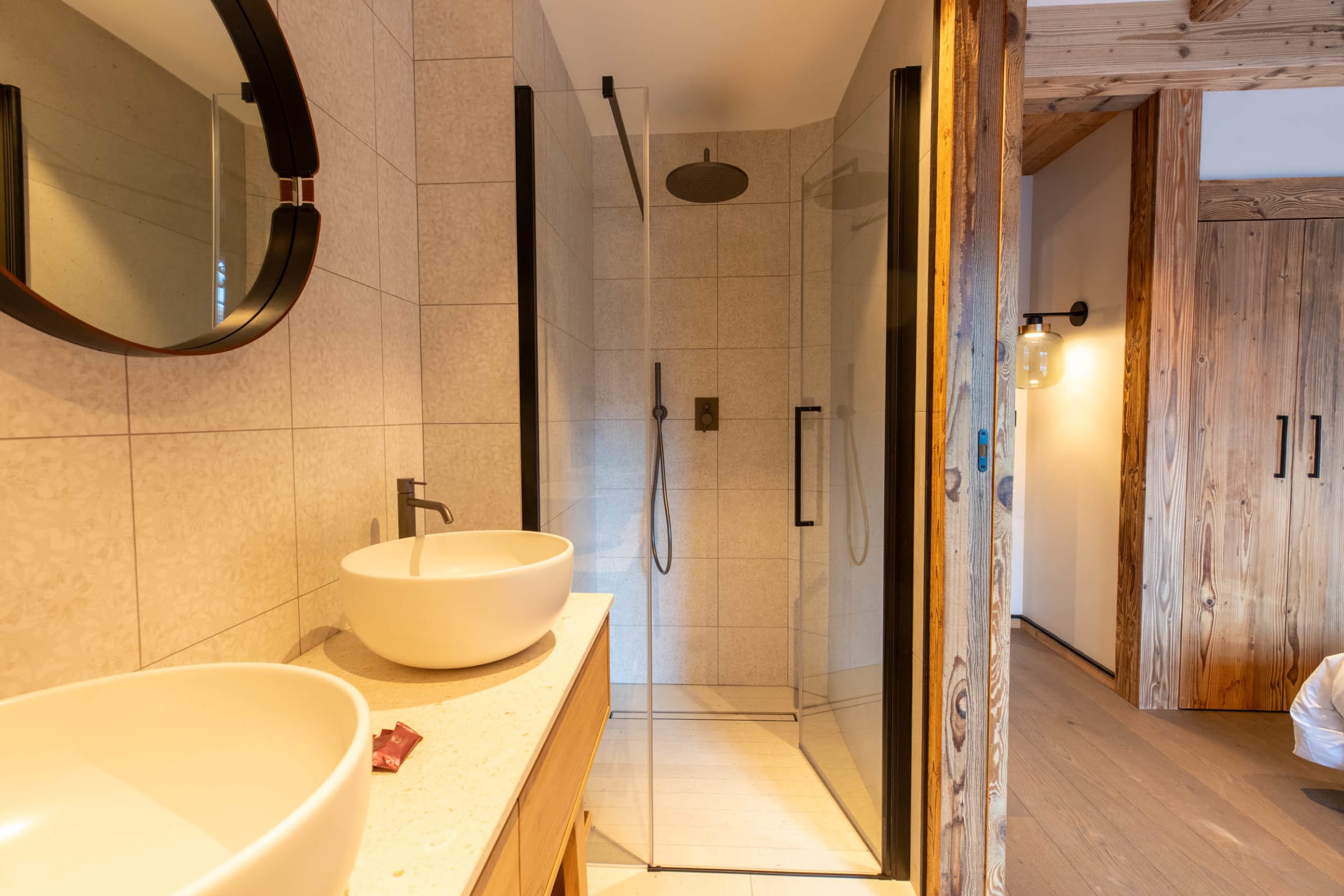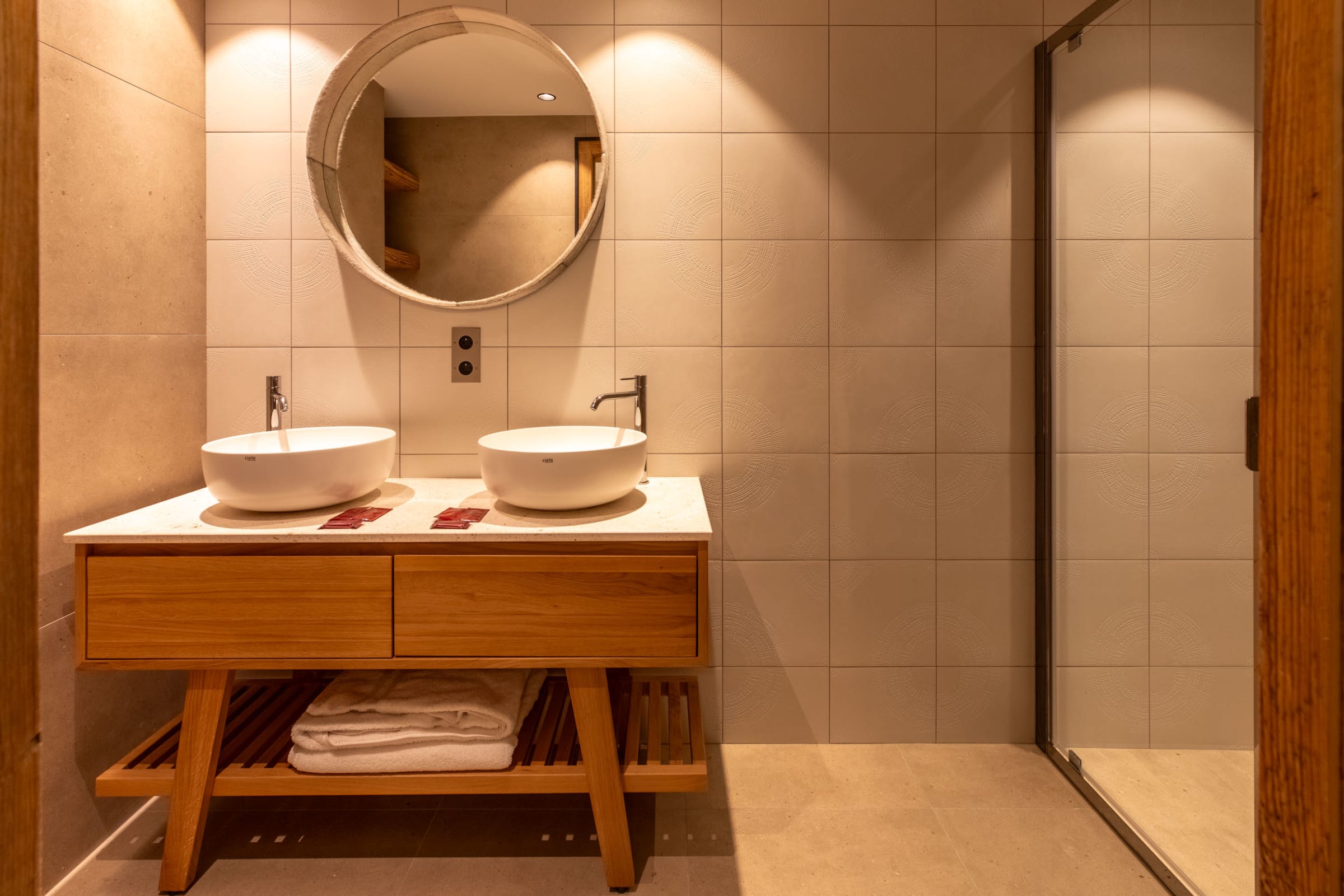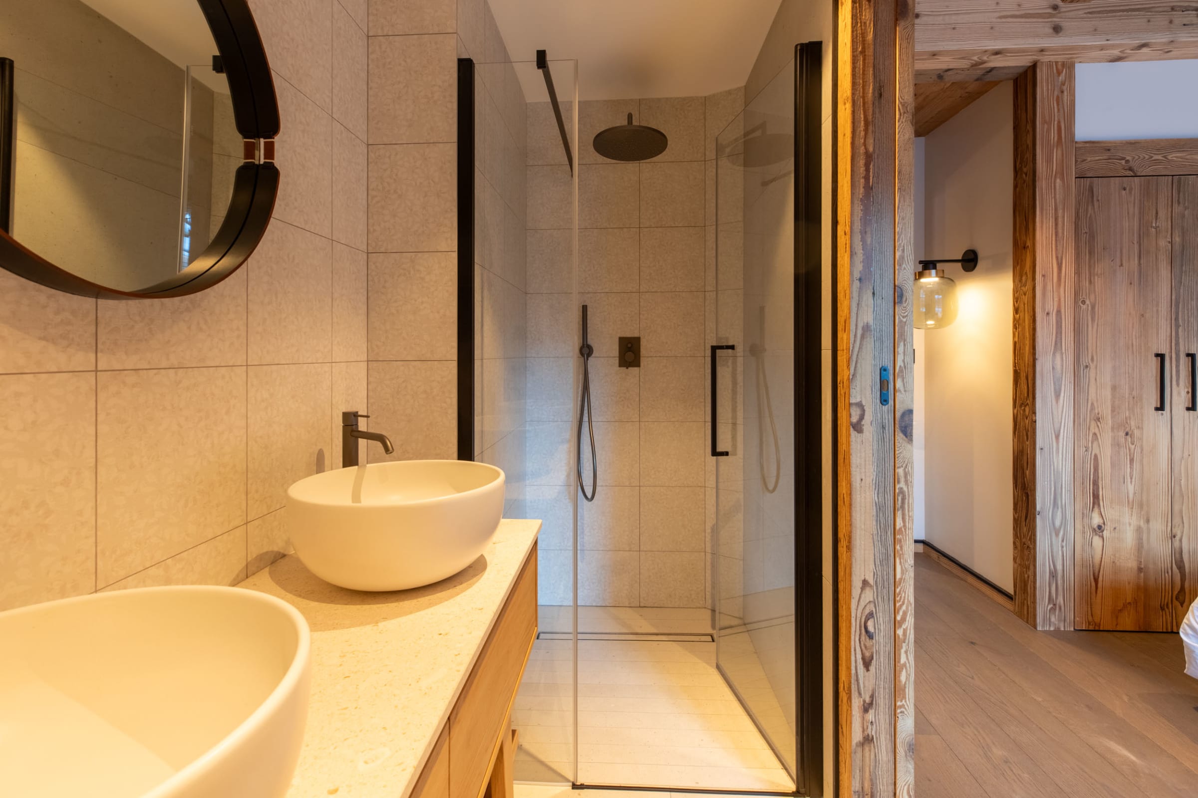 3 Bathrooms: each of the bathrooms is equipped with walk-in showers and modern finishes. Two bathrooms are attached to the main double bedrooms for added privacy.