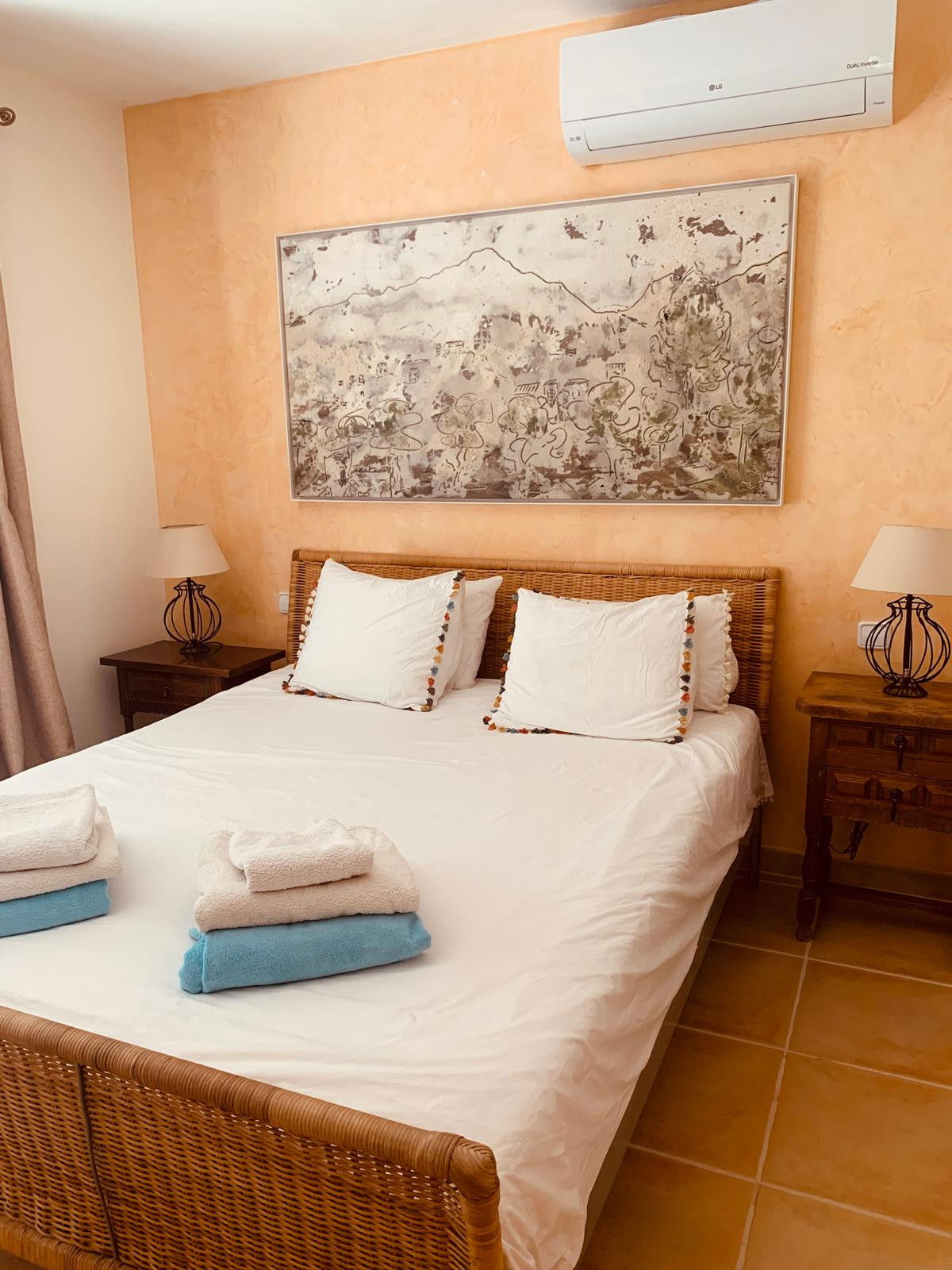 This spacious and bright apartment is ideal for a relaxing holiday with family or friends. Located in a peaceful area, perfect for rest and relaxation, this sunny apartment has large windows that flood all spaces with natural light and reveal the wonderful views of the Albufera. It has a large garden and several terraces to enjoy the outdoors and the sun. The master bedroom has a double bed and a modern en-suite bathroom with a bathtub and shower. The second bedroom is equipped with two single beds, ideal for children or guests. The living-dining room is spacious and welcoming, perfect for moments of conviviality and rest, and the kitchen is fully equipped to prepare delicious meals. It also has a second bathroom with a shower for the convenience of guests. The apartment has air conditioning in all bedrooms and in the living room, guaranteeing a fresh and comfortable environment at all times. In addition, you can enjoy a communal pool, perfect for relaxing and having fun. It is heated from April 15th to June 15th and from September 15th to November 15th.