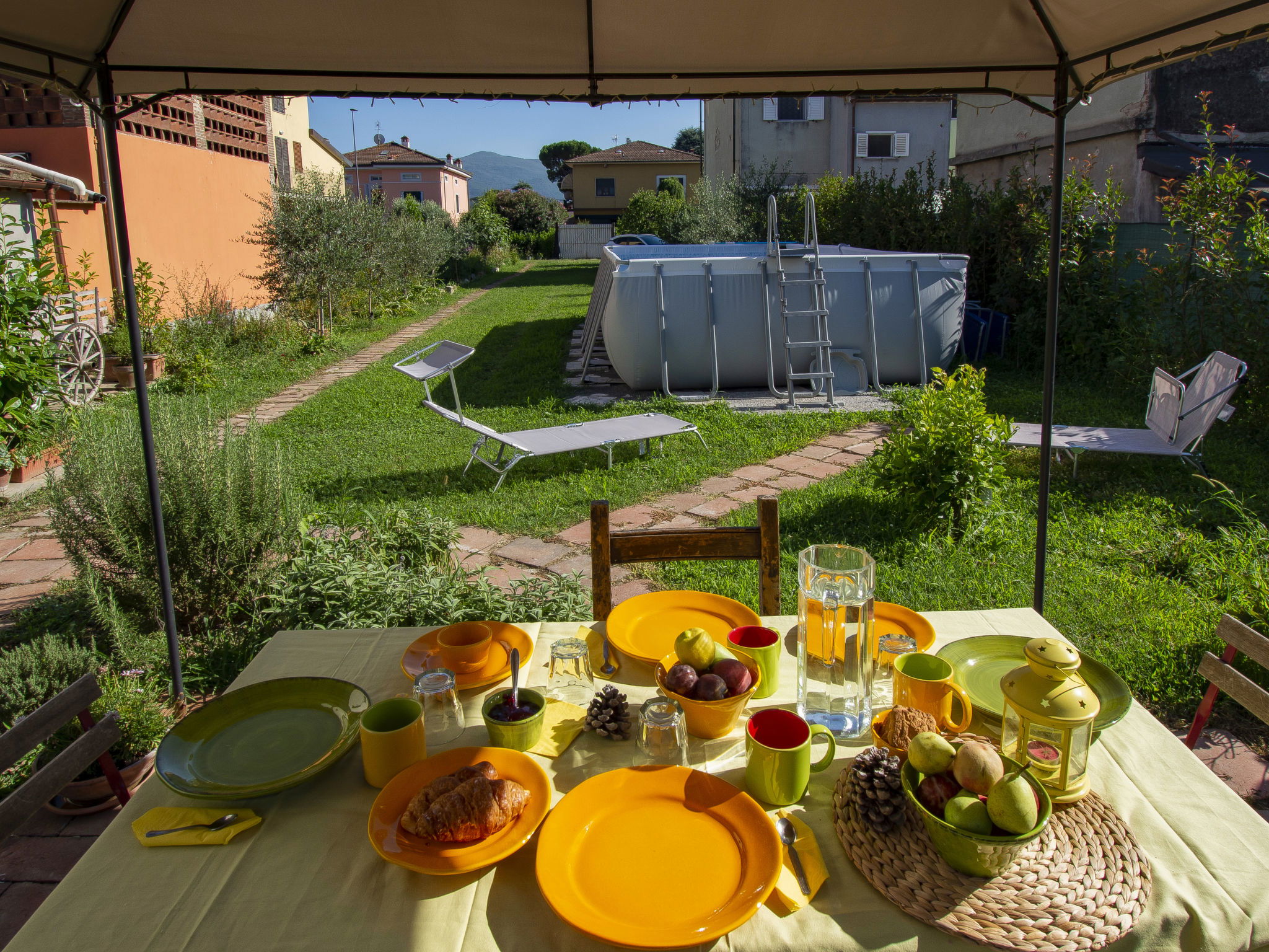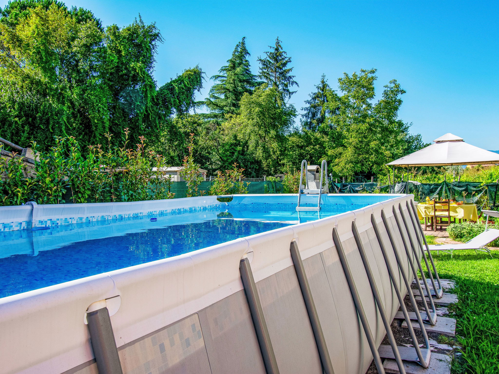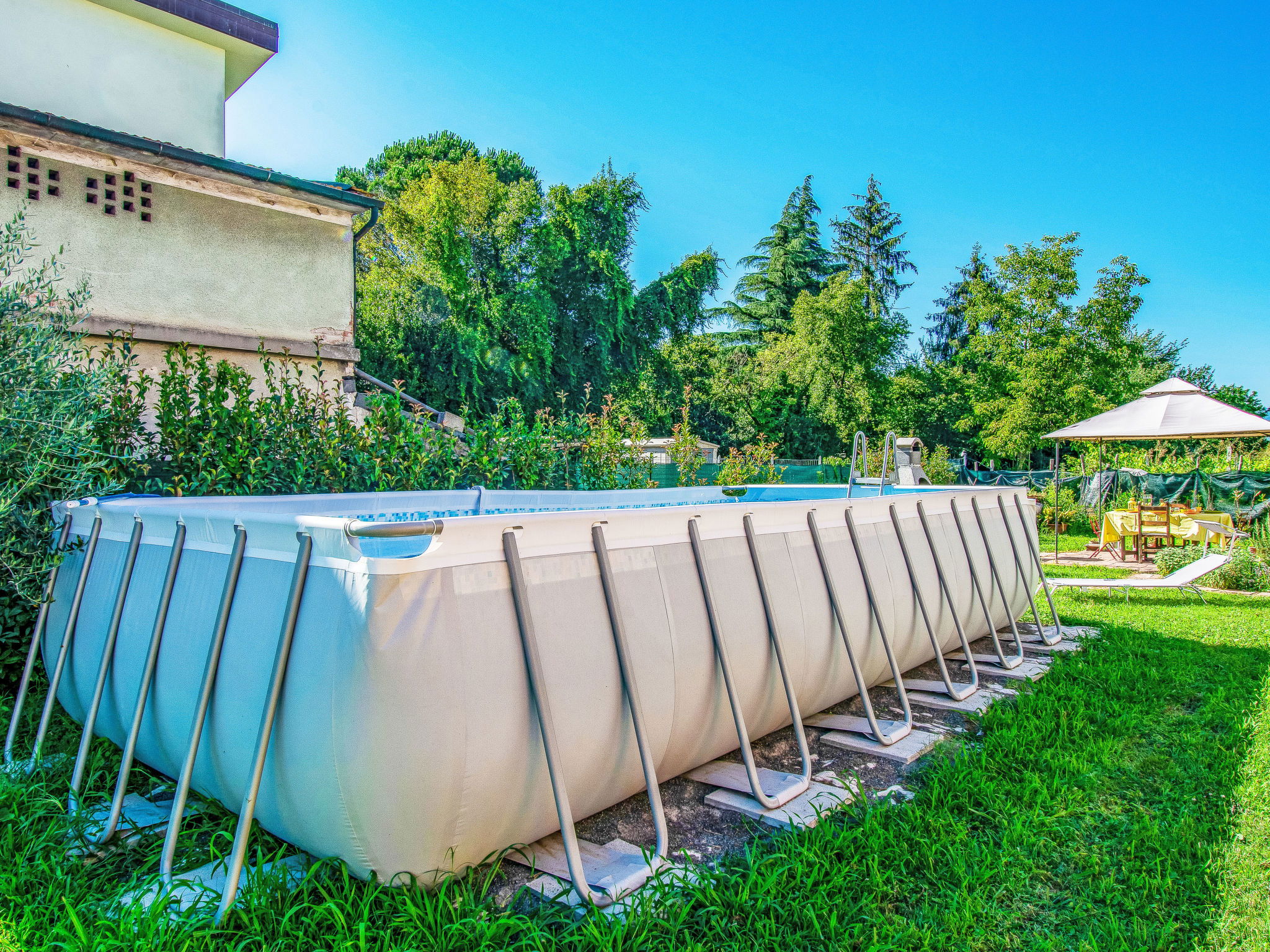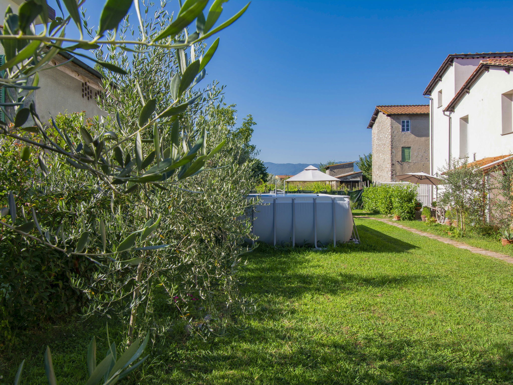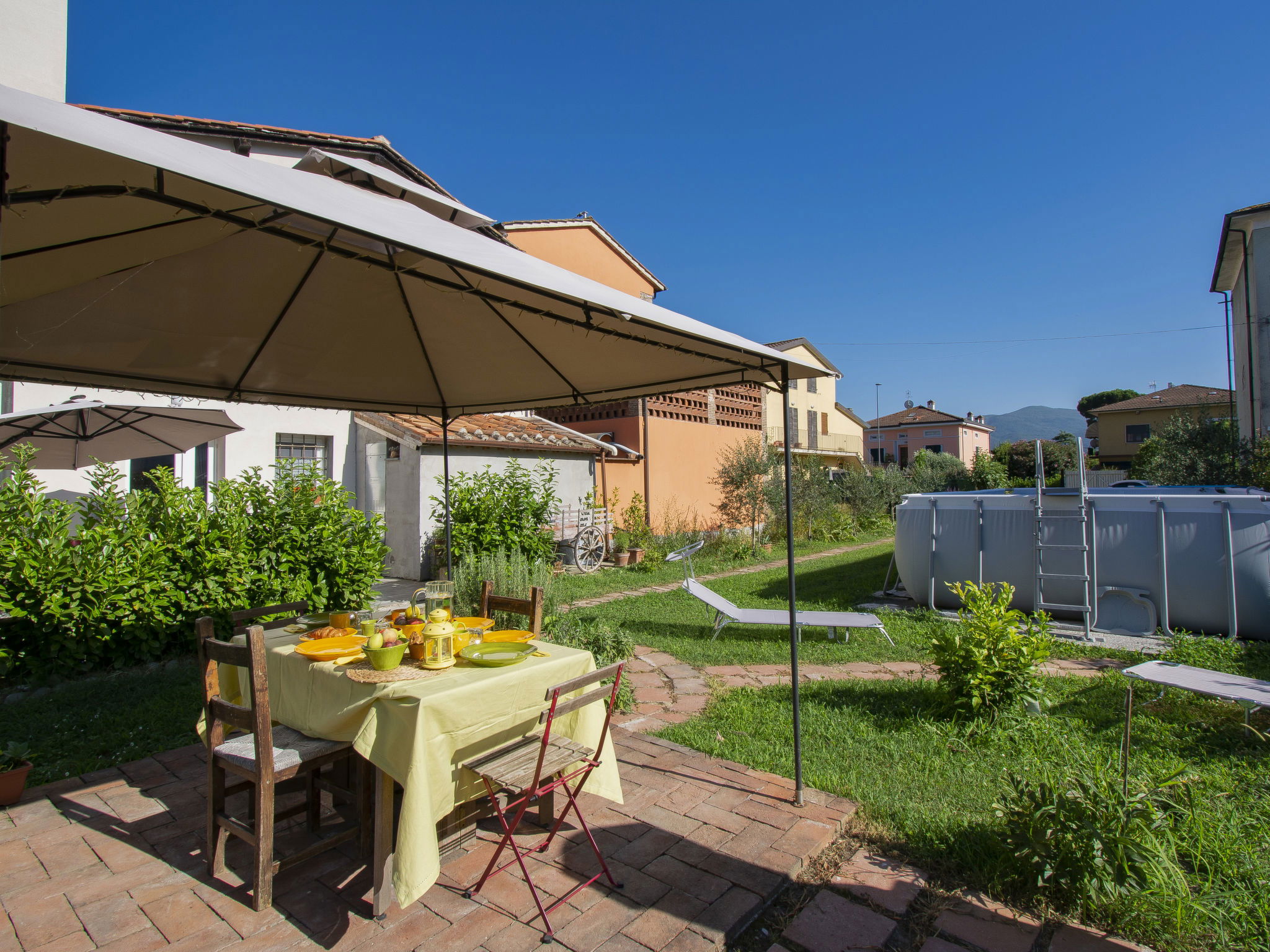 Modern, cosy house detached. In the resort 1.5 km from the centre of Lucca, excellent location: right in the centre but still quiet. Private: large garden 600 m2 (fenced) wildlife garden and flowers, swimming pool (above ground) fenced (7 x 3 m, seasonal availability: 15.May. - 15.Oct.) with internal staircase. Arbour, garden furniture, barbecue. In the house: WiFi, air conditioning, heating available only from 15.Nov. - 15.Apr.. Parking (for 3 cars). Supermarket 50 m, restaurant 100 m, bus stop 150 m, sandy beach "Viareggio" 25 km. Nearby attractions: Lucca 1 km, Pisa 25 km, Firenze 50 km. Please note: baby equipment (included). Owner lives in separate semi-detached house.