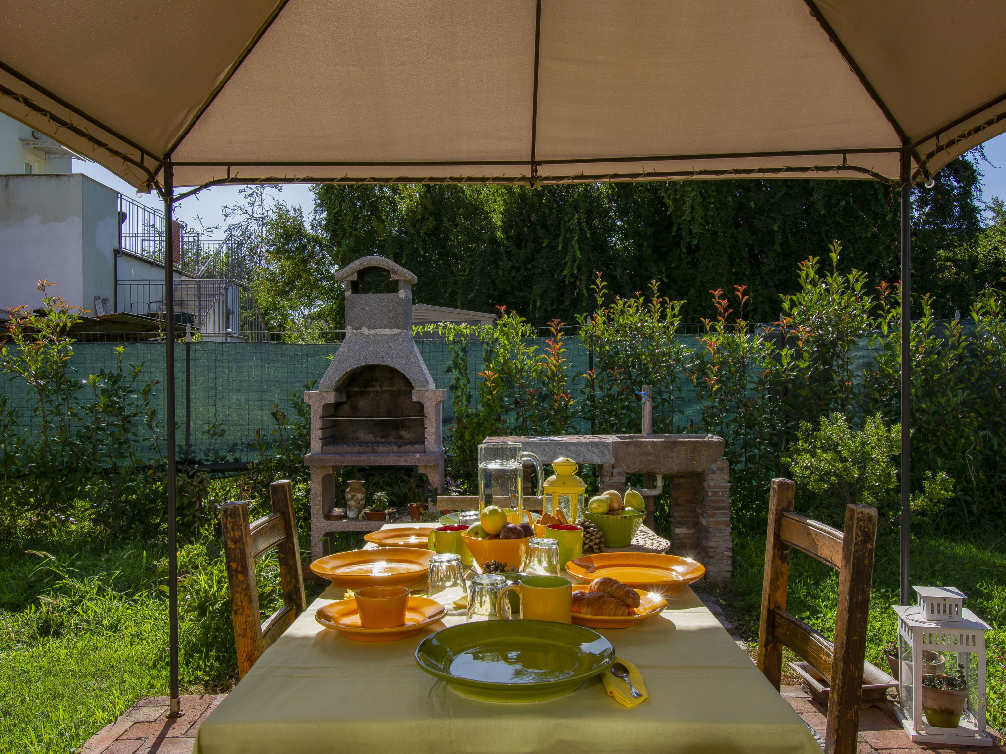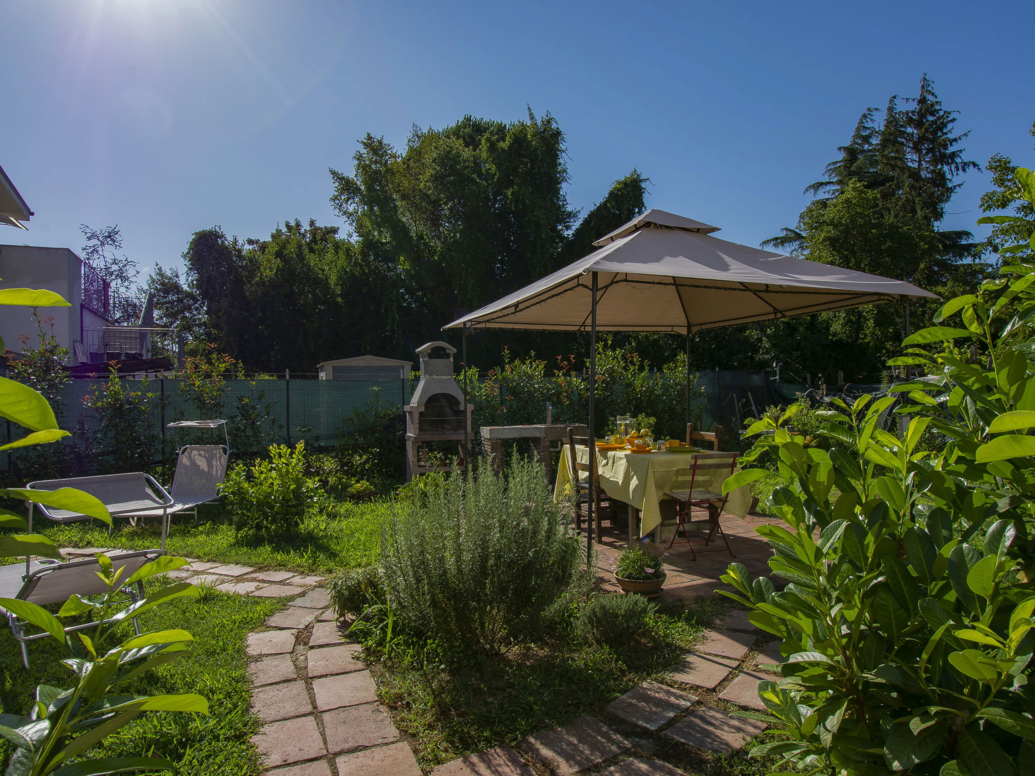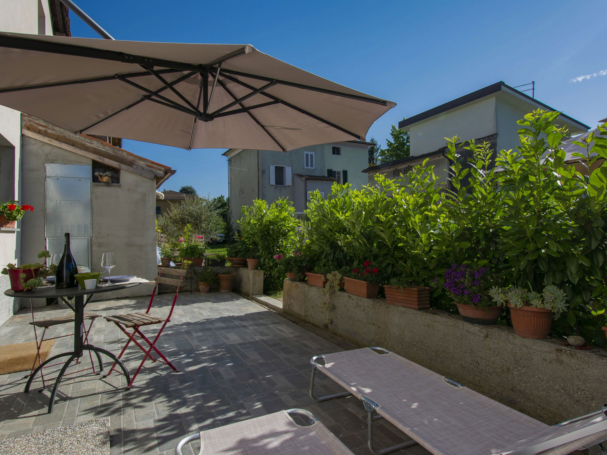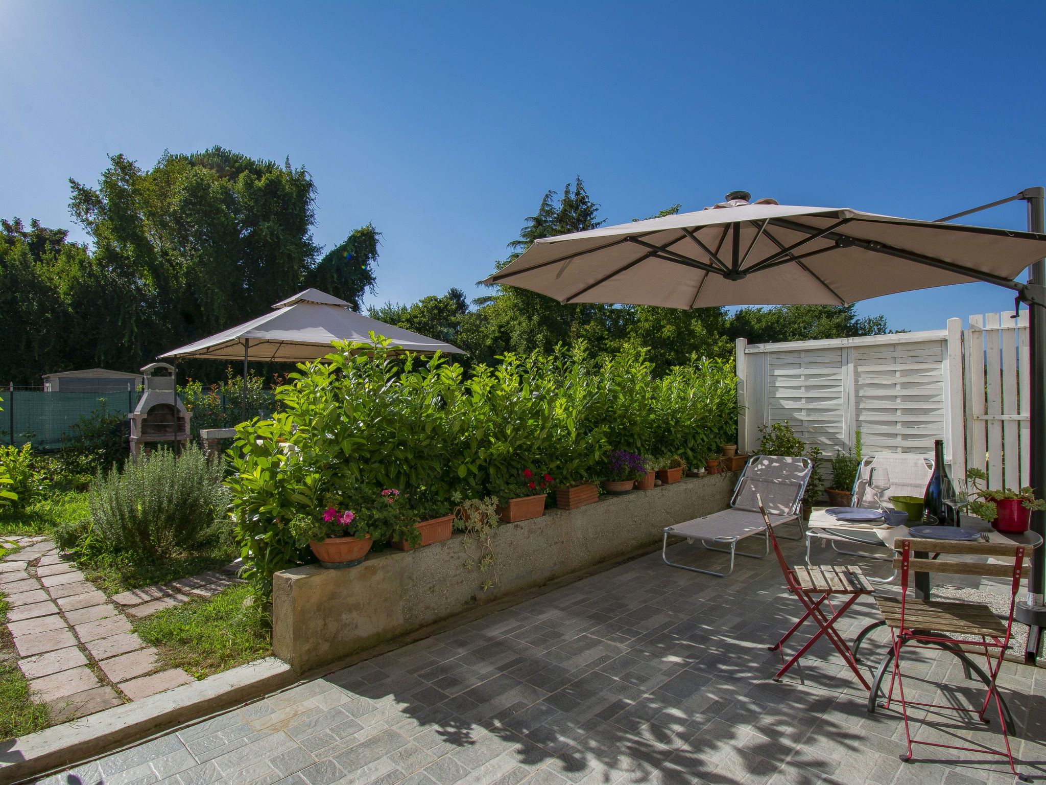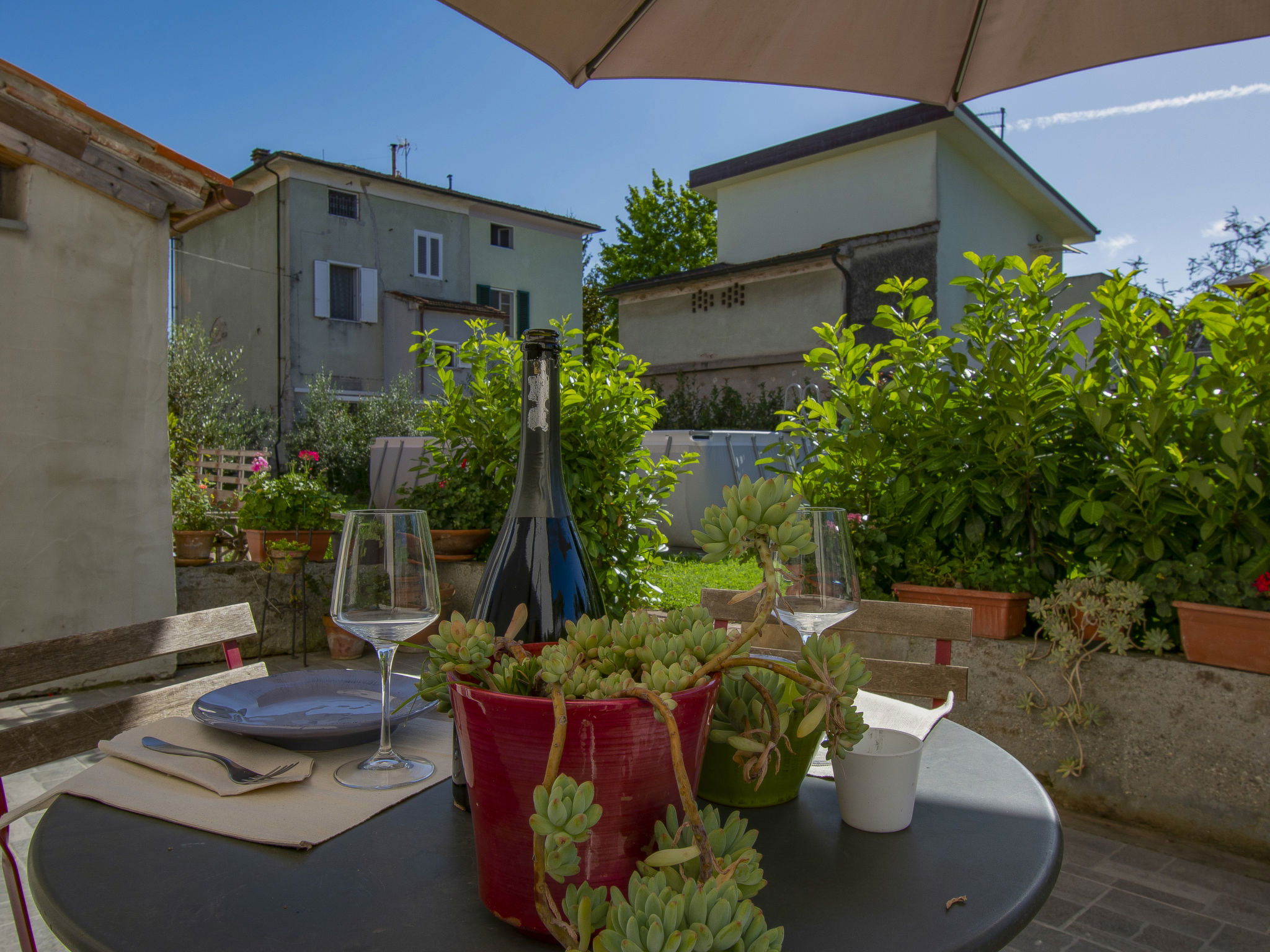 Modern, cosy house detached. In the resort 1.5 km from the centre of Lucca, excellent location: right in the centre but still quiet. Private: large garden 600 m2 (fenced) wildlife garden and flowers, swimming pool (above ground) fenced (7 x 3 m, seasonal availability: 15.May. - 15.Oct.) with internal staircase. Arbour, garden furniture, barbecue. In the house: WiFi, air conditioning, heating available only from 15.Nov. - 15.Apr.. Parking (for 3 cars). Supermarket 50 m, restaurant 100 m, bus stop 150 m, sandy beach "Viareggio" 25 km. Nearby attractions: Lucca 1 km, Pisa 25 km, Firenze 50 km. Please note: baby equipment (included). Owner lives in separate semi-detached house.