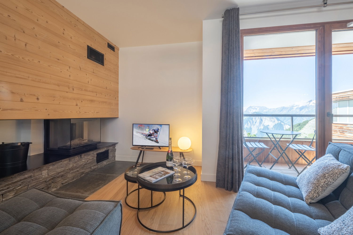Located in the heart of Vieil Alpe, just 400m from the resort center, discover the exceptional Fermes de l'Alpe residence and this beautiful, spacious 99m² duplex apartment for 6 adults and 2 children.