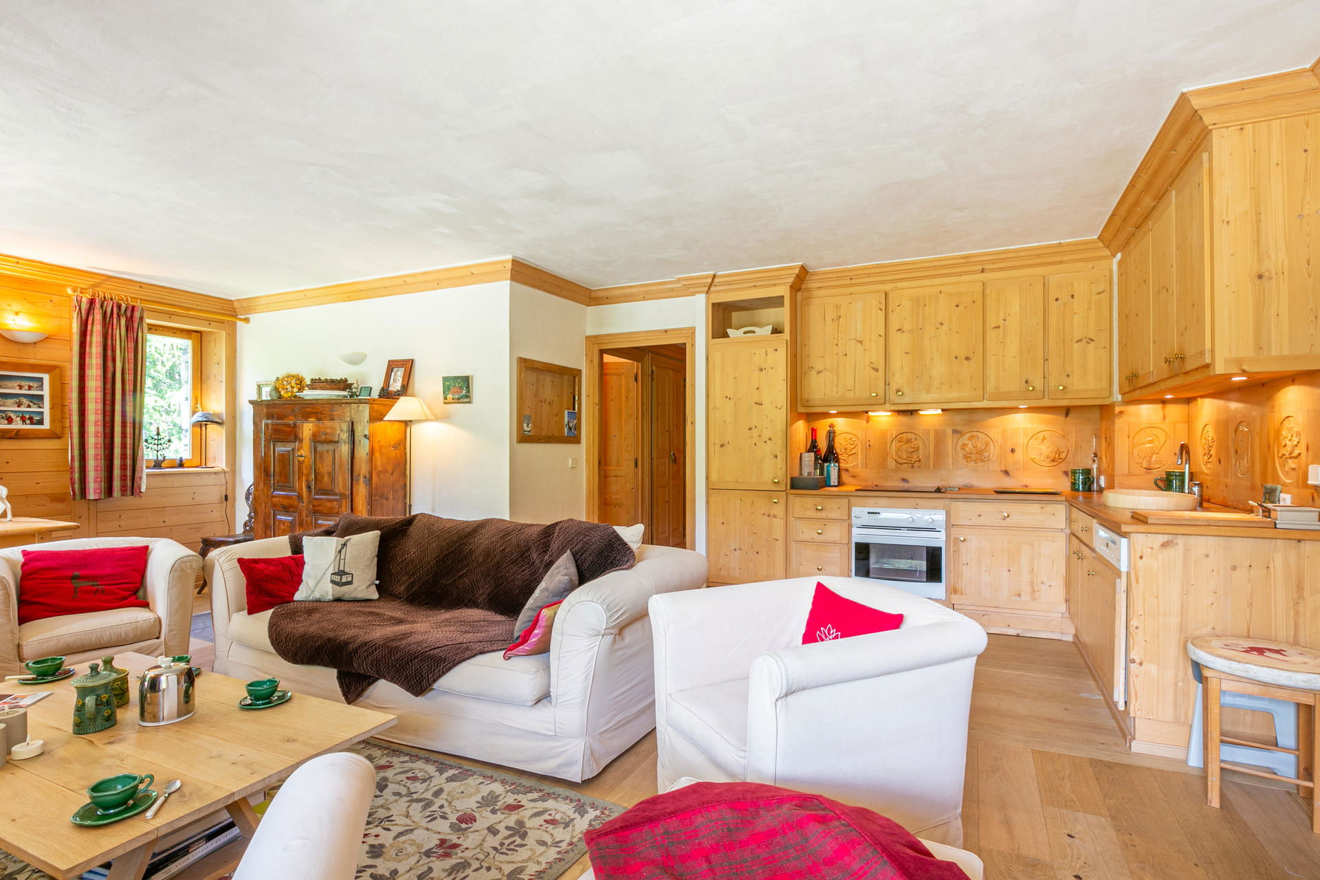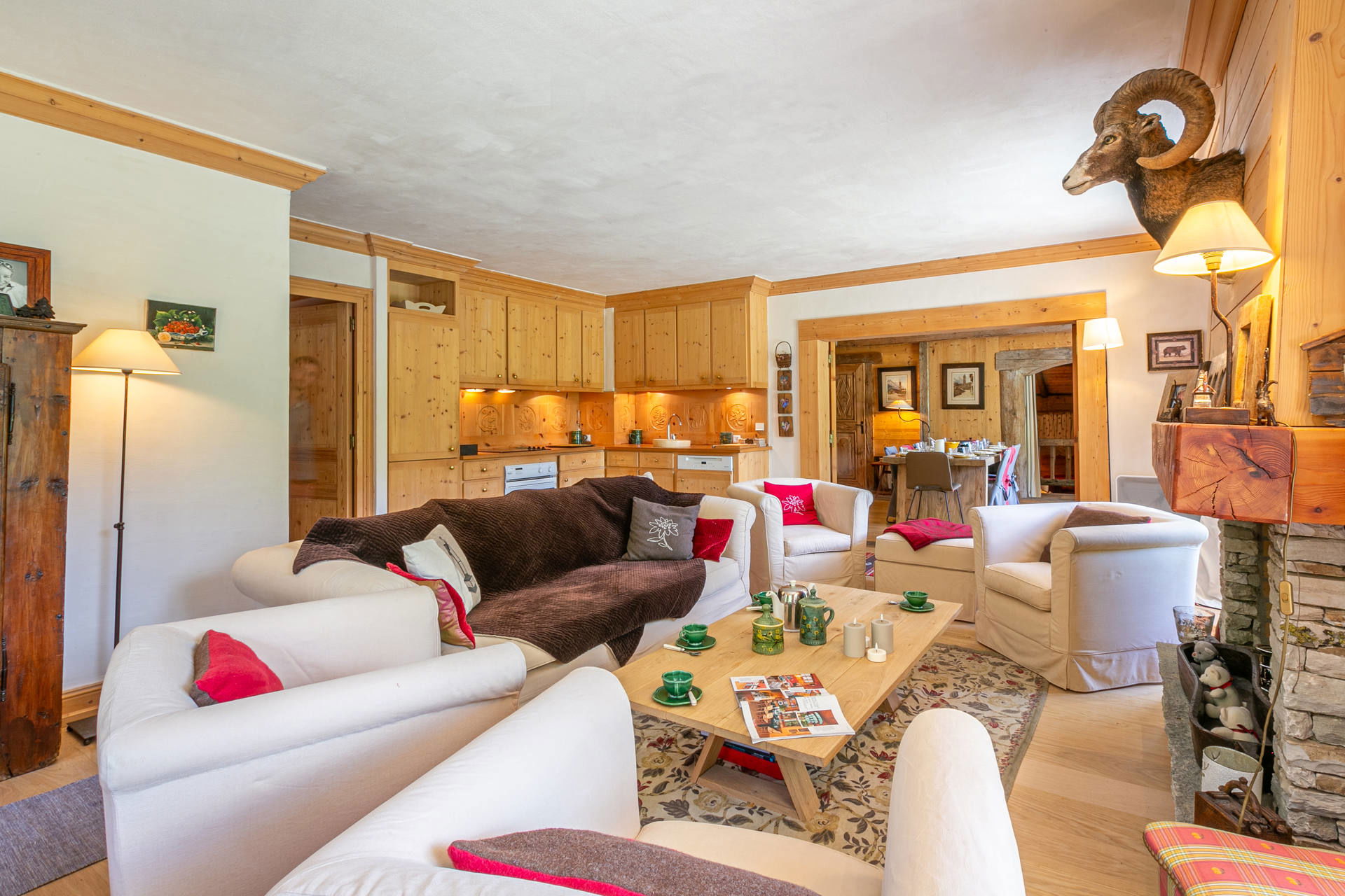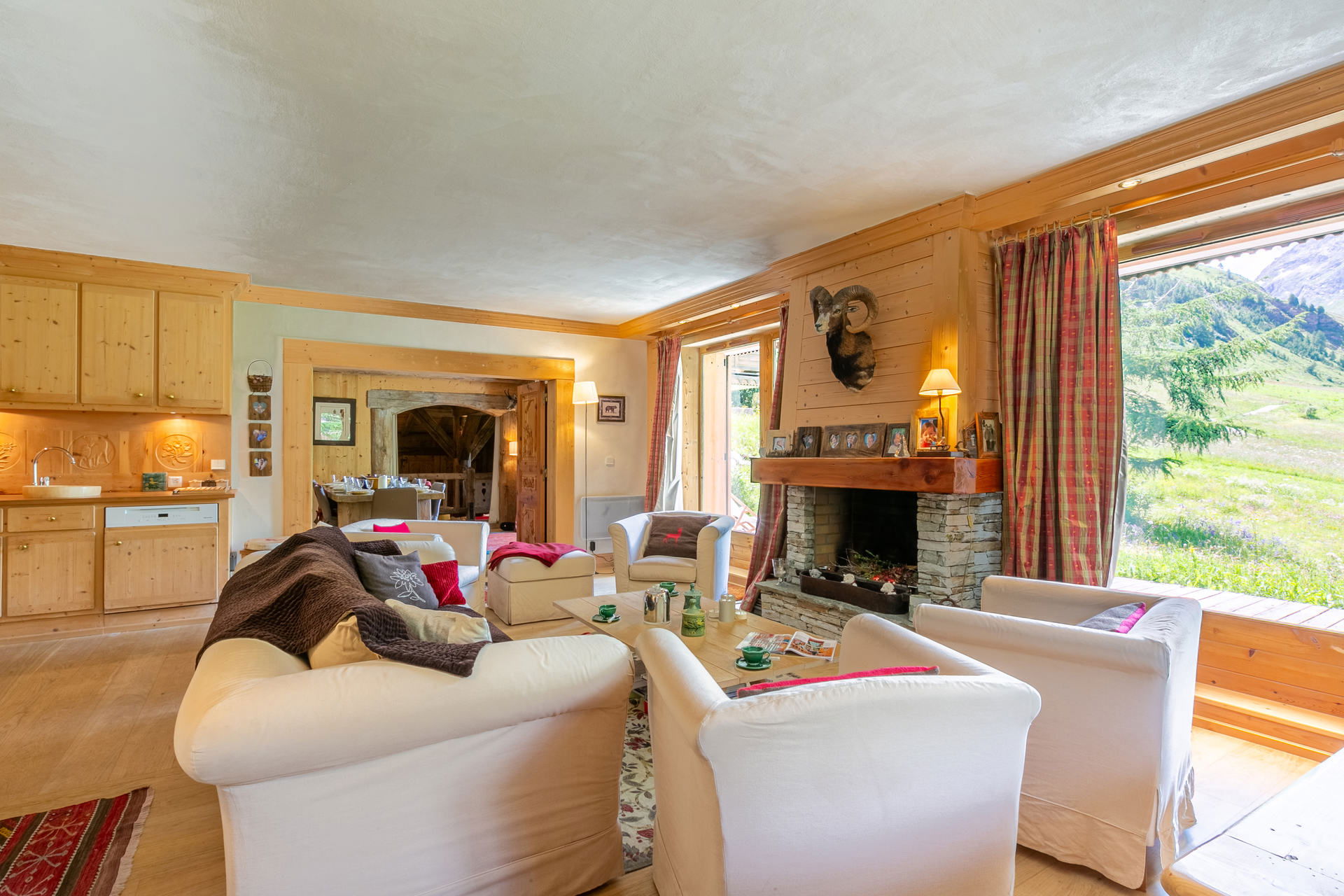 Spacious and light lounge with terrace access and clear view over the slopes and the Manchet