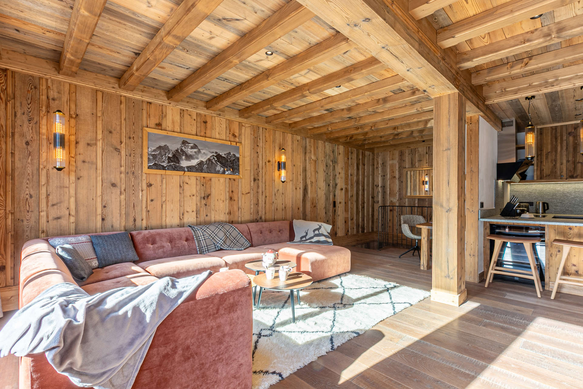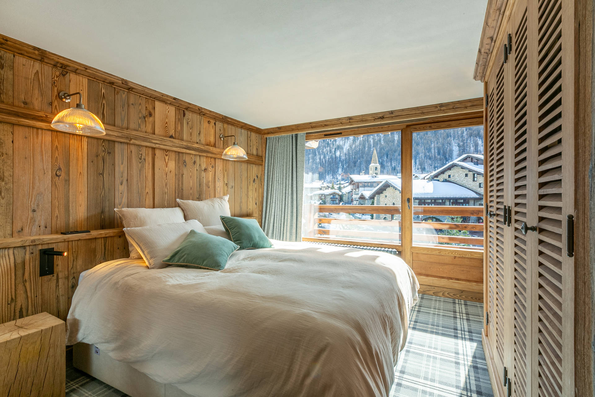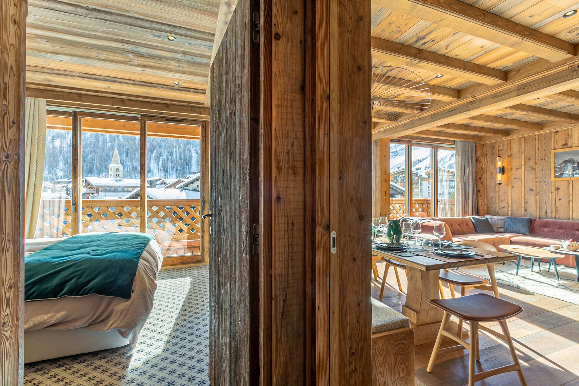 In an old wood style and high quality features with South facing balconies and beautiful views onto the village.