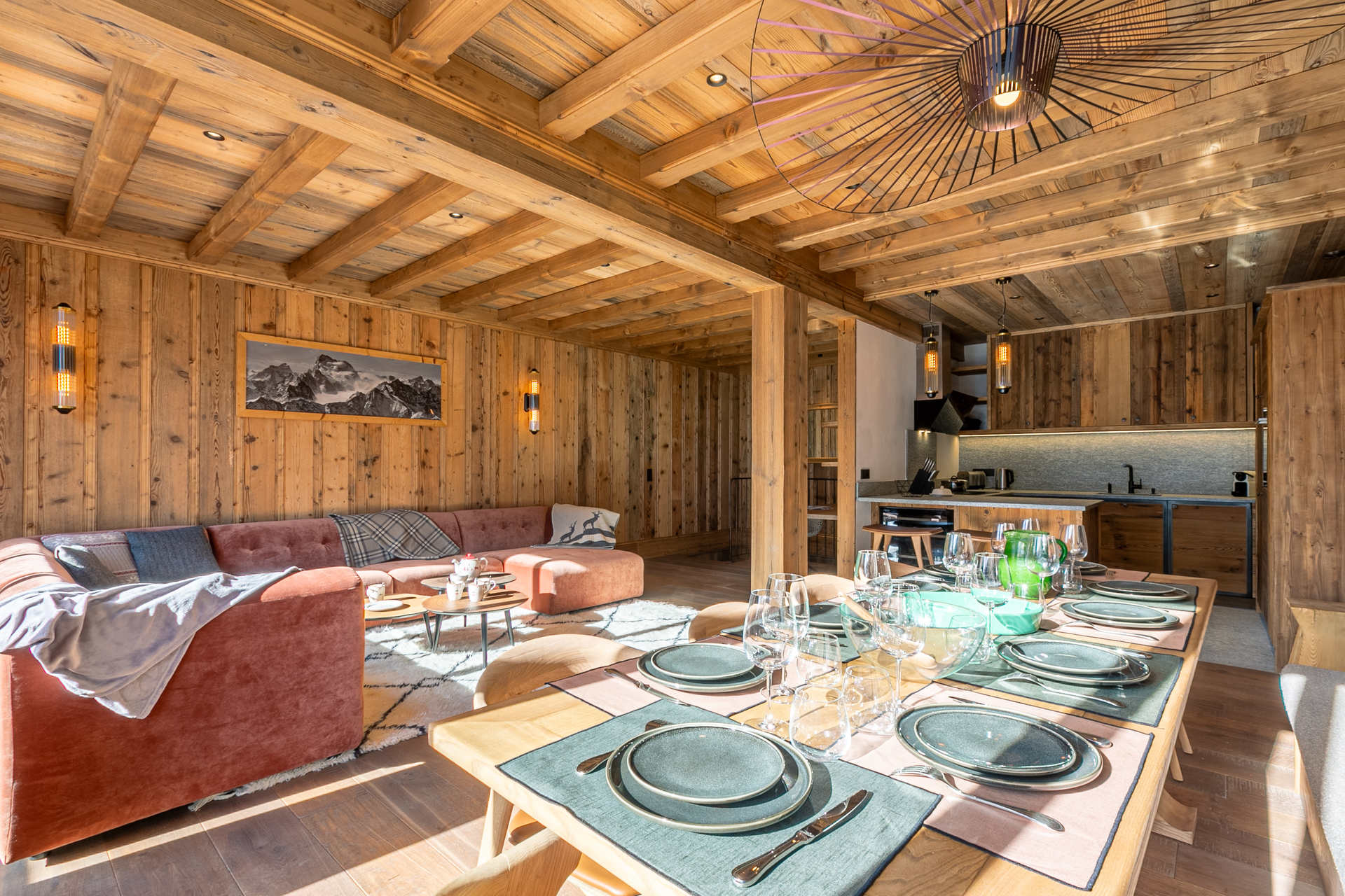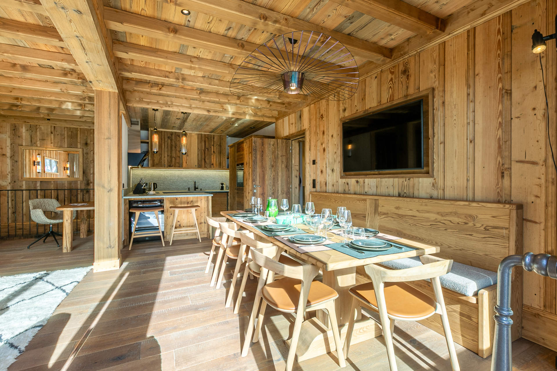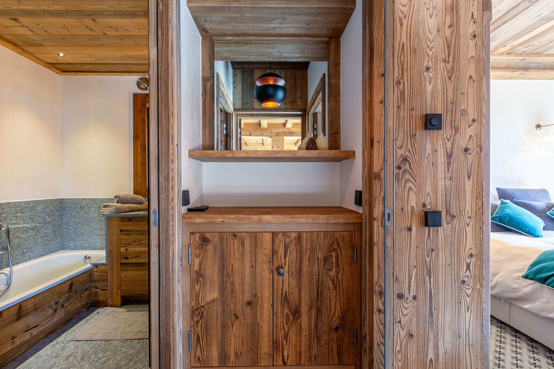 In an old wood style and high quality features with South facing balconies and beautiful views onto the village.
