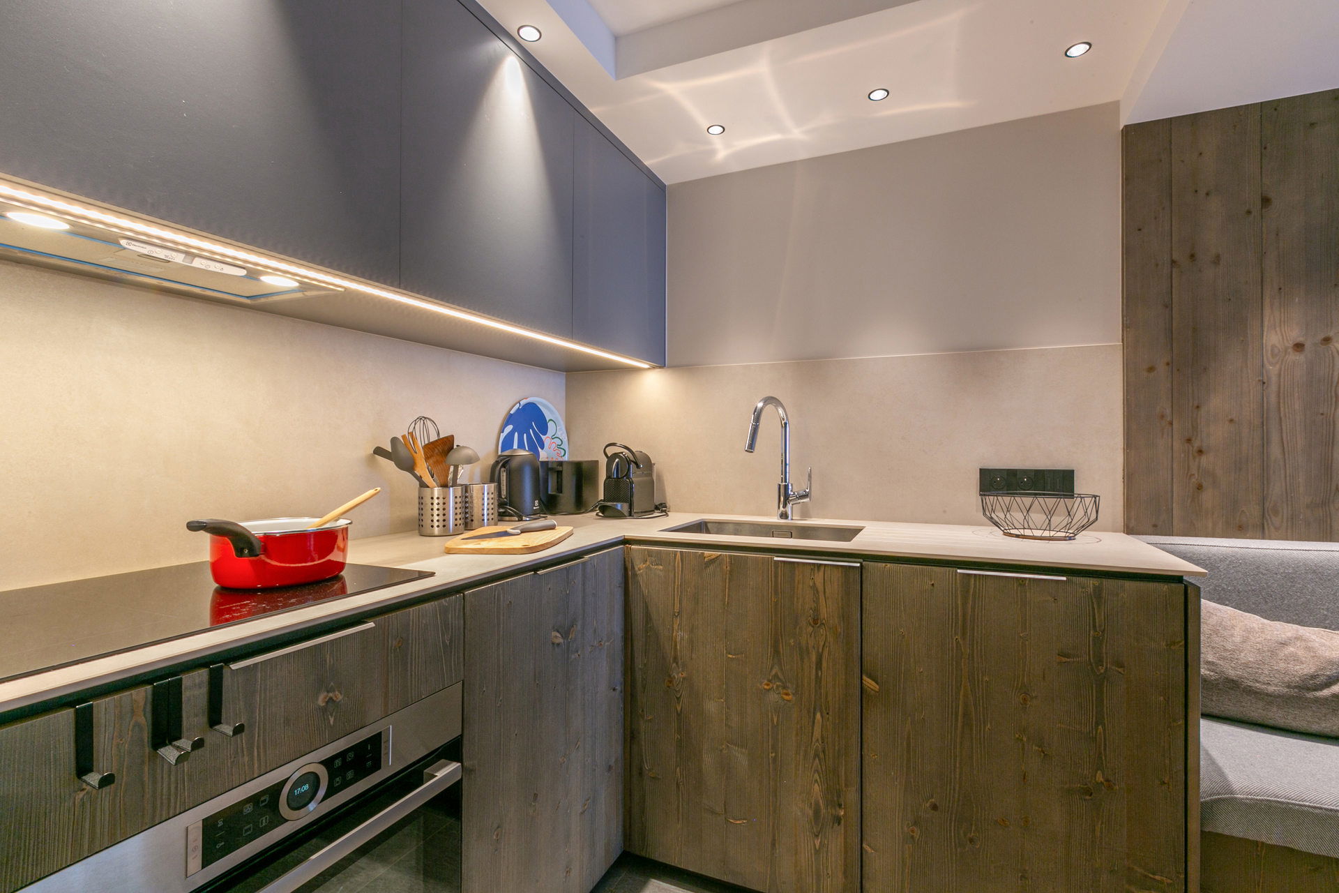 Equipped with dishwasher, oven, microwave oven, hood, induction stove, fridge with freezer