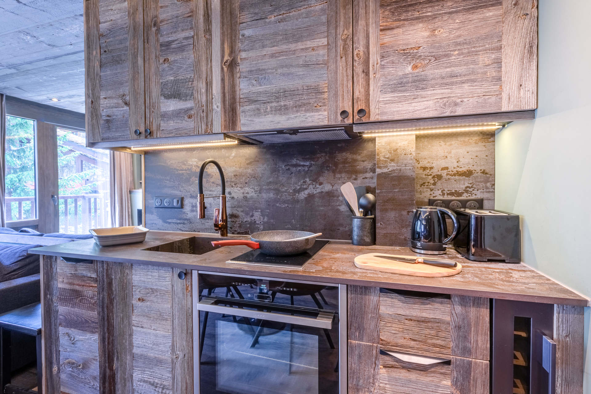 Equipped with dishwasher, oven, microwave oven, hood, induction hob, fridge with freezer, wine cooler