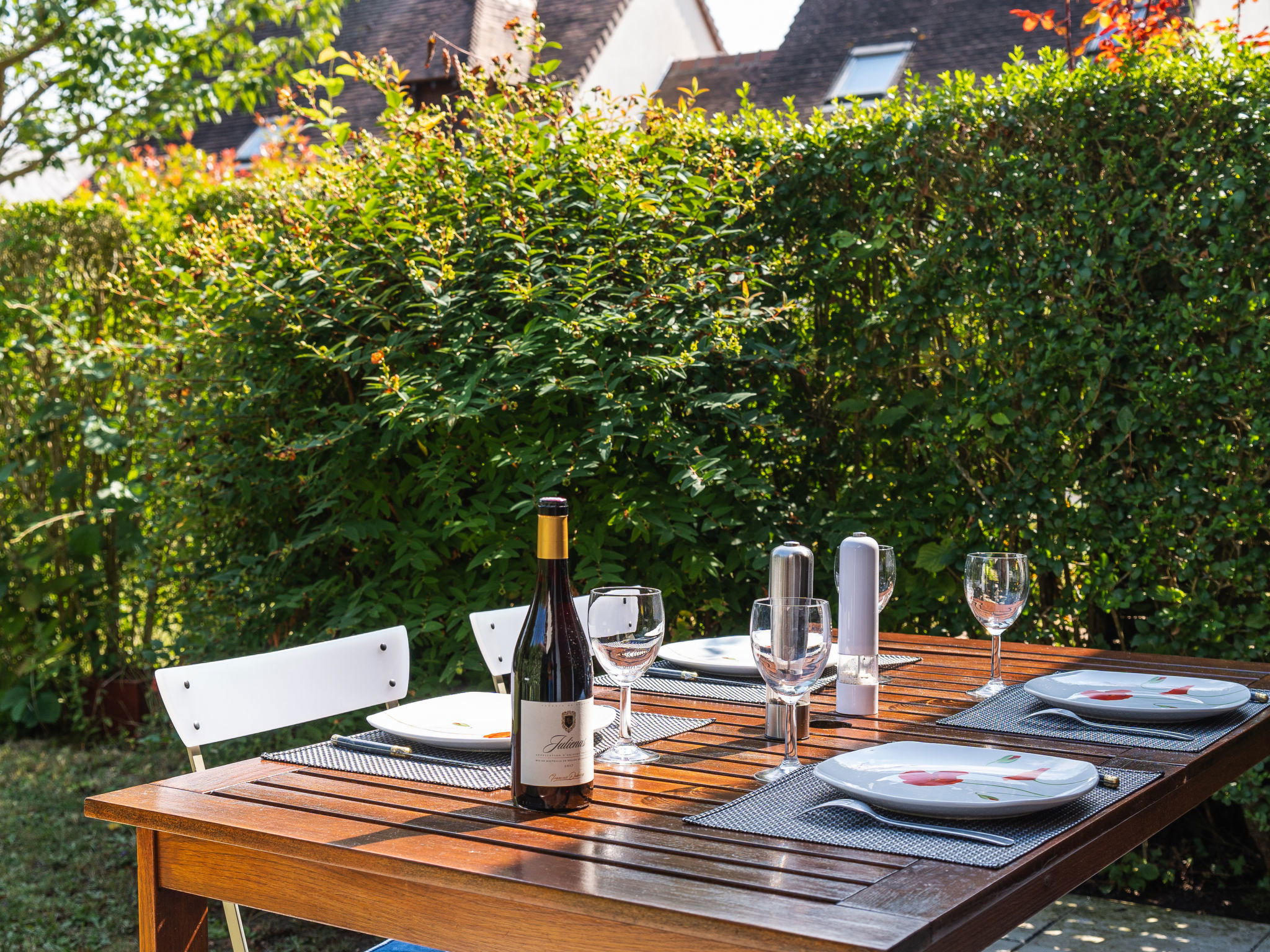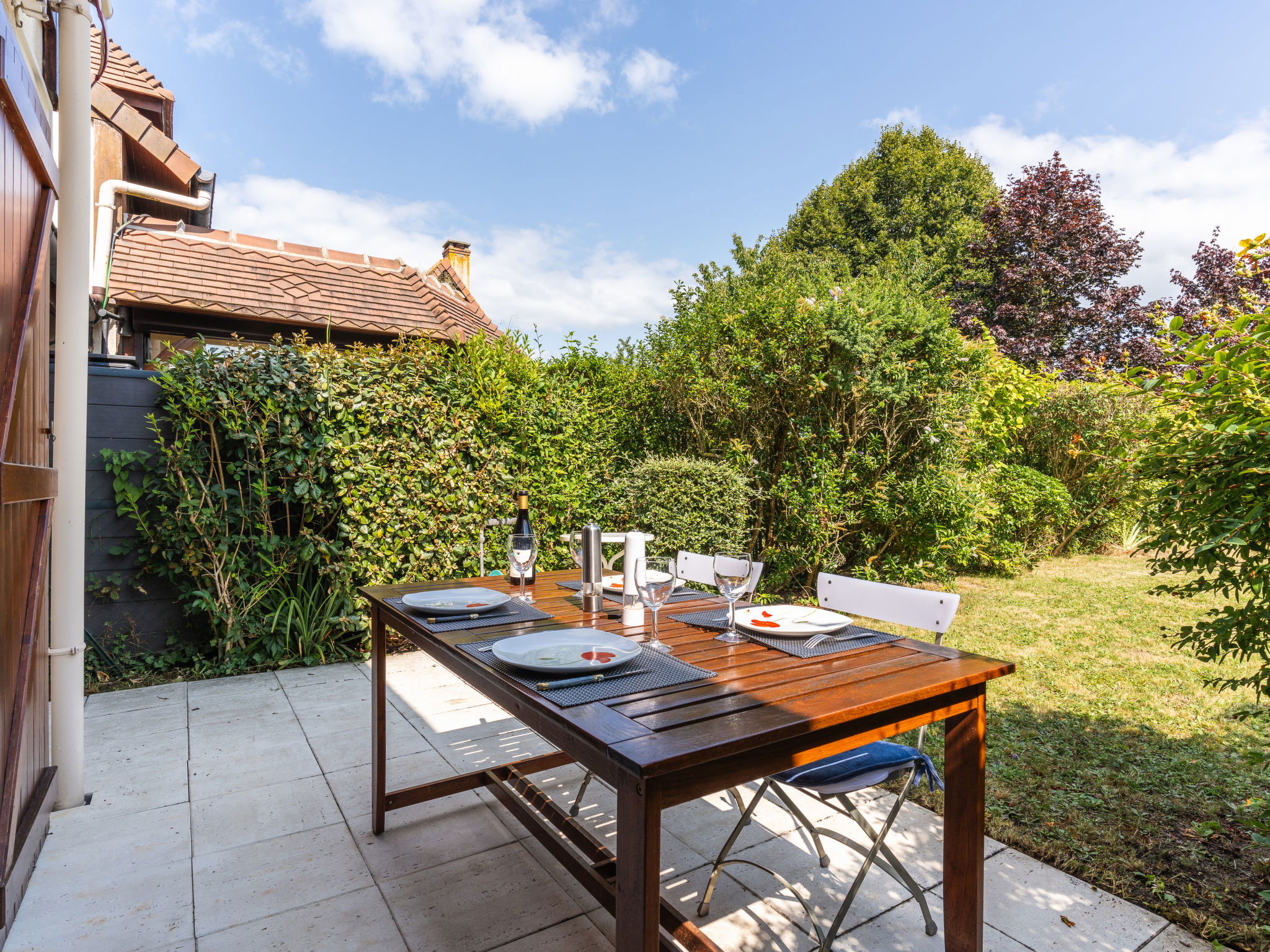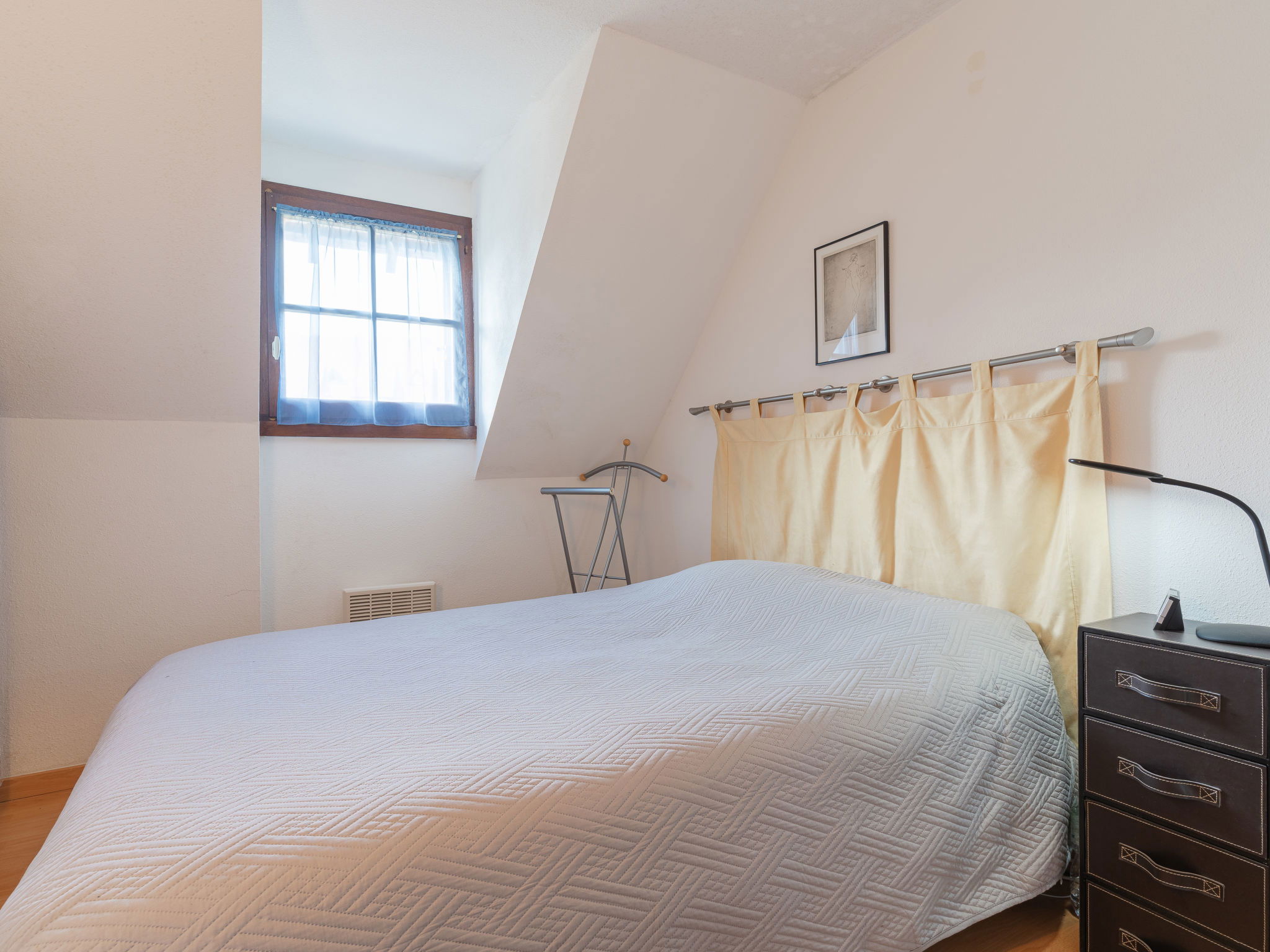 3-room terraced house 45 m2. Living/dining room with TV (flat screen). Exit to the garden, to the terrace. Open kitchen (4 hot plates, mini-oven, dishwasher, toaster, kettle, electric coffee machine, Capsules for coffee machine (NESPRESSO) extra). Upper floor: 1 room with 1 double sofabed (140 cm, length 190 cm). 1 room with 1 french bed (140 cm, length 190 cm). Shower, sep. WC. Electric heating. Terrace 10 m2, garden 80 m2. Terrace furniture, deck chairs (1). Facilities: washing machine. Internet (WiFi, extra). Parking space n 106. Please note: smoke alarm. Offer by a private individual according to Art. 155, IV of CGI. 14640590099AB