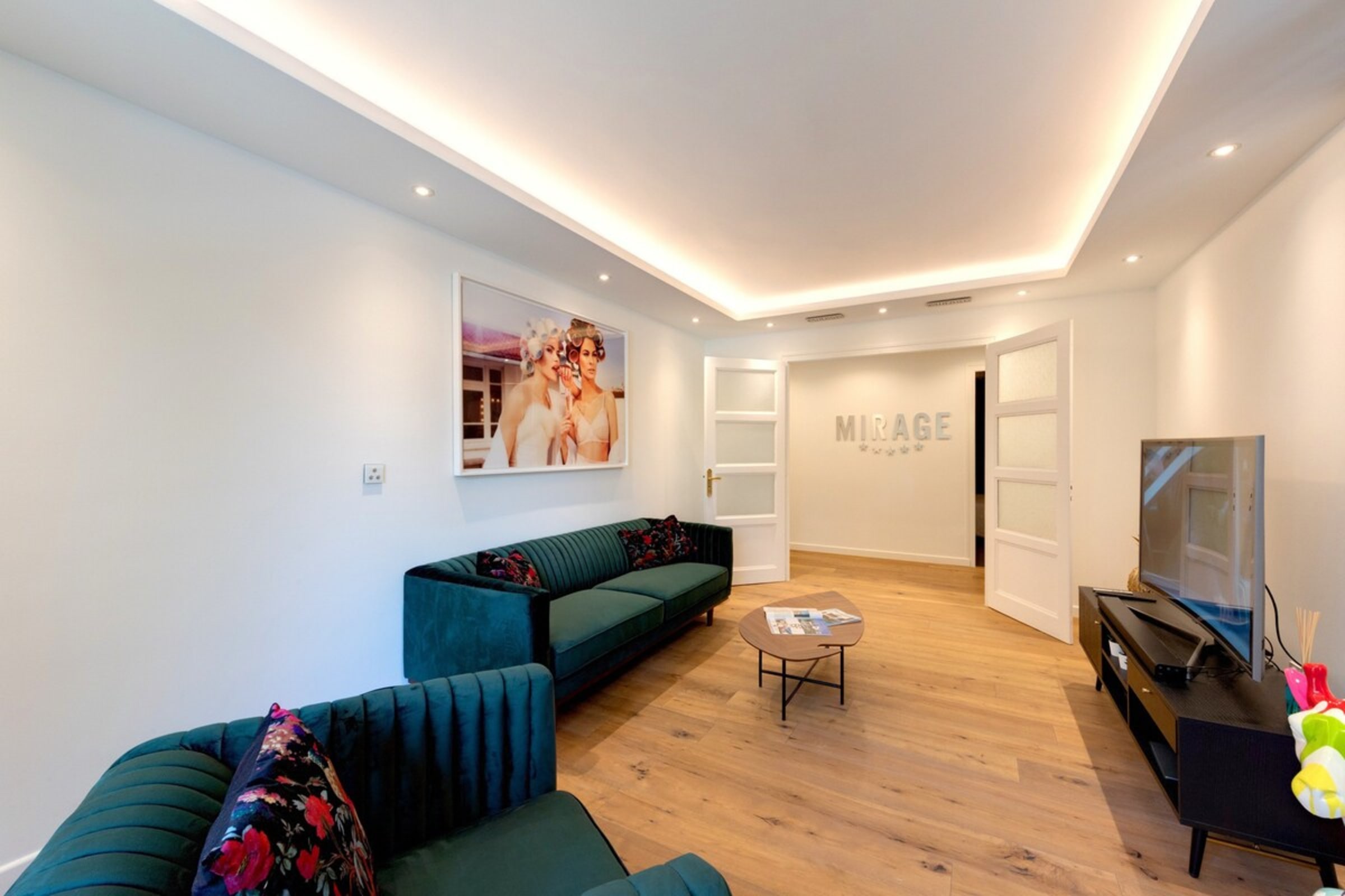 Les trois chambres, dont les lits sont composés en un couchage double ( lit queen size ) , se trouvent à l’arrière de l’appartement, et possèdent toutes leur propre écran de télévision et leur dressing. Il y a également une salle de douche, une salle de bains et un cabinet de toilettes indépendant.