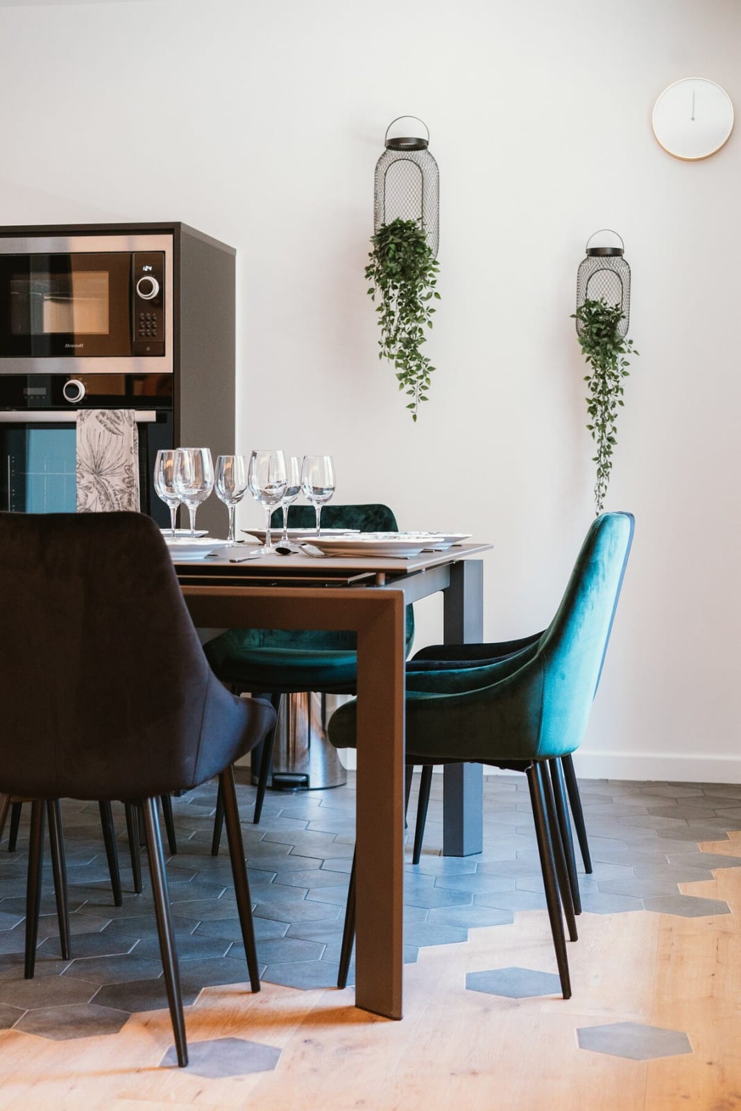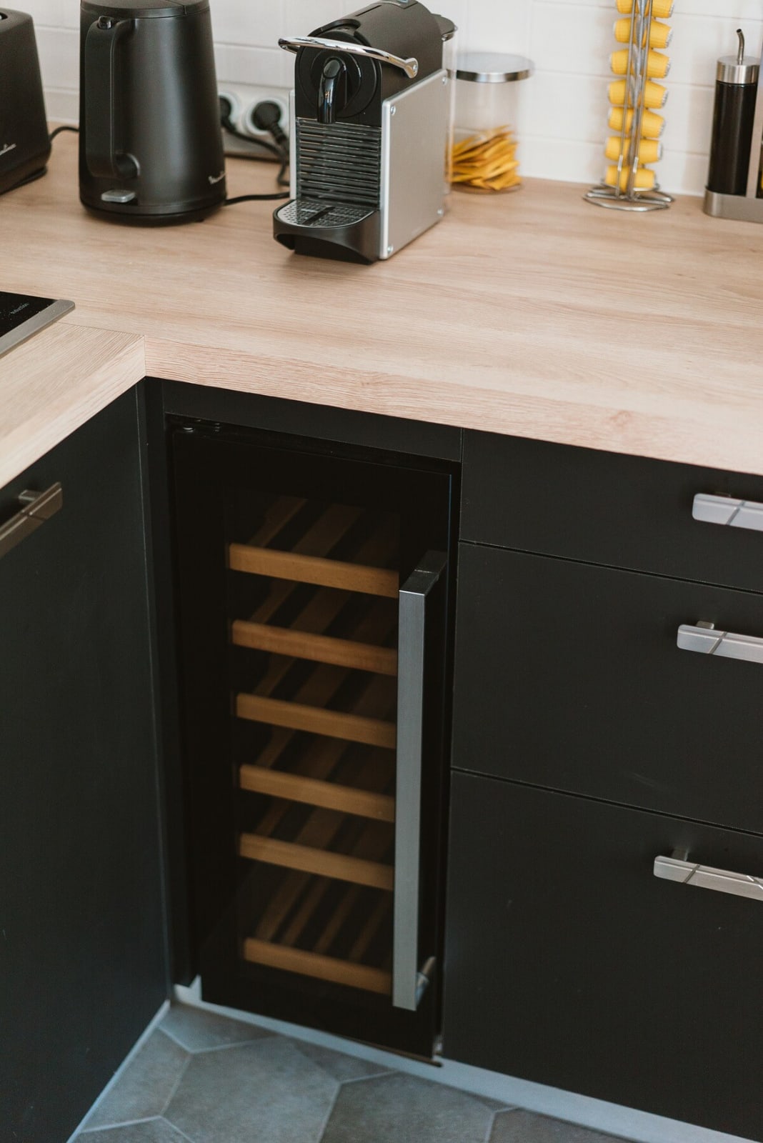 La cuisine ouverte est équipée d'une cave a vins et d'un grand plan de travail. L’appartement dispose aussi d'un garage privatif– un réel bonus à Annecy, où les places de stationnement sont précieuses !