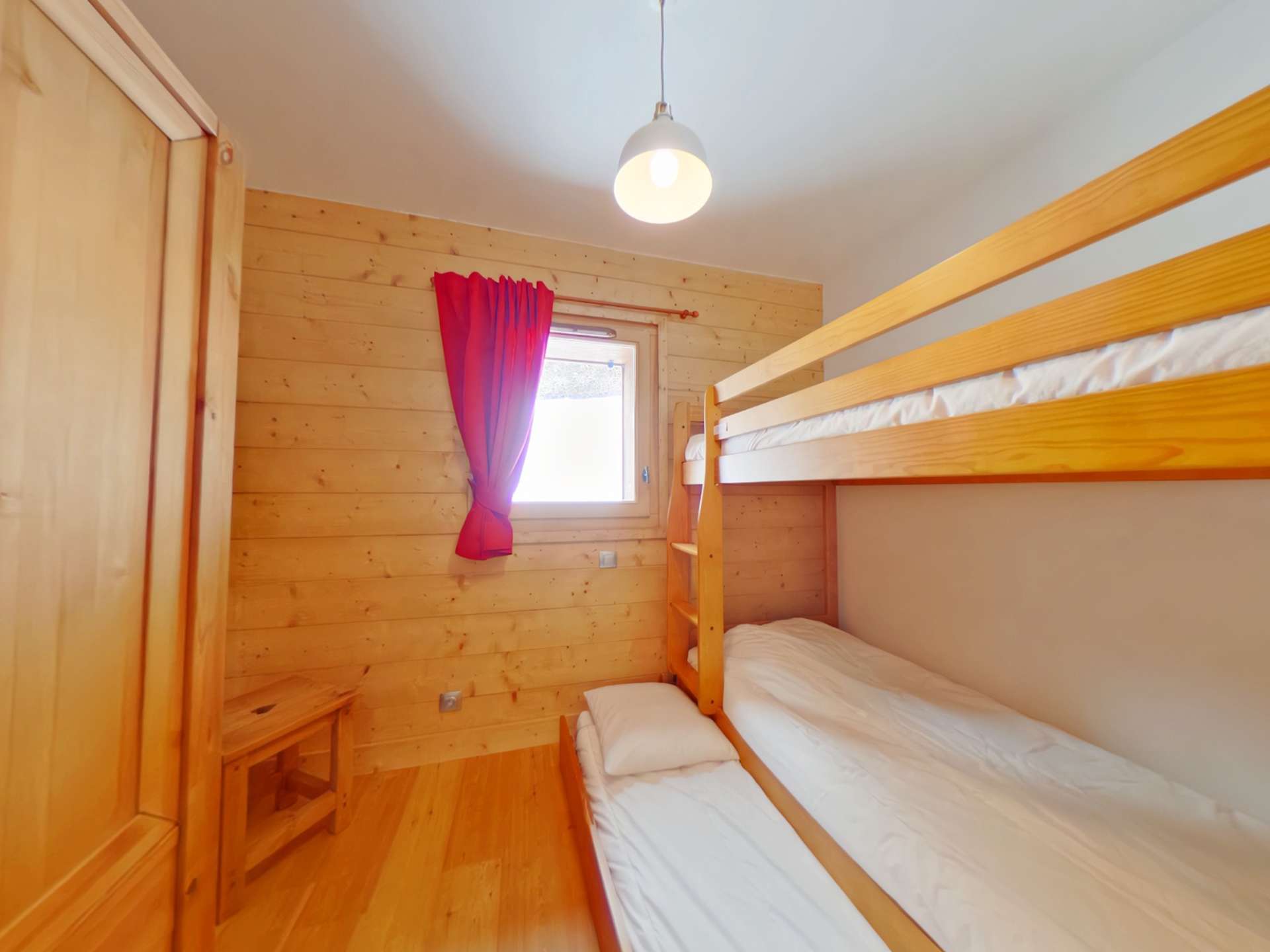 The apartment has a living room, a master suite with a 160cm bed and en-suite shower room, a bedroom with two 80cm beds, a bedroom with two bunk beds (NB: the top bunk is not suitable for children under 6) and a 90cm pull-out bed, a bathroom and separate toilet.