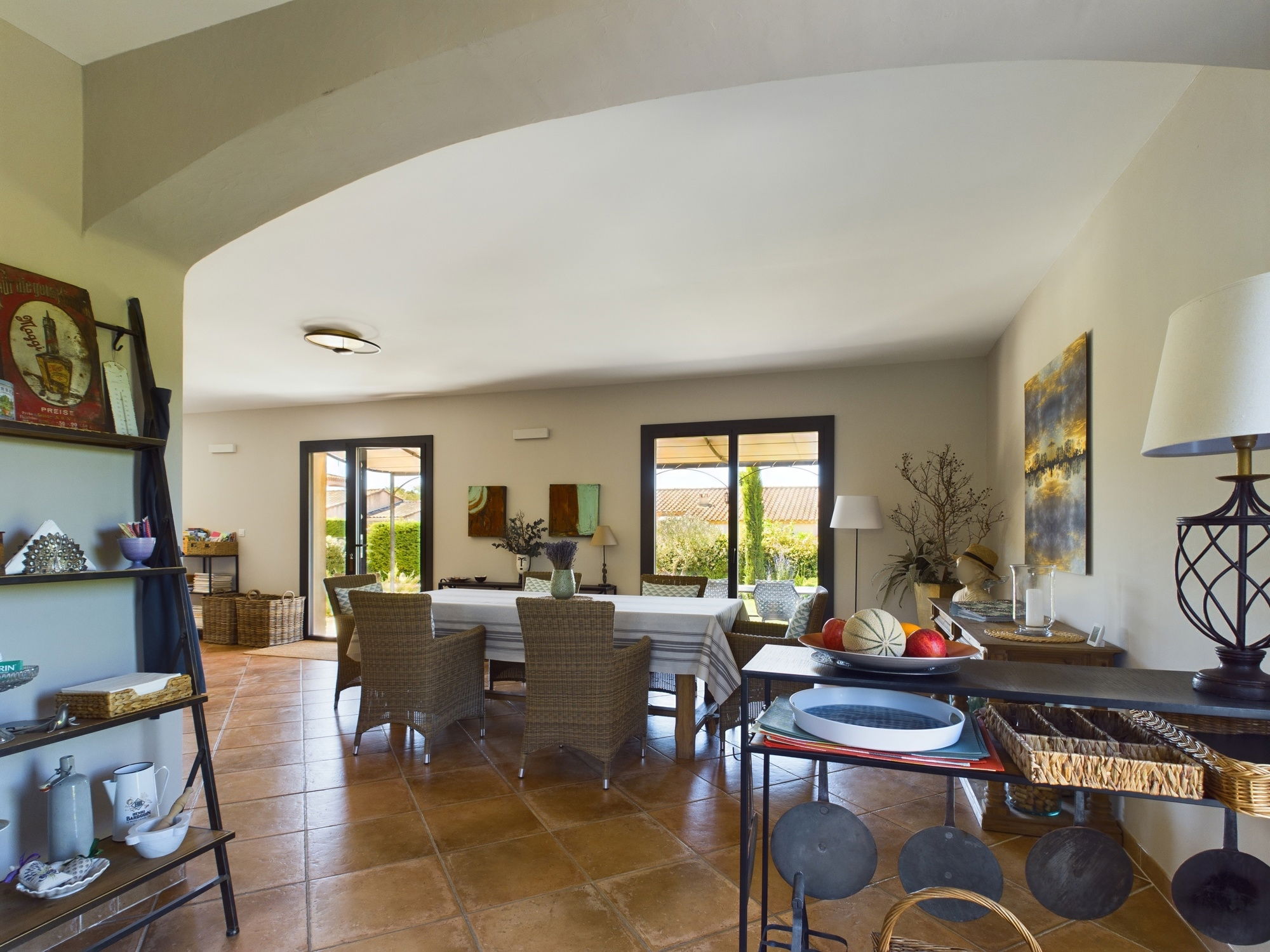 The living room, with its large windows and careful decoration, is the perfect place to relax after a day of discovery in the region.