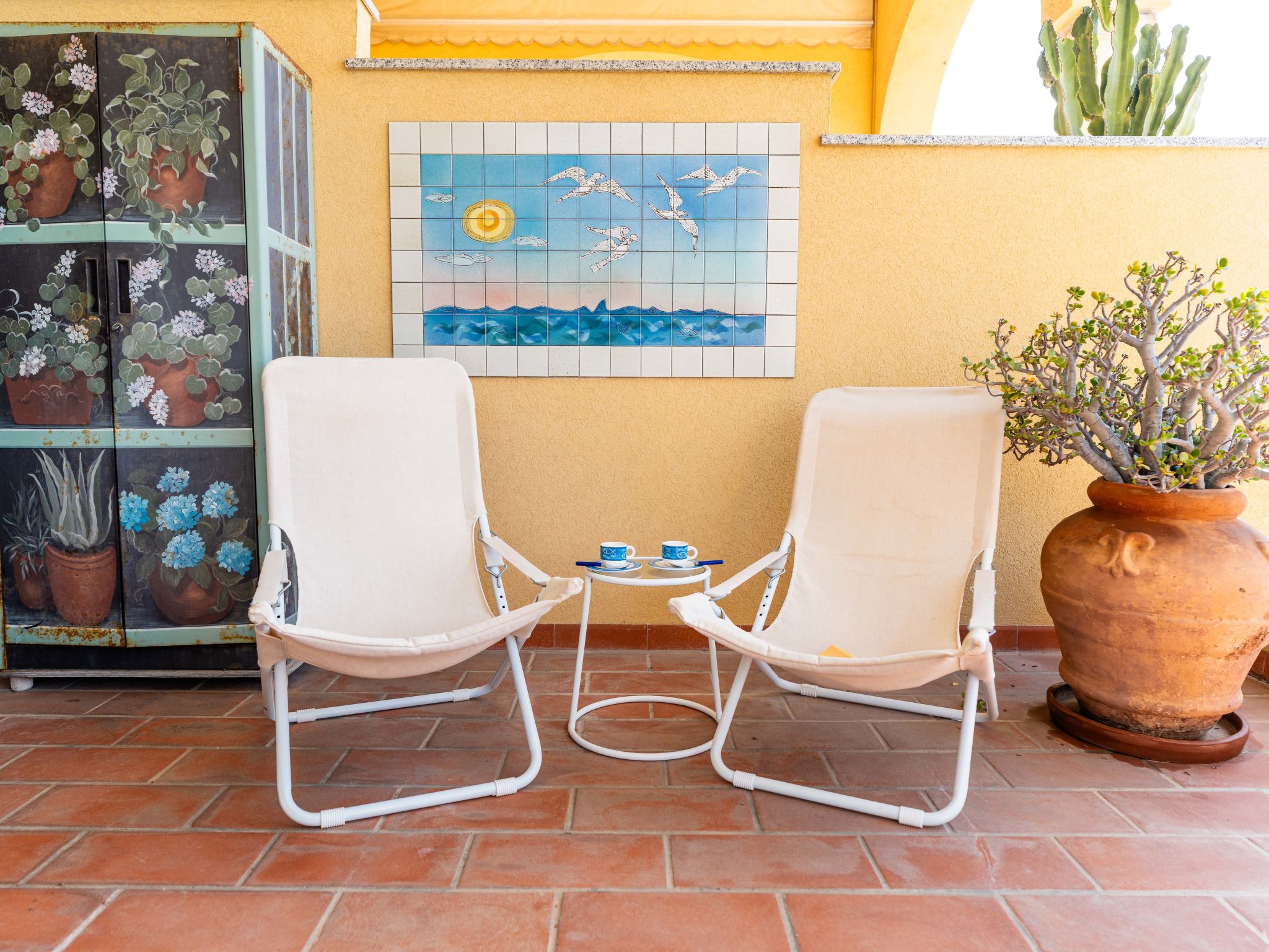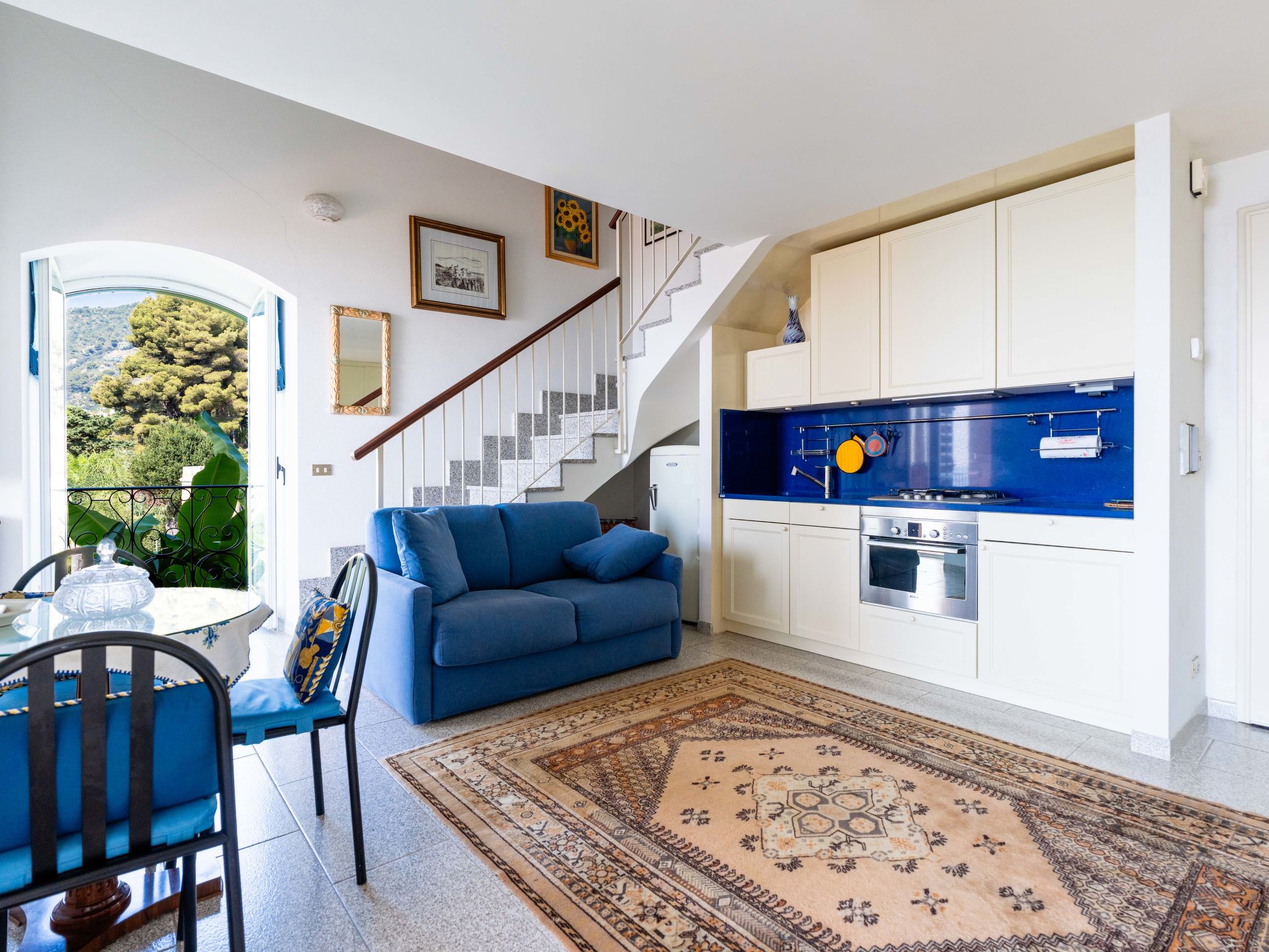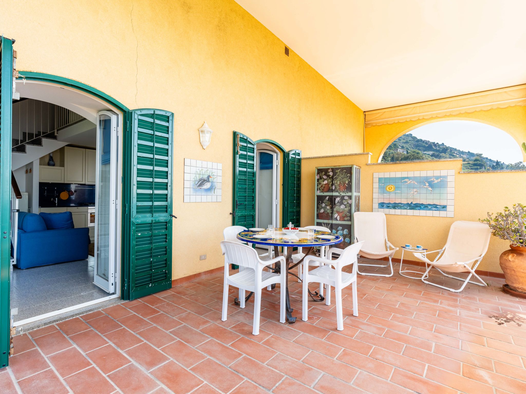 "Loggia sul mare", 2-room apartment 75 m2 on 2 levels on 1st floor. Beautiful and tasteful furnishings: living/dining room with 1 double sofabed (120 cm, length 200 cm). Exit to the balcony. Kitchenette (oven, dishwasher, 4 gas rings, toaster, kettle). Upper floor: 1 open double bedroom with shower/bidet/WC. Gas heating. Heating available only from 01.11. to 15.04. Large balcony 20 m2. Balcony furniture, deck chairs. Very beautiful panoramic view of the sea. Facilities: baby cot for up to 2 year olds, hair dryer. Internet (WiFi, free). Garage space n 2 at the house. Please note: non-smokers only. Maximum 1 pet/ dog allowed. distance pool 80m. IT008065C2NNO5IL84