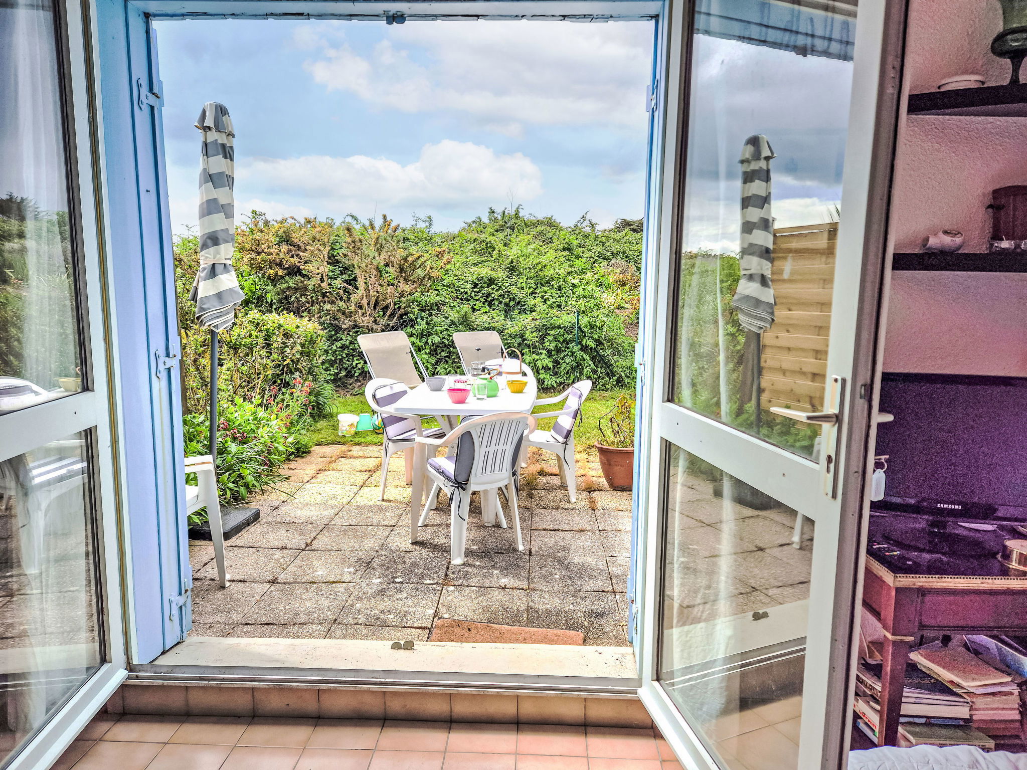 3-room terraced house 47 m2 on 2 levels. Comfortable and beautiful furnishings: large living/dining room with TV (flat screen). Exit to the garden, to the terrace. Kitchenette (dishwasher, 2 induction hot plates, toaster, kettle, electric coffee machine, combination microwave, fondue Set (cheese)). Sep. WC. Upper floor: 1 room with 2 beds (90 cm, length 190 cm). 1 room with 1 french bed (1 x 140 cm, length 190 cm). Bathroom. Terrace 10 m2, patio. Terrace furniture. Beautiful view of the swimming pool and the countryside. Facilities: Internet (WiFi, free). Parking space n 714 (1 car). Please note: non-smoking house. Smoke alarm. Offer by a private individual according to Art. 155, IV of CGI. 35288005848B8