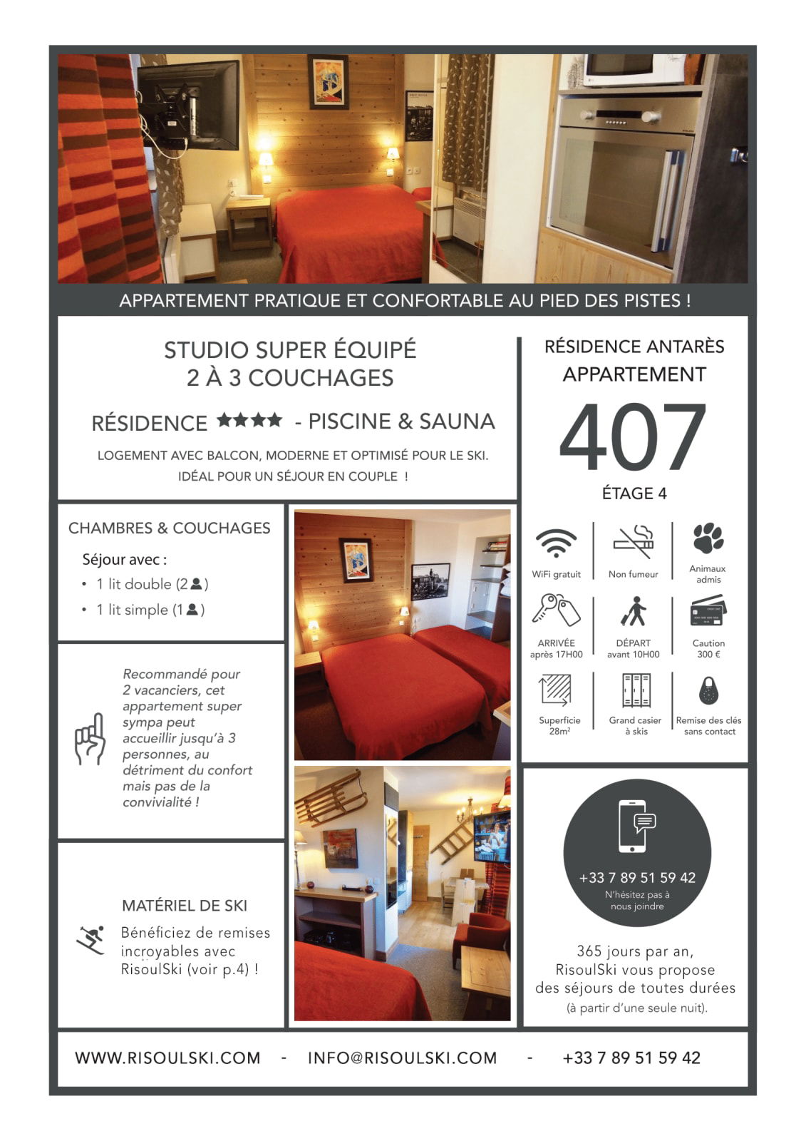 It is possible to twin this apartment with other apartments in the same residence, do not hesitate to contact RisoulSki!