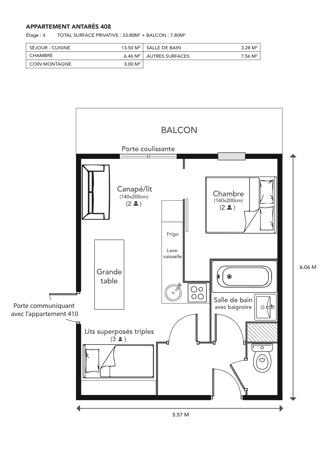 It is possible to twin this apartment with other apartments in the same residence, do not hesitate to contact RisoulSki!