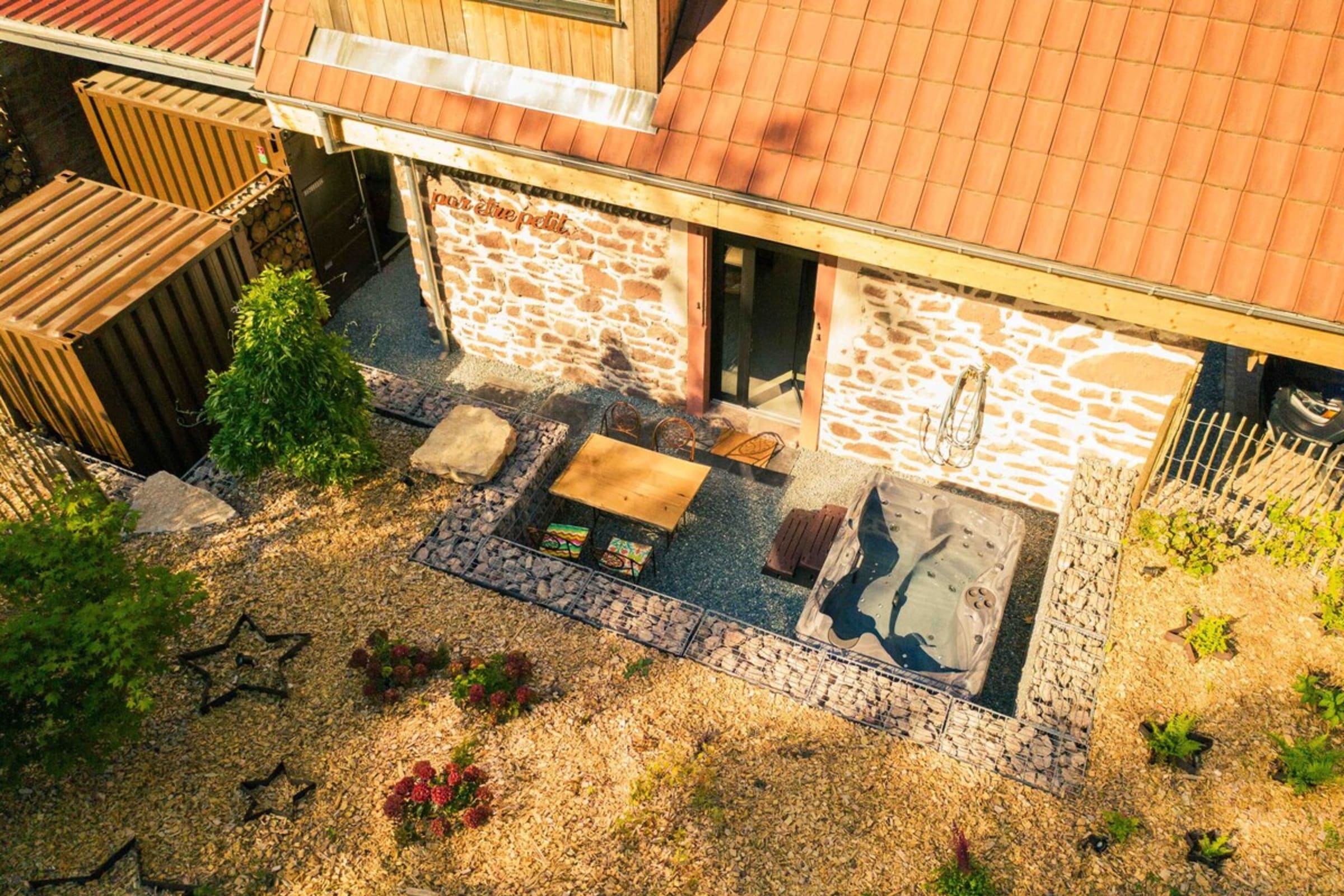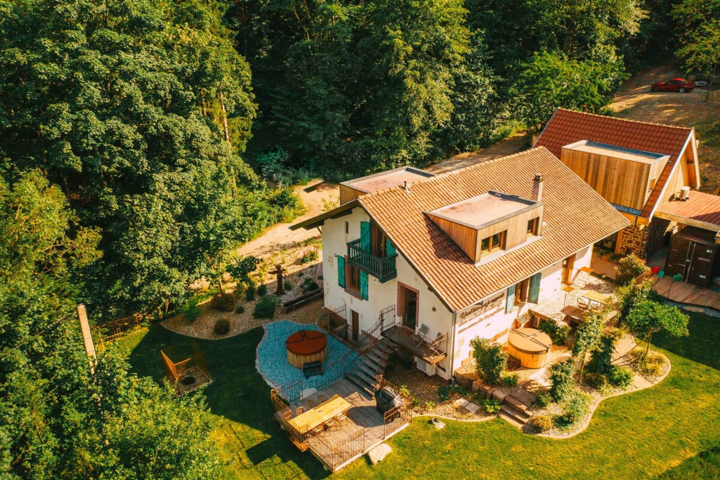 Located in the heart of the Florival forest and on the way to Compostela, *Le Grand Petit Prince* is ideally located for exploring the region. Nestled at the foot of century-old sequoias, it's the perfect place to recharge your batteries in the heart of nature and shelter from the hustle and bustle of the city. The houses have been lovingly and passionately renovated by local artisans. We would like everyone to be there and leave with their heads full of beautiful memories. The old forge of the former Guebwiller Forest Guard, "Le Papillon" has an equipped kitchen (induction hobs, oven, fridge, freezer, dishwasher, Nespresso machine, microwave) directly overlooking the private terrace. A Jacuzzi is available at no extra charge and is exclusively reserved for you!