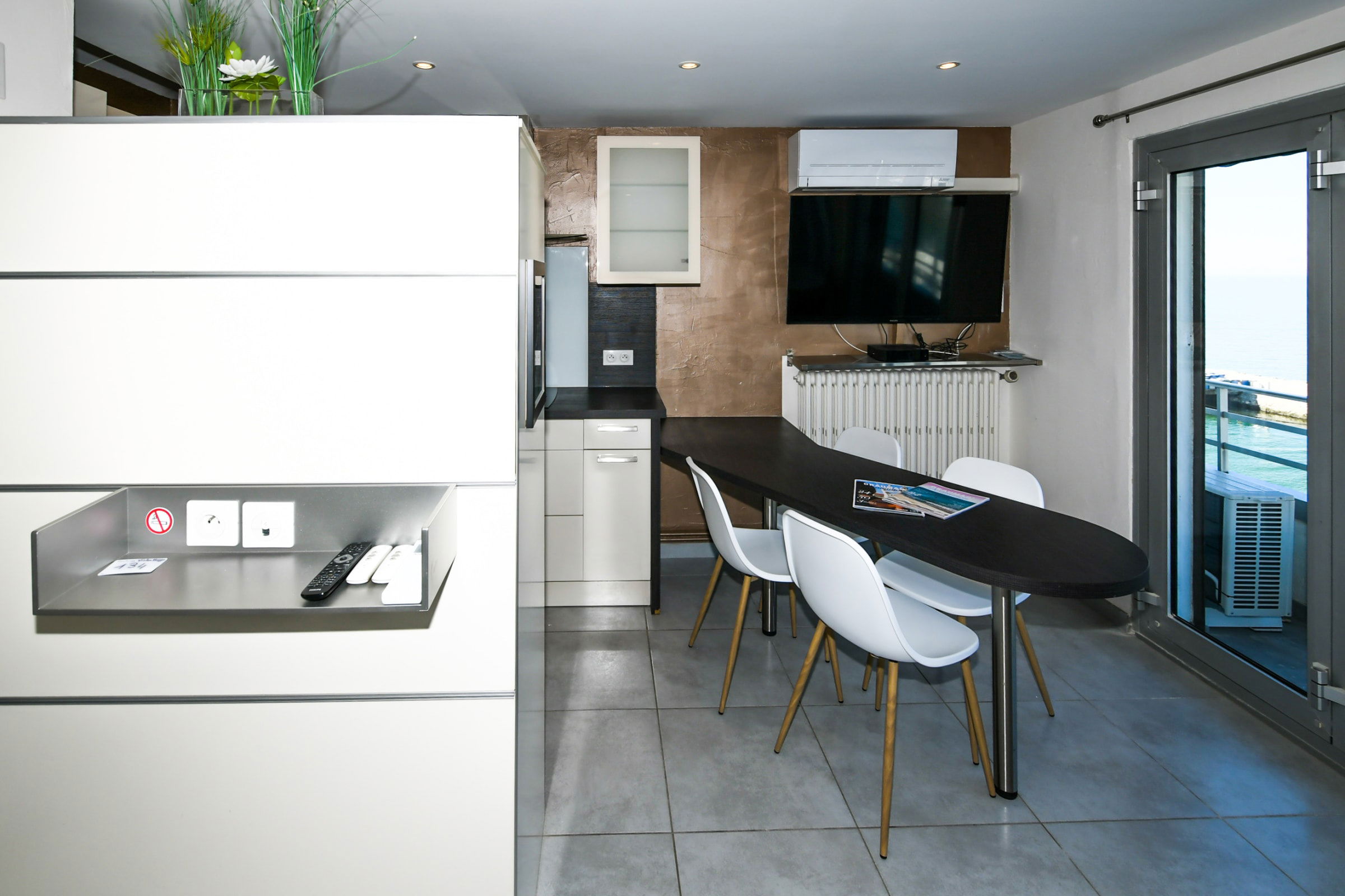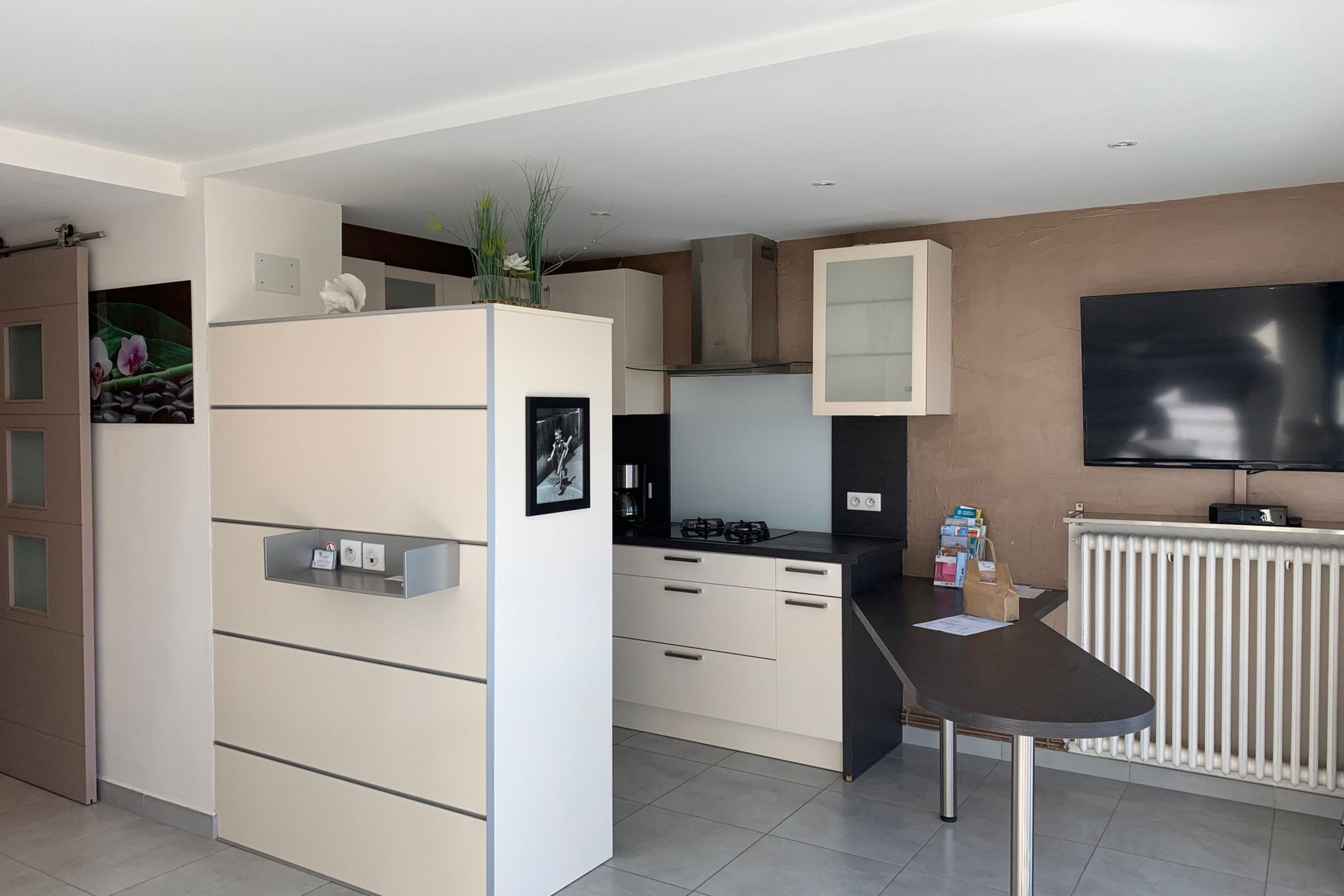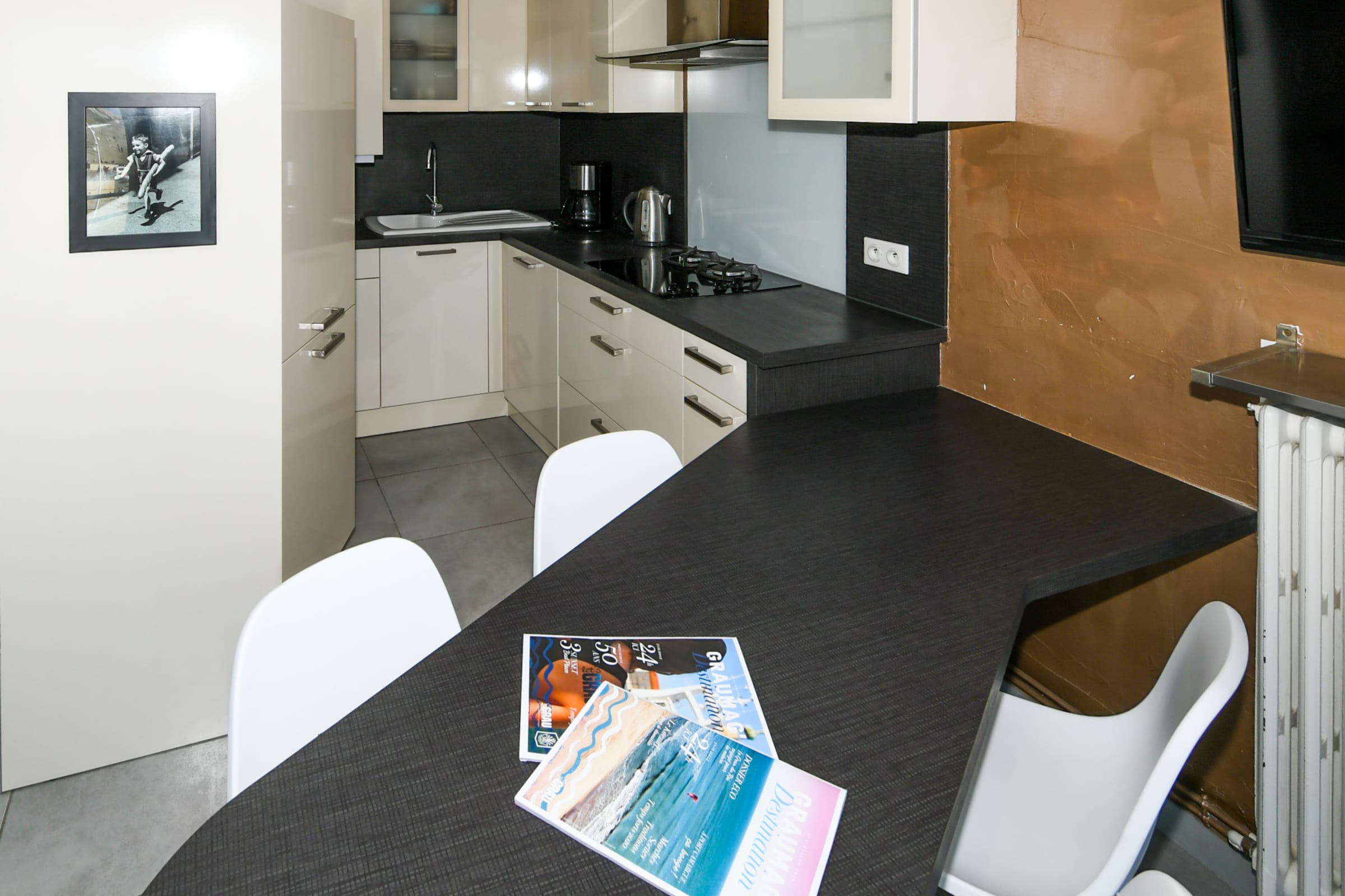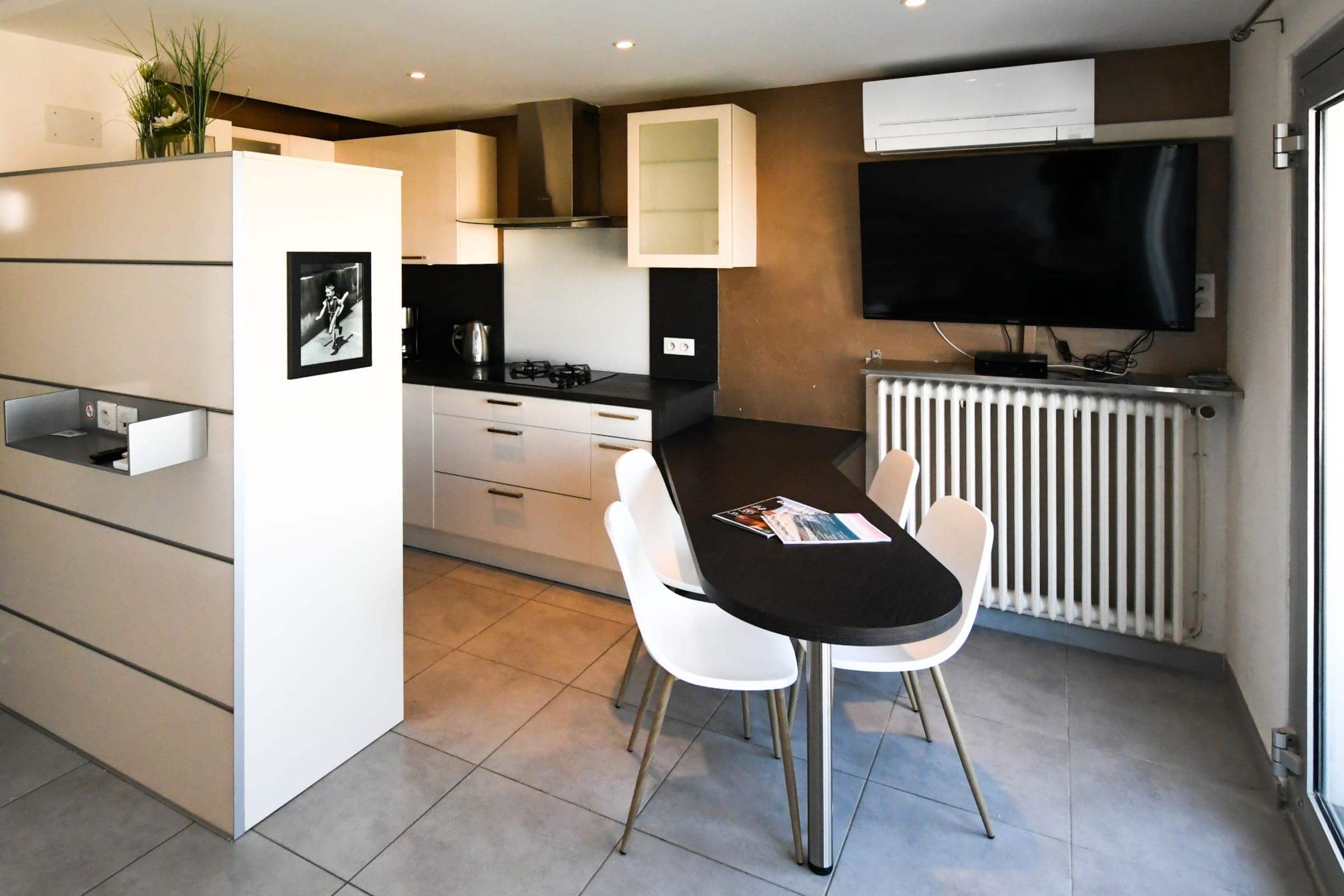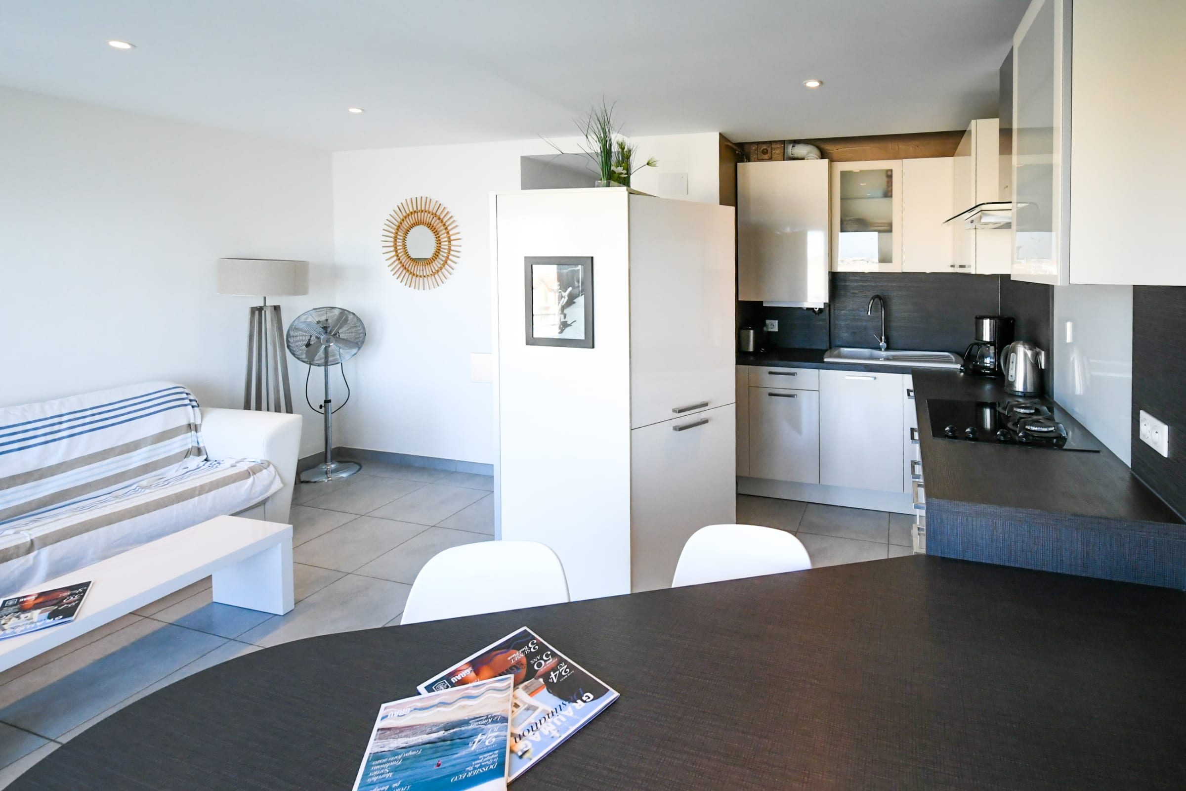 L'Impérial 3 is a fully equipped apartment with one bedroom featuring a 140 cm double bed, as well as a living room offering an unbeatable view of the Old Lighthouse, the Canal, and the sea. The apartment also includes a fully equipped kitchen corner. A bathroom with a non-separated toilet completes the facilities.