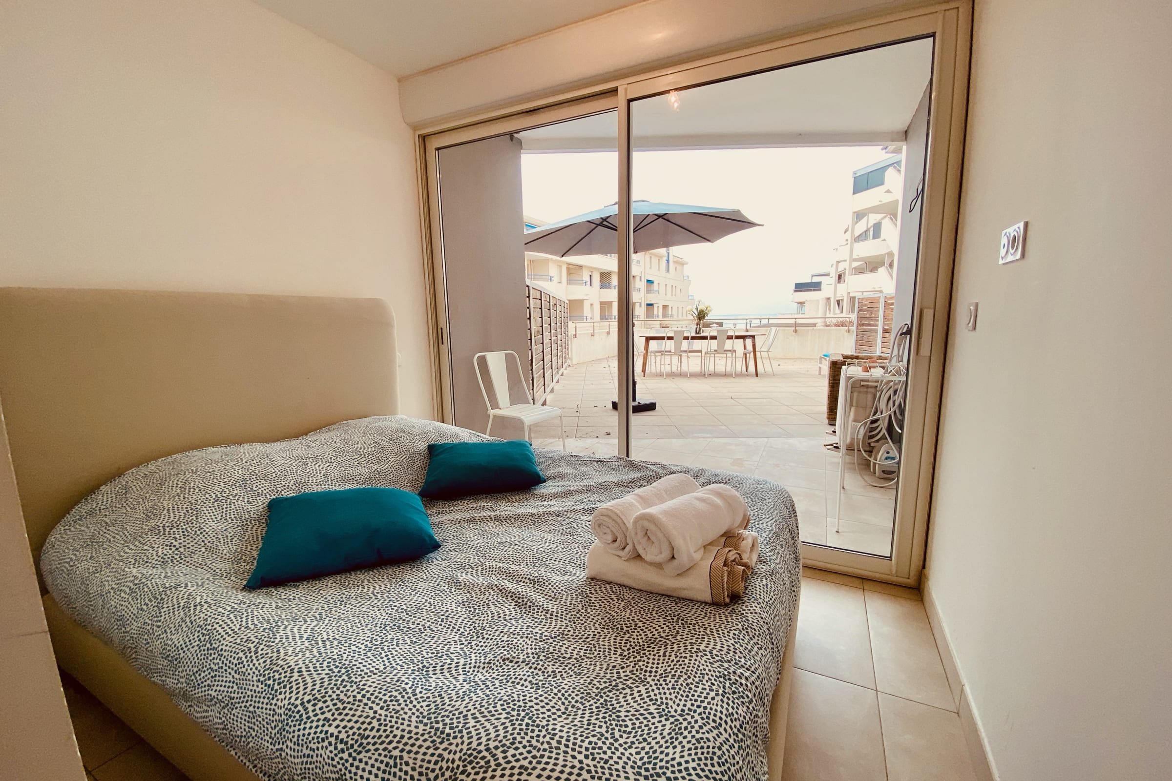 Terrasse ensoleillée : appartement 1 chambre 1 cabine vue mer terrasse