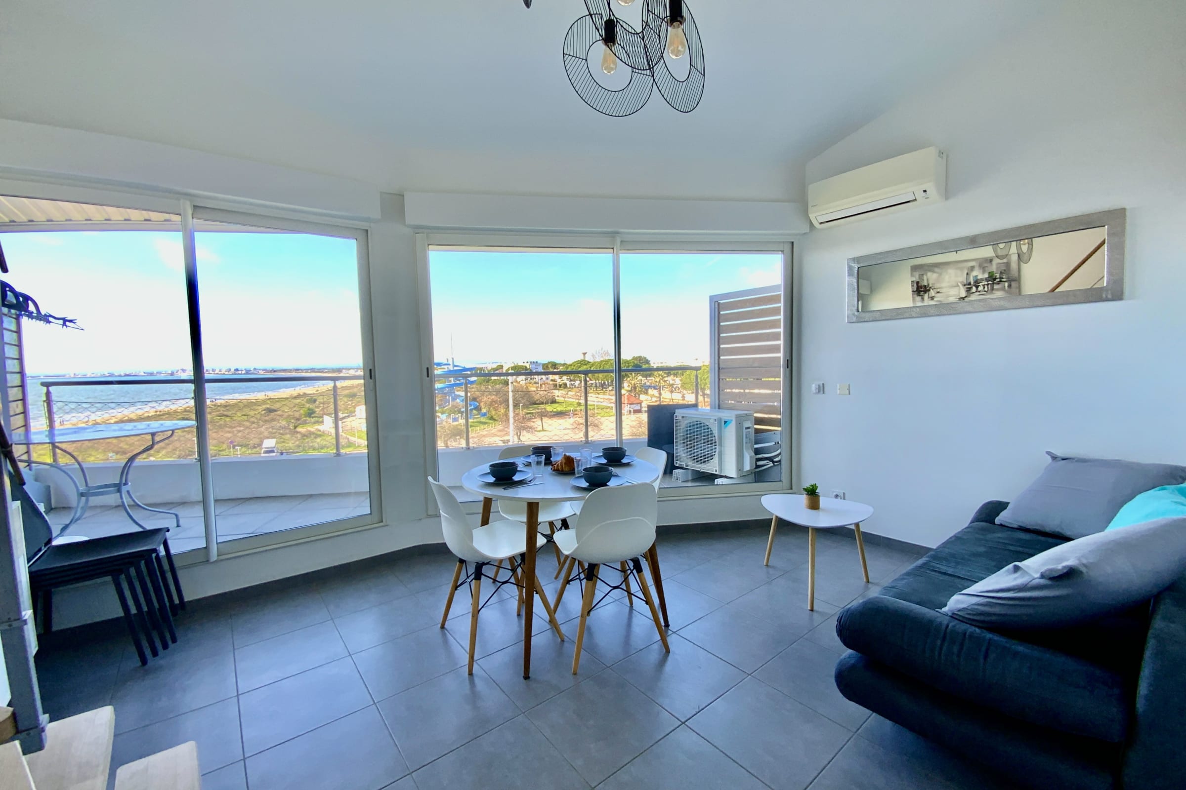 From the northwest-facing terrace, enjoy an open sea view over the Bay of Aigues-Mortes and La Grande-Motte, with spectacular sunsets.