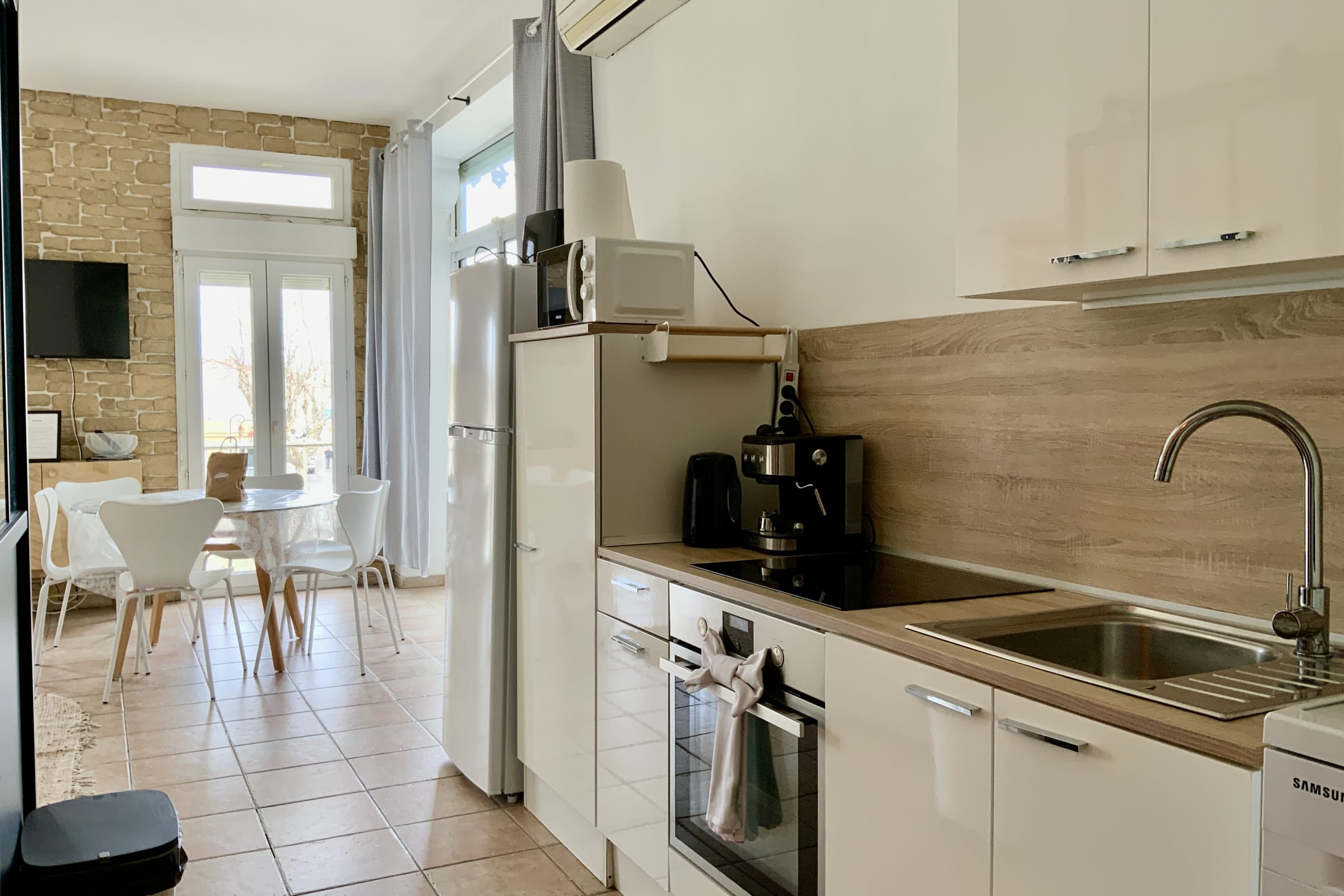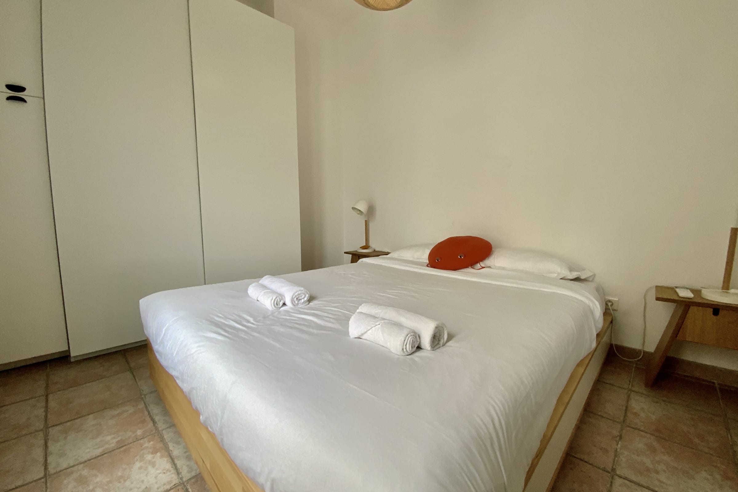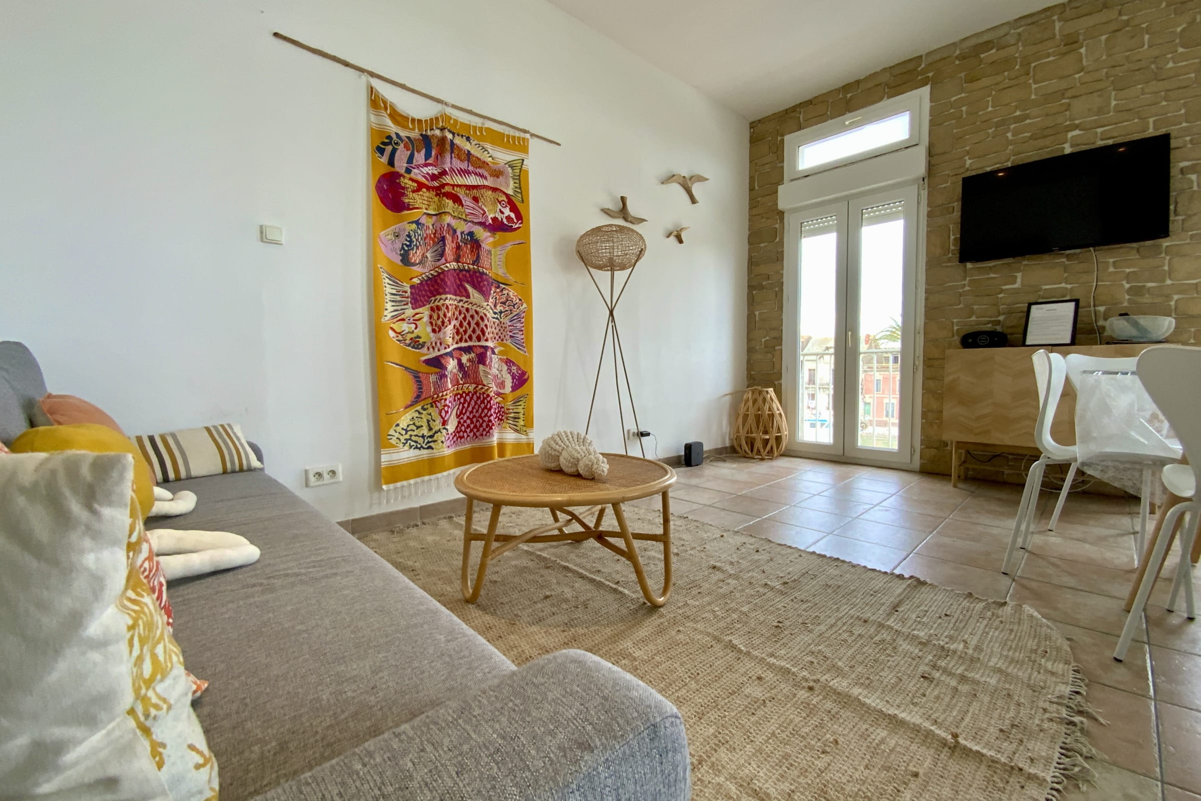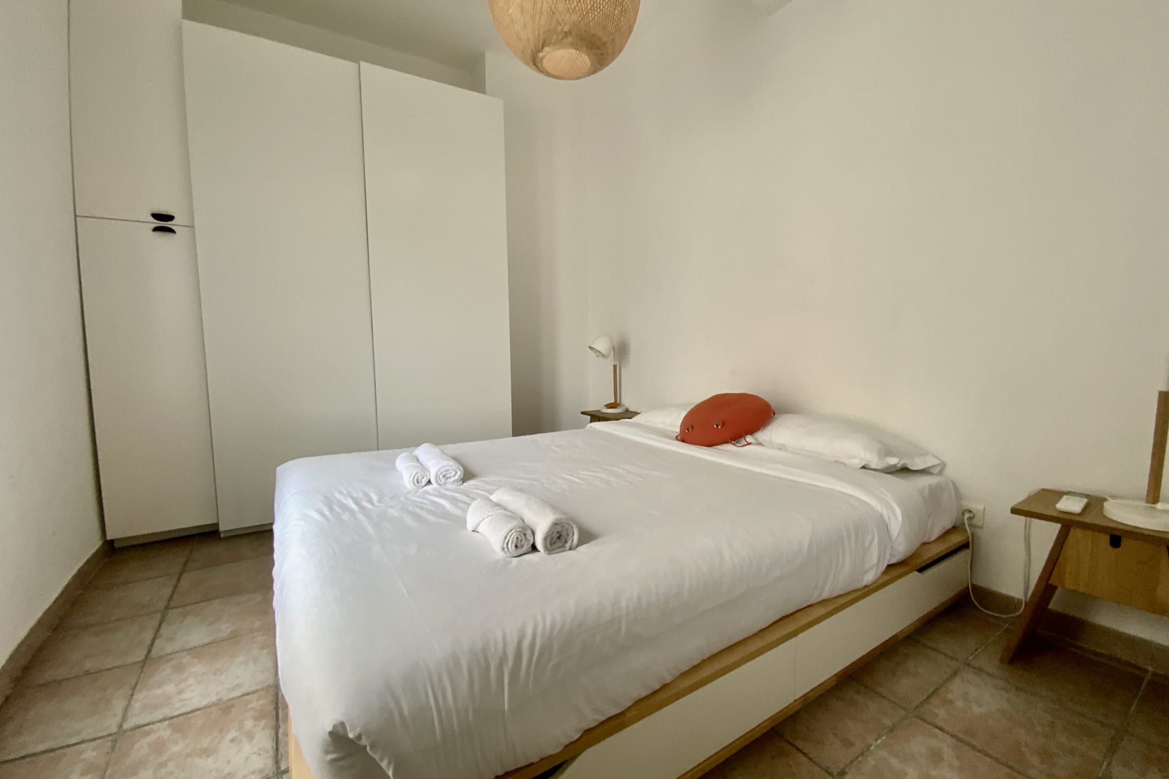 The apartment is bright, welcoming, and decorated with great taste. You’ll enjoy a spacious, sunny living room with a view of the Fishing Port and direct access to the terrace for your morning breakfasts. The open kitchen is fully equipped with a coffee machine, toaster, kettle, oven, microwave, fridge, and all the necessary kitchen utensils to prepare delicious meals.
